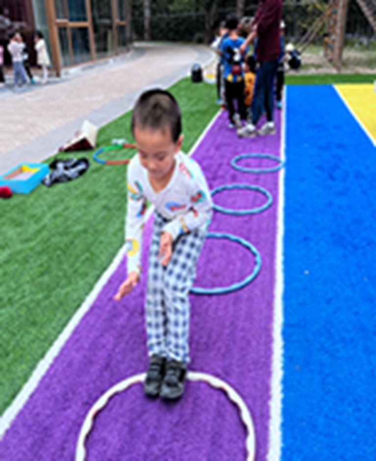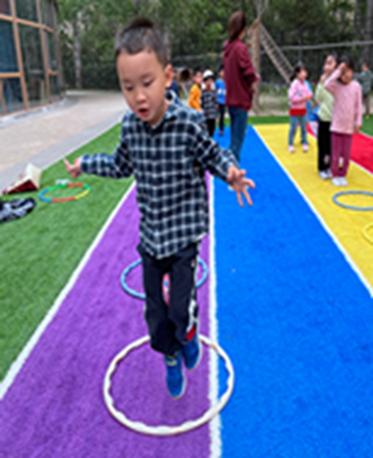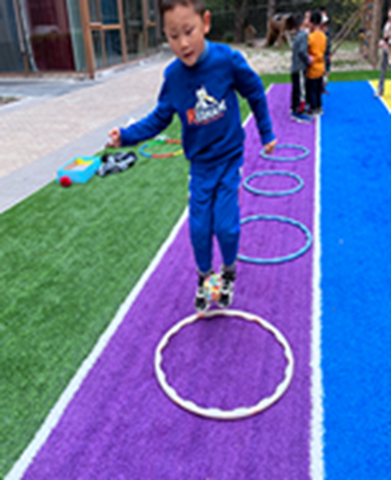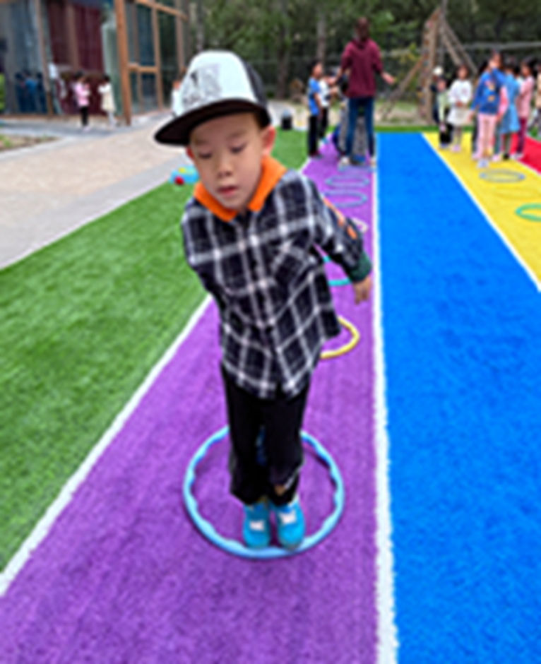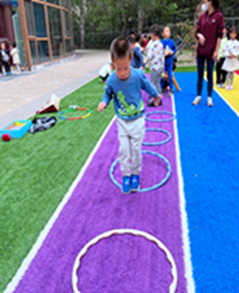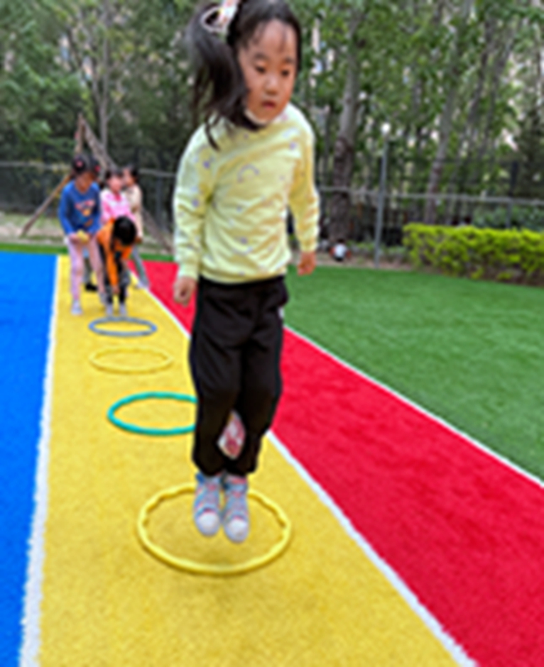 今天和沙包呼啦圈一起做游戏,看我们沙包夹得多紧,腿更有力量了呢