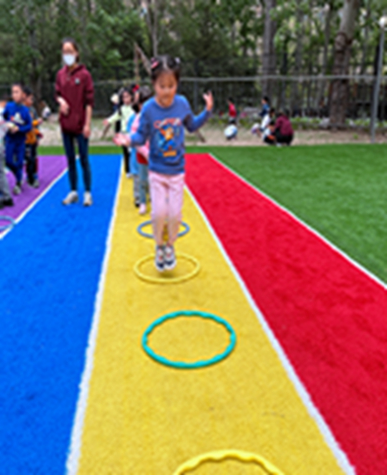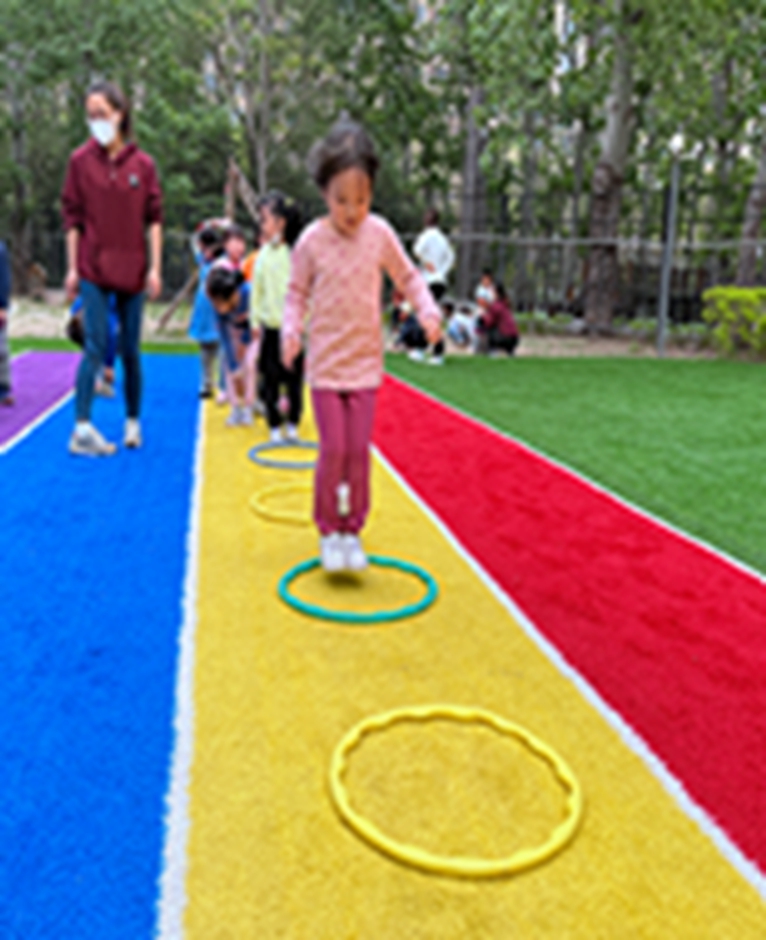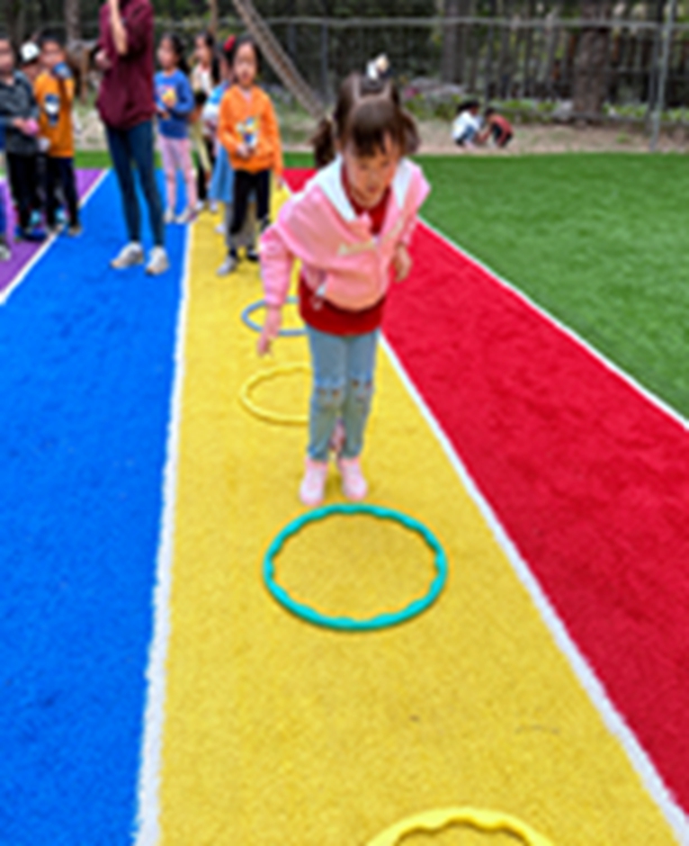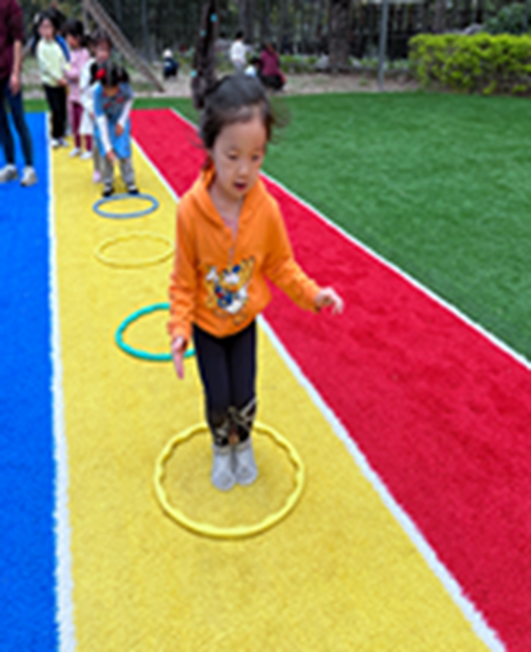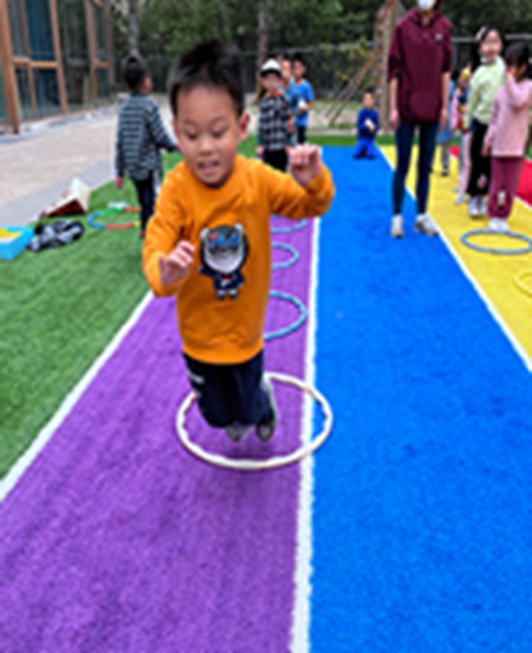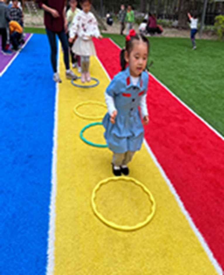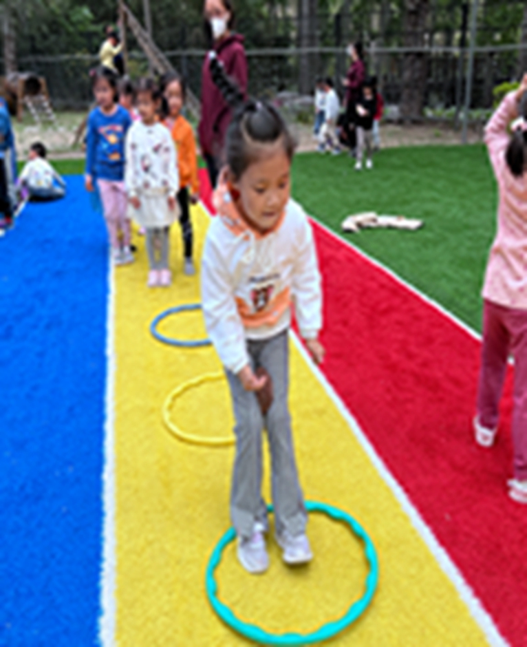 今天和沙包呼啦圈一起做游戏,看我们沙包夹得多紧,腿更有力量了呢