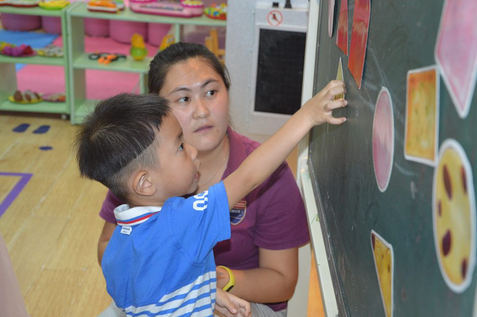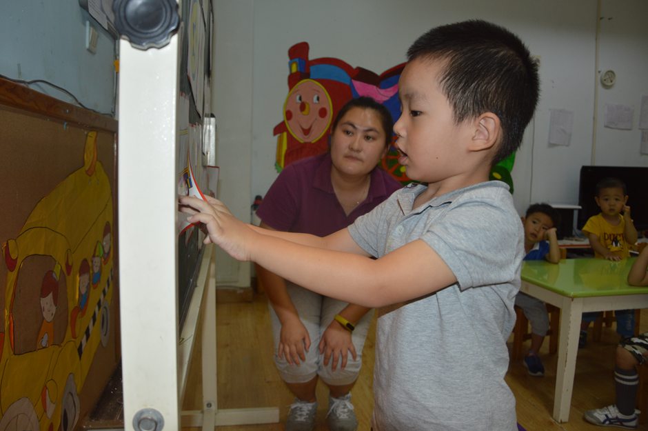 来幼儿园没几天的我们,来帮小熊分饼干,小白熊喜欢圆形、小棕熊喜欢三角形、小灰熊喜欢方形,通过本次活动,小朋友认识了三种图形。还有小朋友帮小熊找他们喜欢图形的玩具。