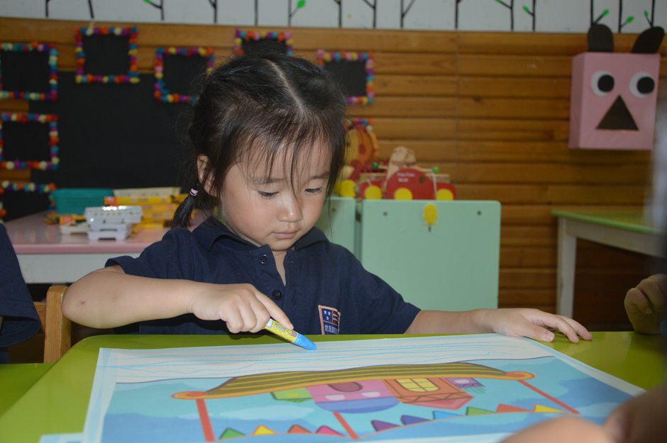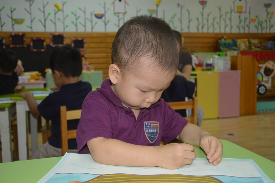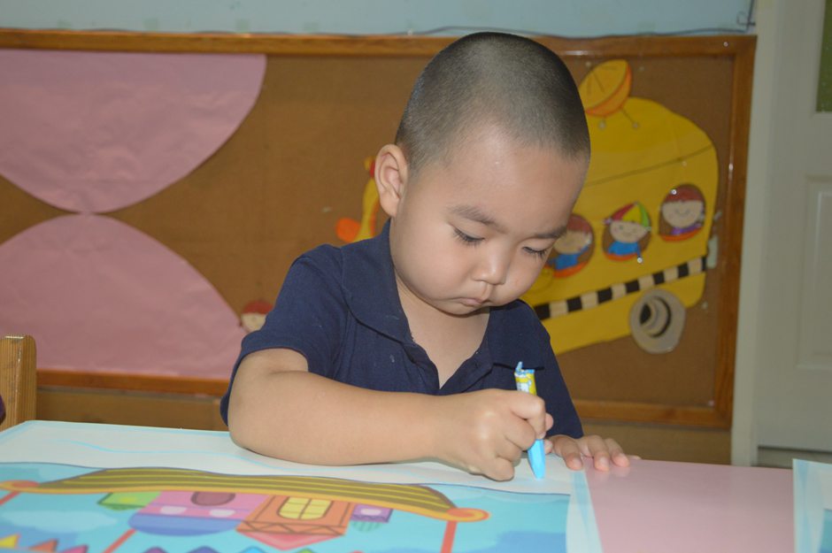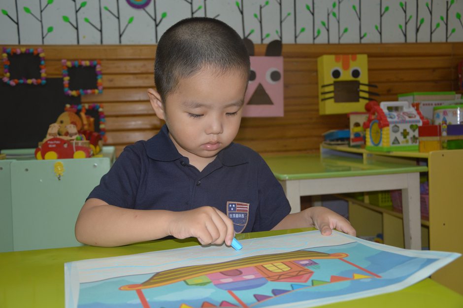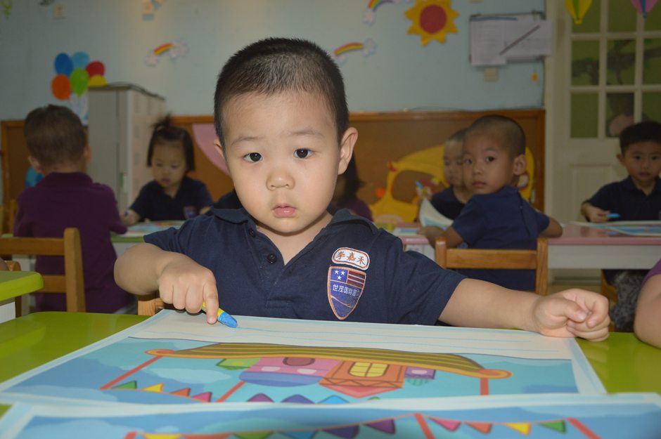 今天让孩子们自己体验画船在海上航行丢失的海浪,孩子们把自己见过的、想到的,画了下来,让这艘大船能在海浪里自由航行。