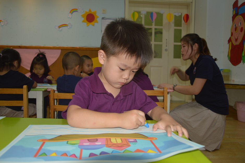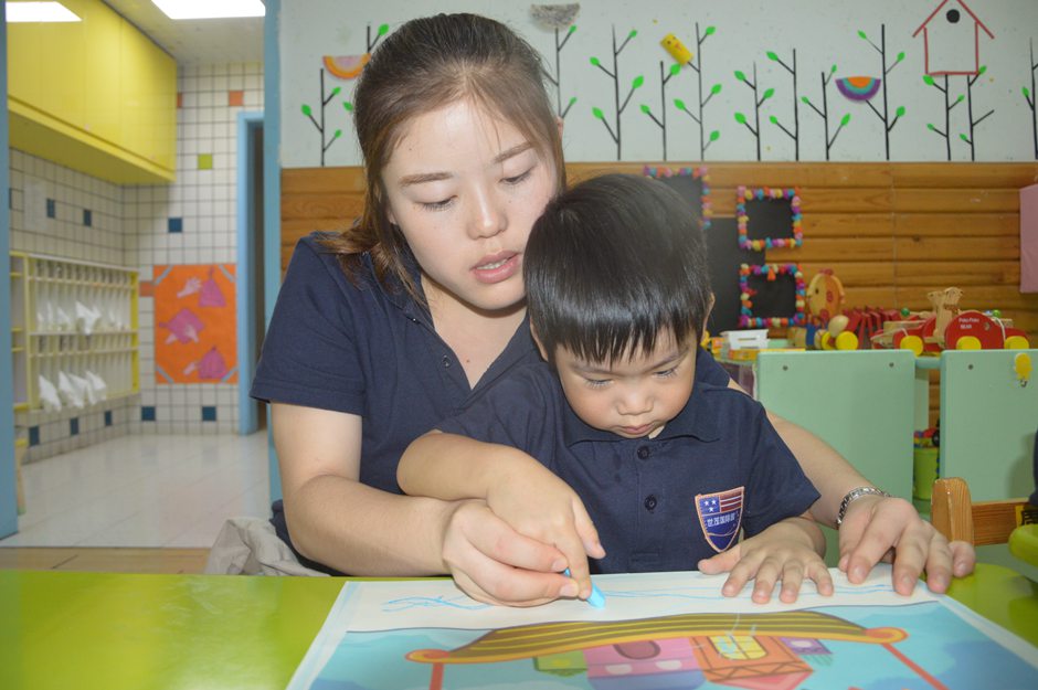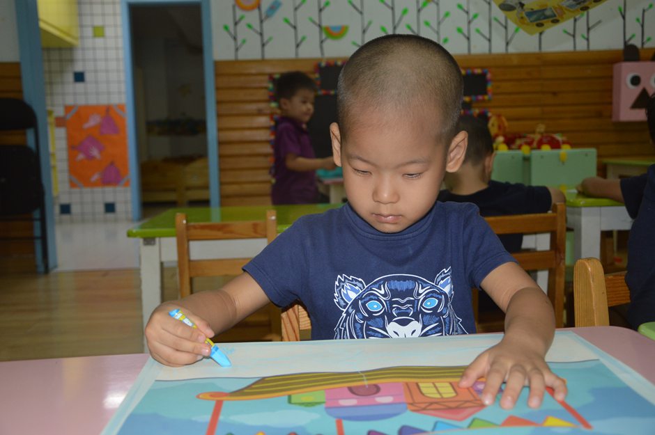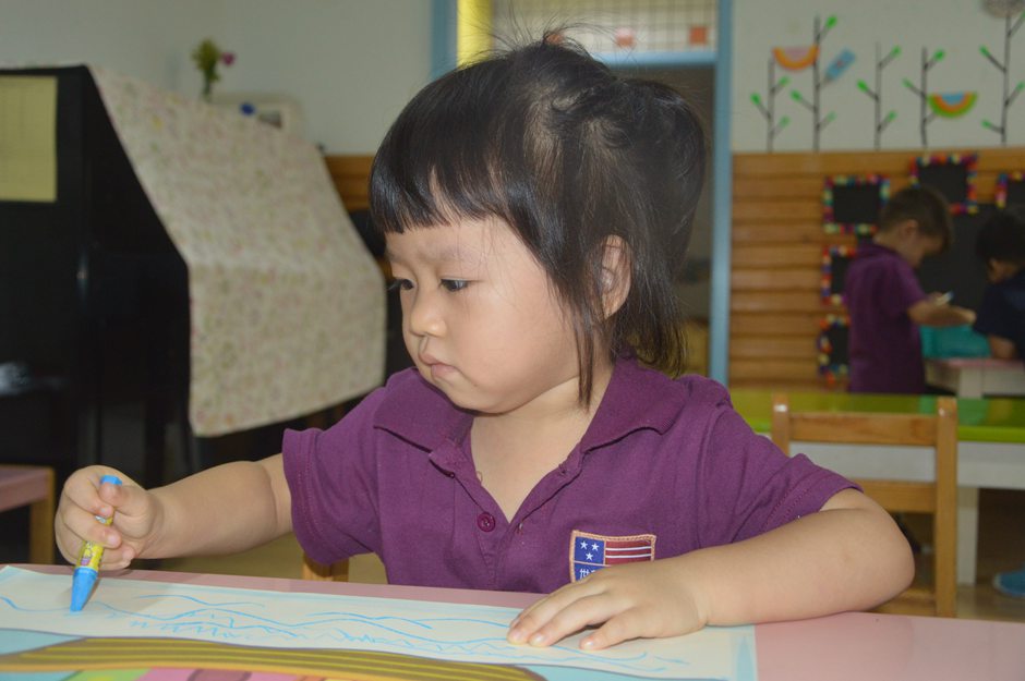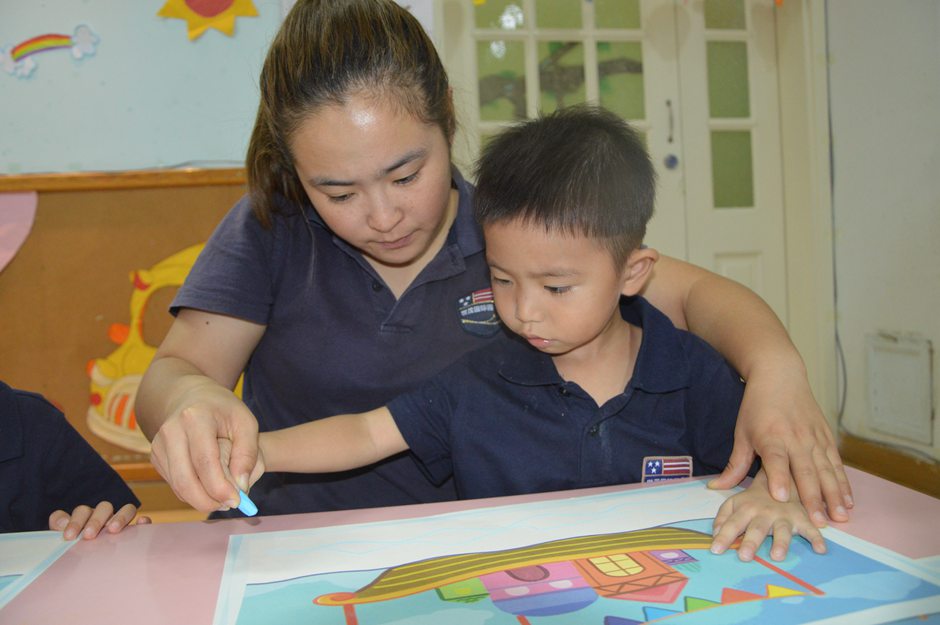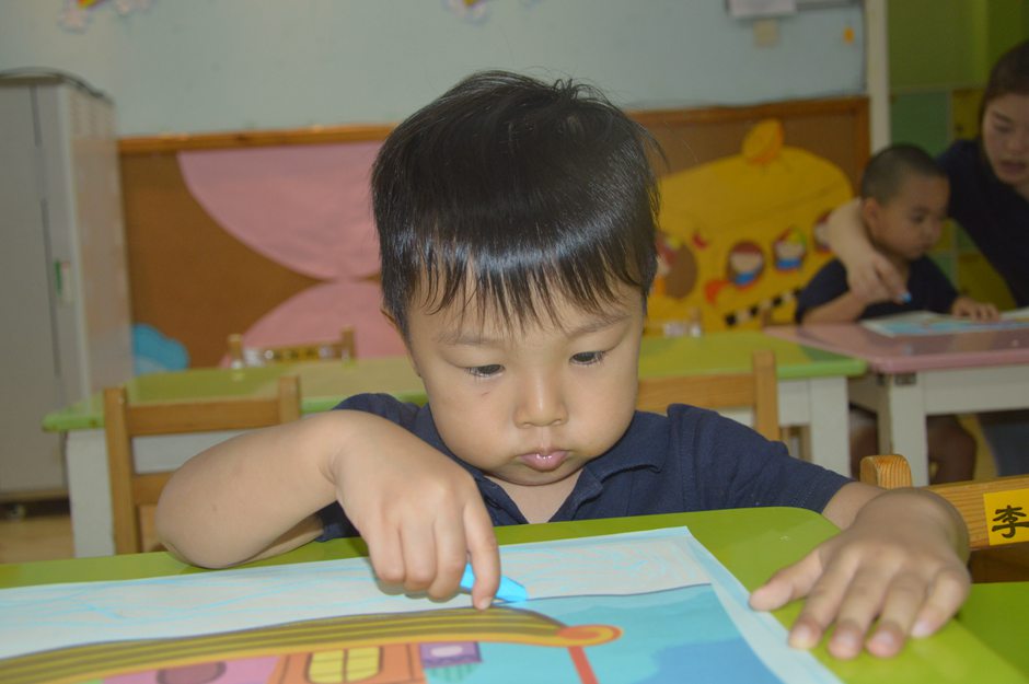 今天让孩子们自己体验画船在海上航行丢失的海浪,孩子们把自己见过的、想到的,画了下来,让这艘大船能在海浪里自由航行。