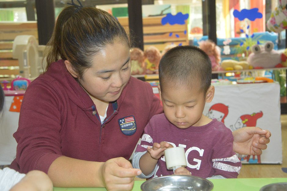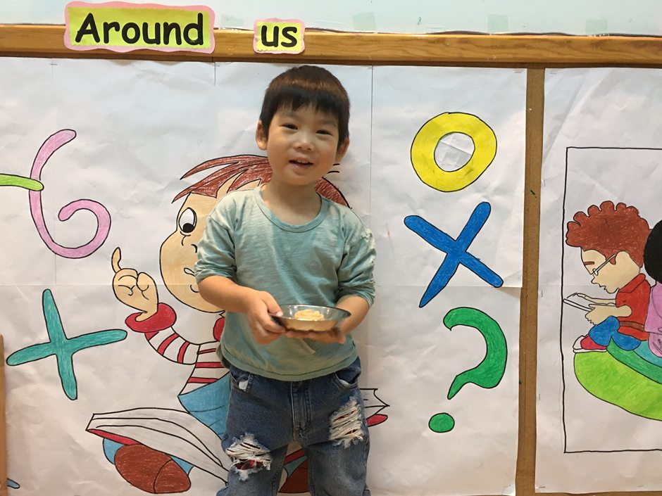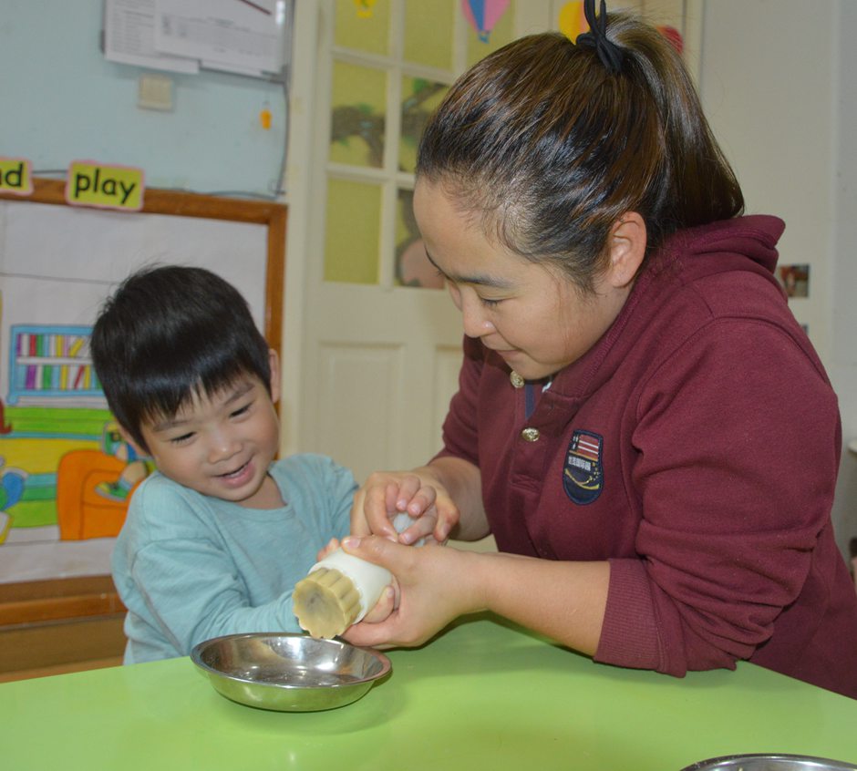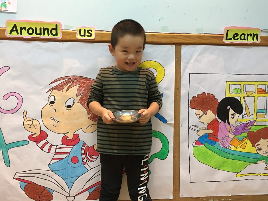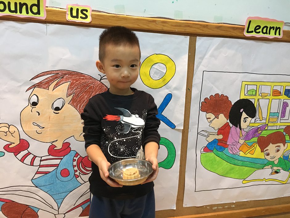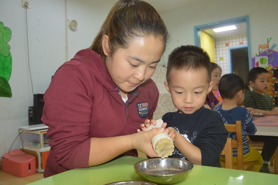马上就要过中秋节了,老师带着孩子们了解节日的由来,先把皮压扁,然后放上豆沙馅,把它捏起来,用模具打出来,然后再烤出来,金黄色的月饼出炉了。