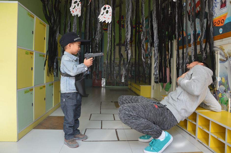 Children themselves brought unique costumes each one of them, such as Dracula, ghosts, bandits, vampires and more. Beginning of the class was introduction to the subject as well as learning new key words as few main ones: Halloween, pumpkin and trick or treat.