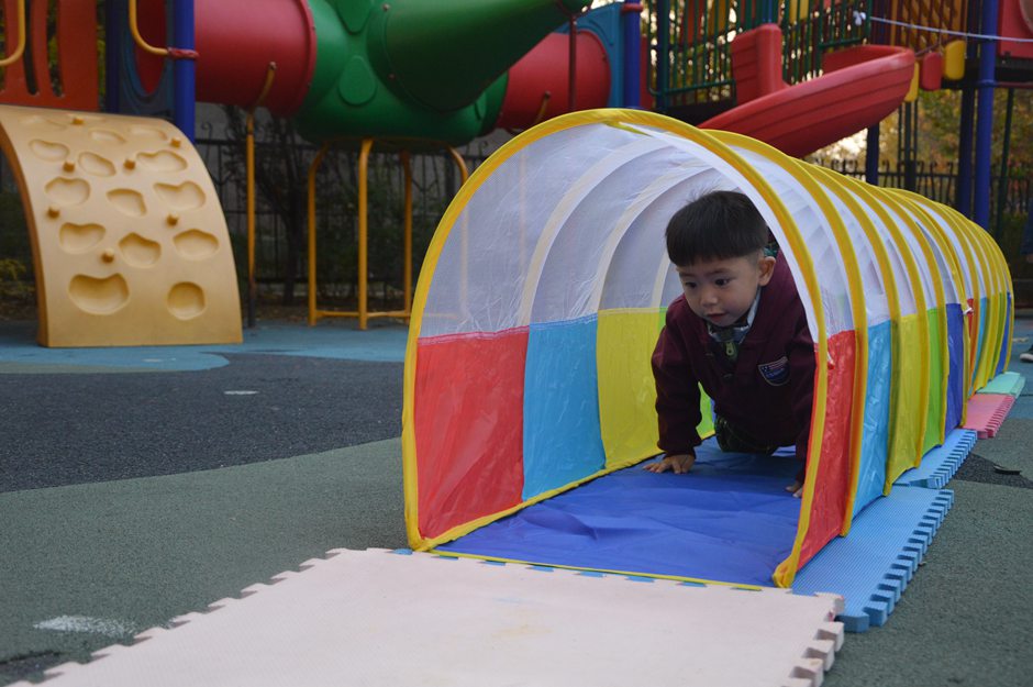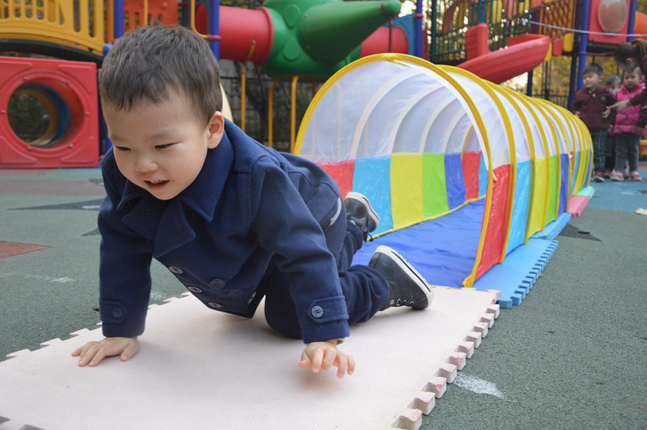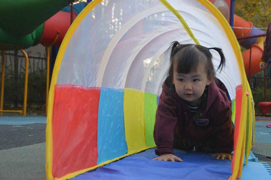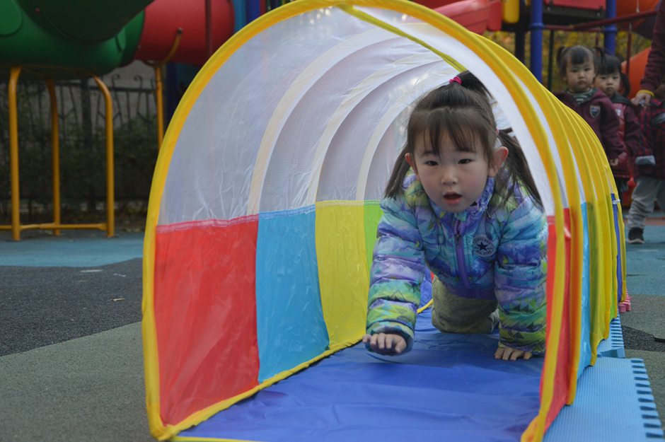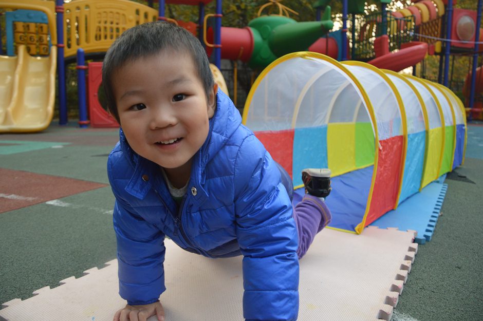 “老师,快看看我棒不棒,我要爬到终点了哦。”
