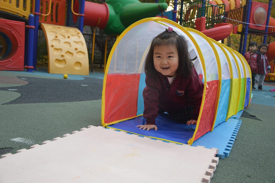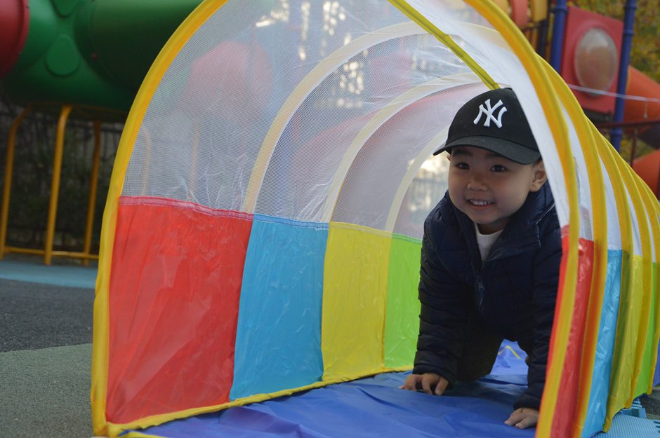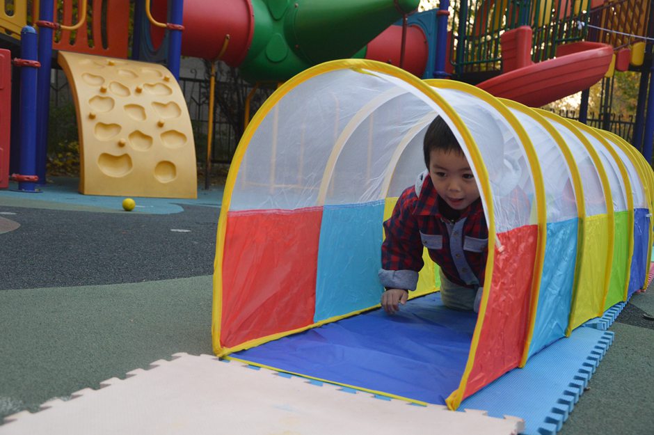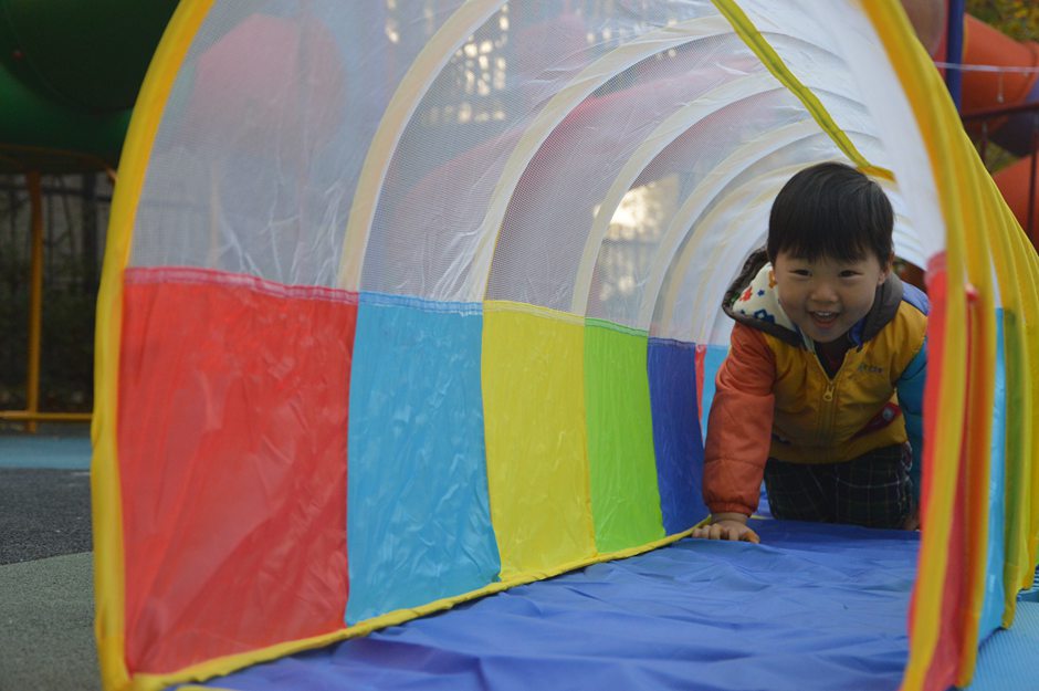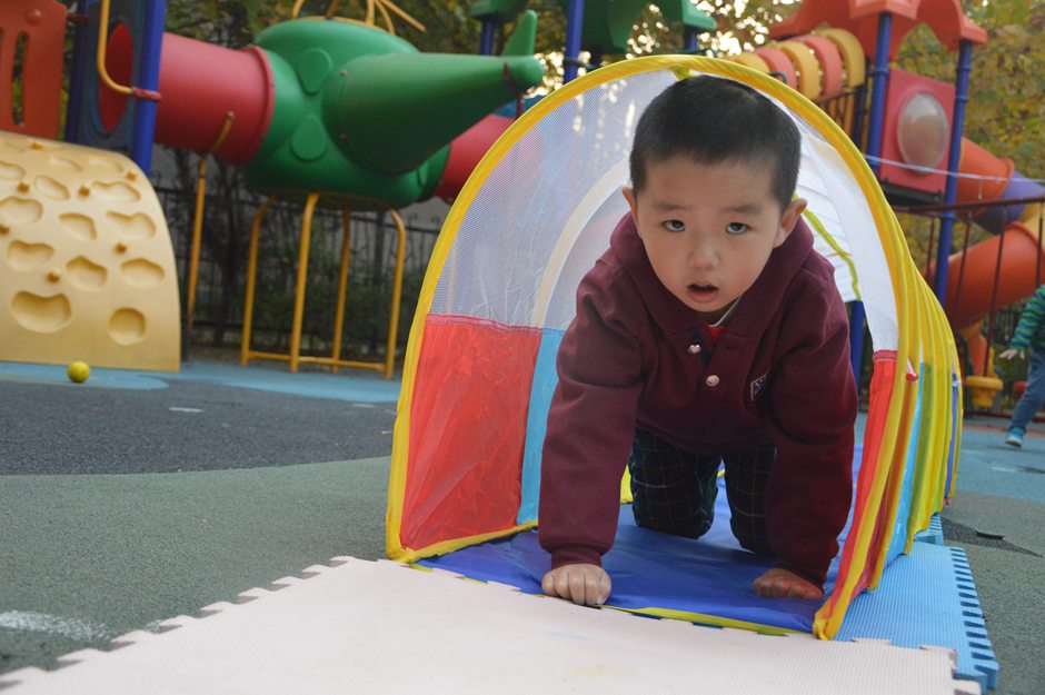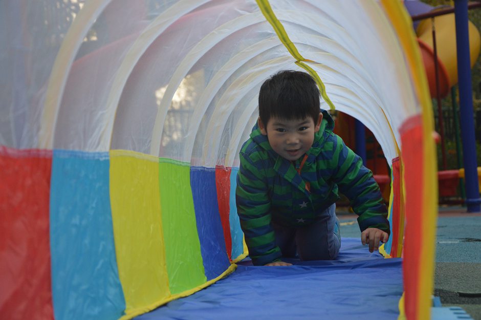 “老师,快看看我棒不棒,我要爬到终点了哦。”