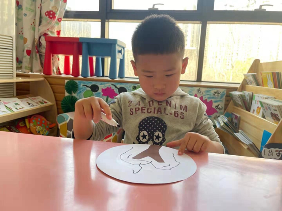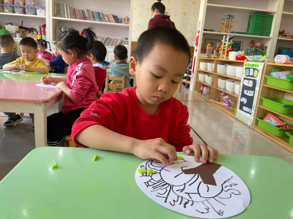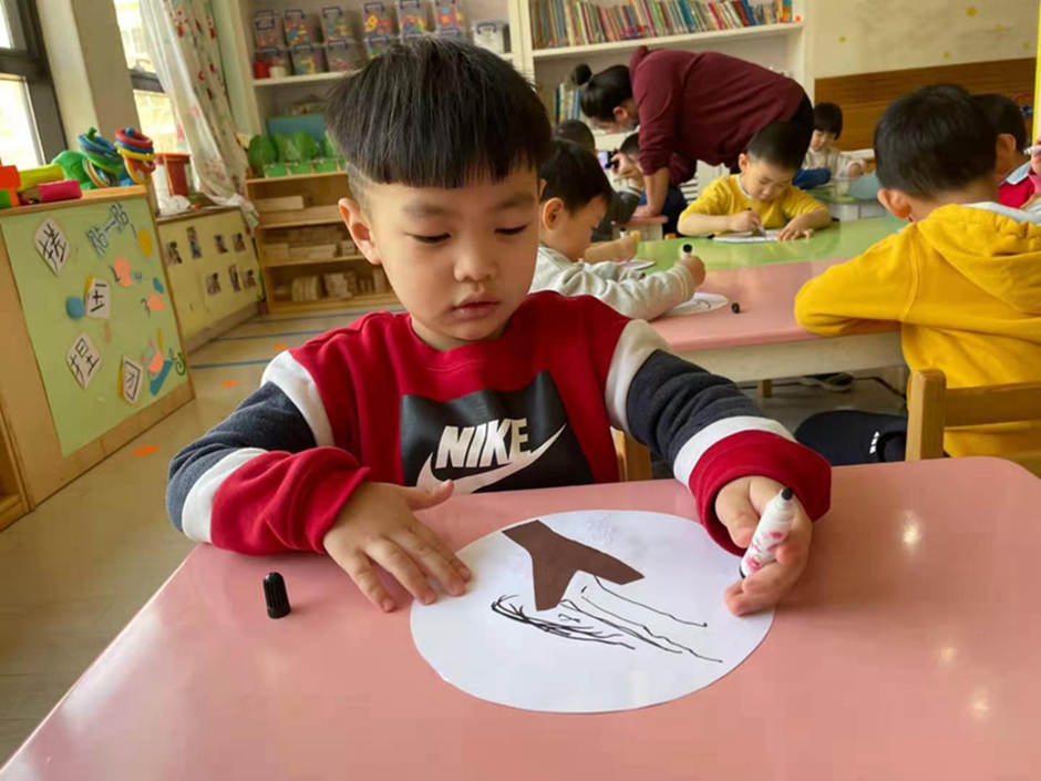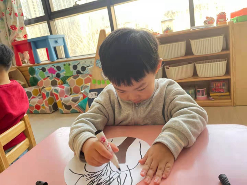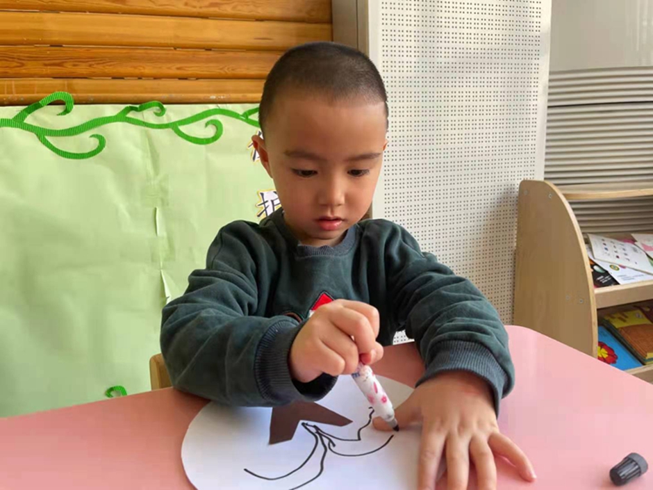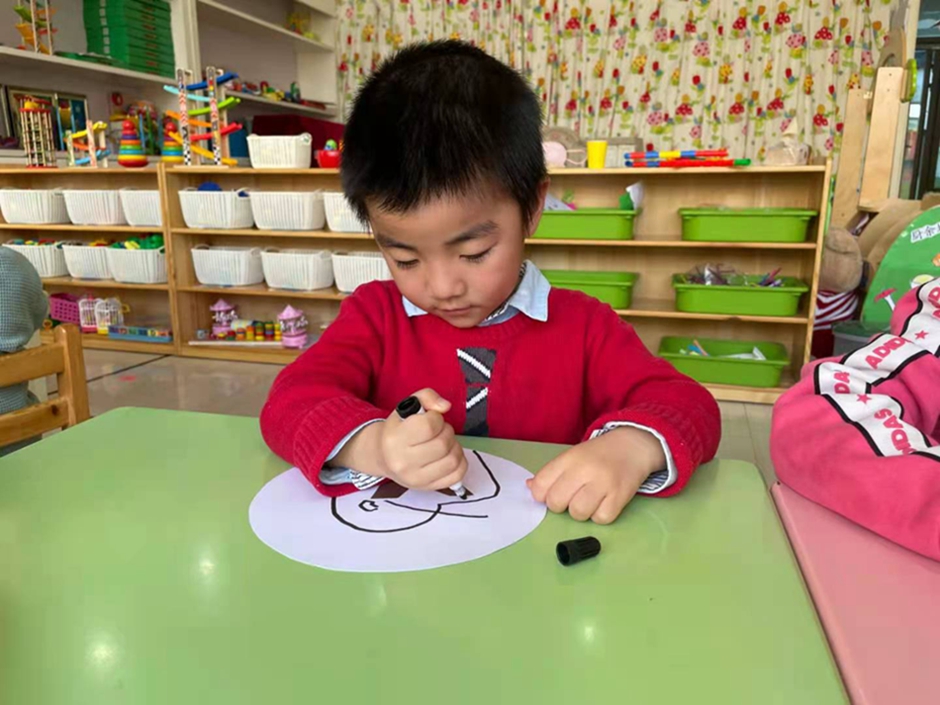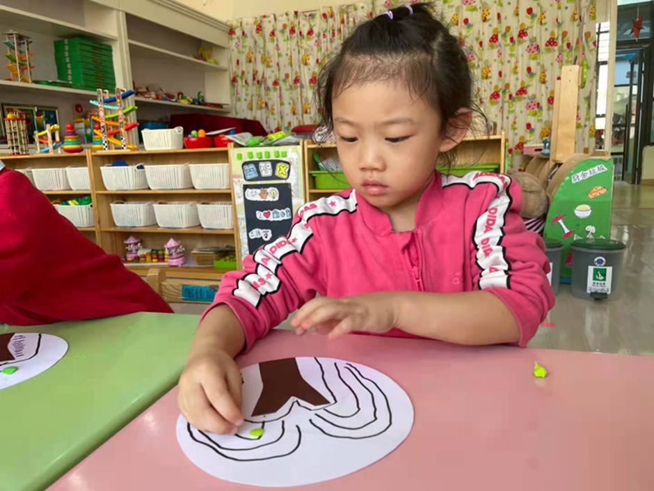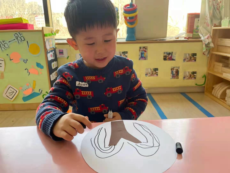 春天来啦,外面的树变绿了,小朋友手里的大树也变成绿色的啦。