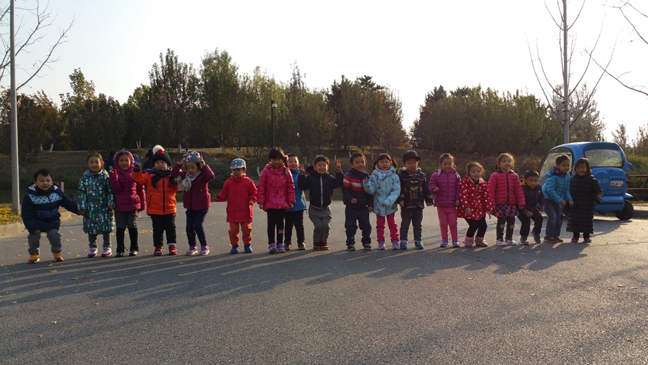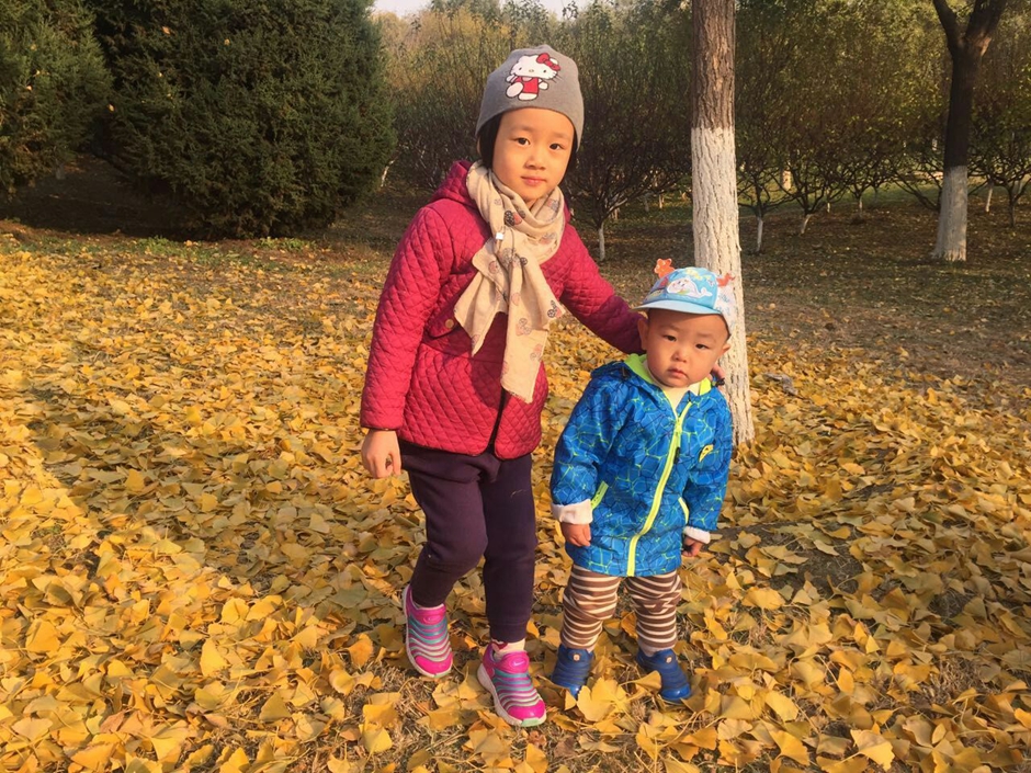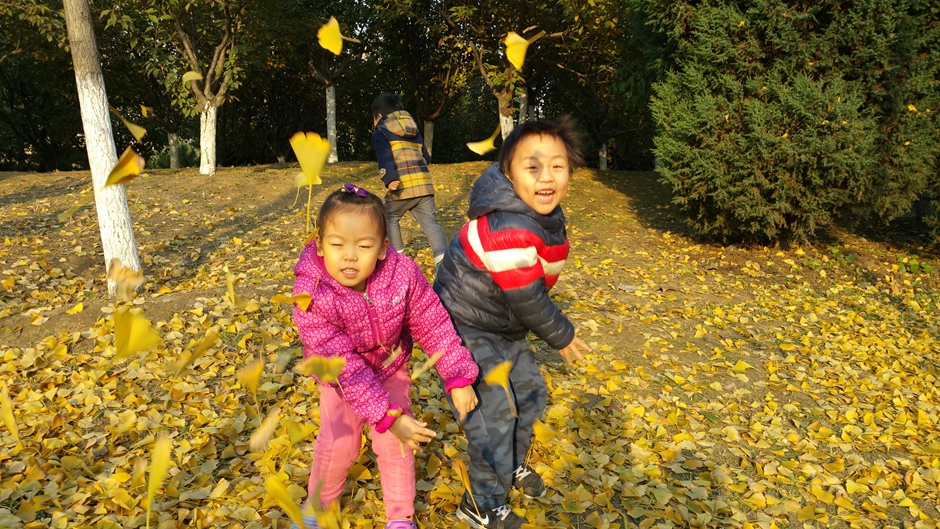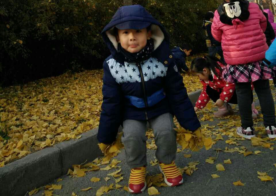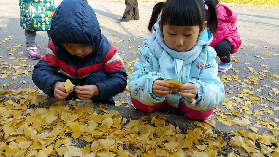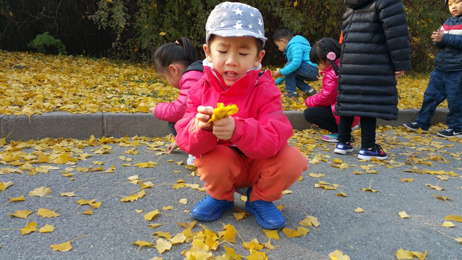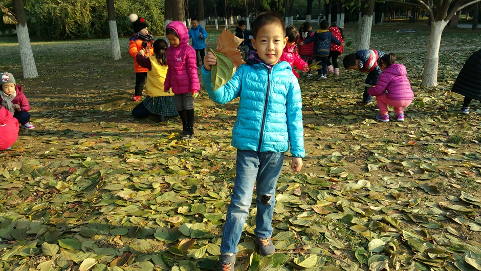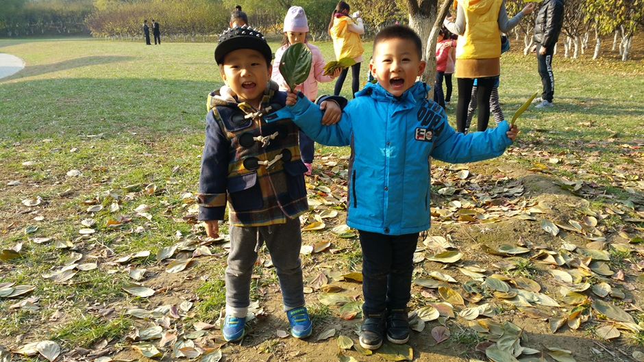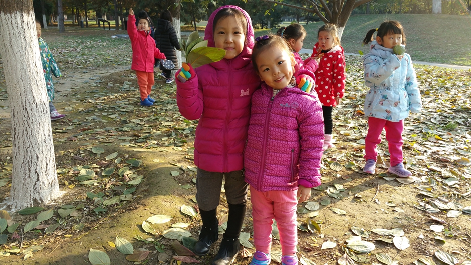 我们和自己的小伙伴一起玩耍,一起捡树叶,好开心啊!