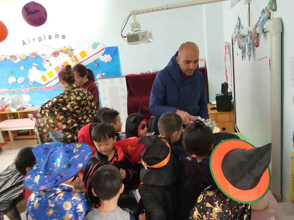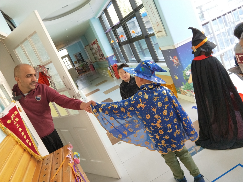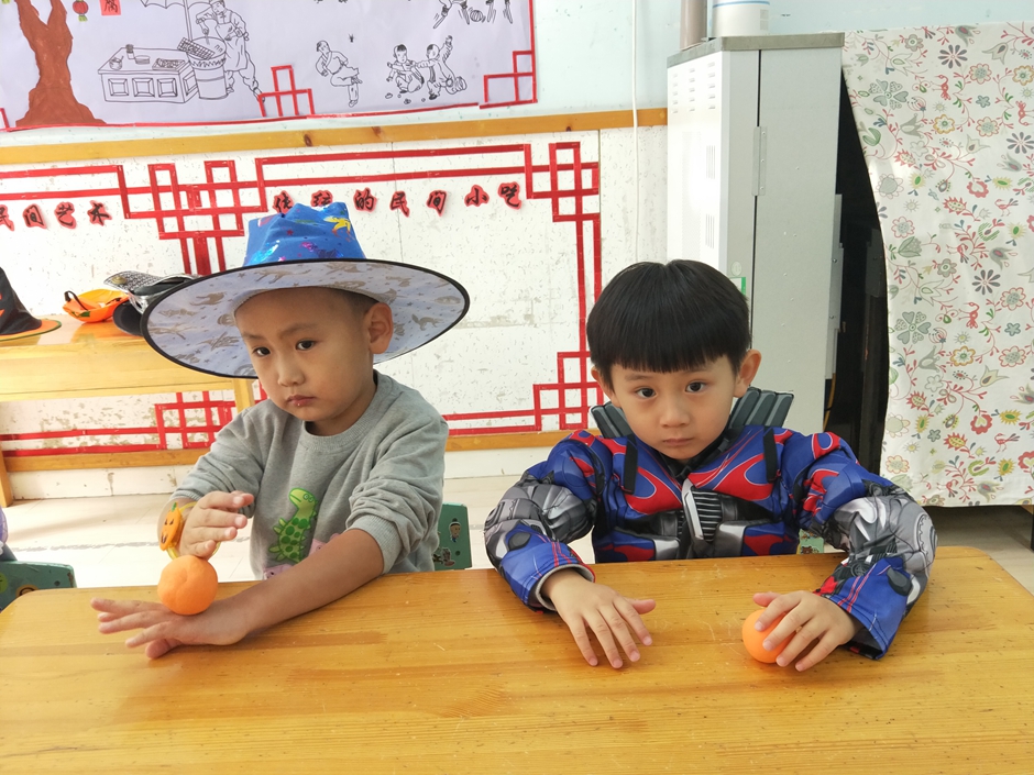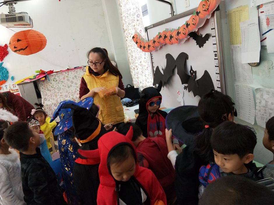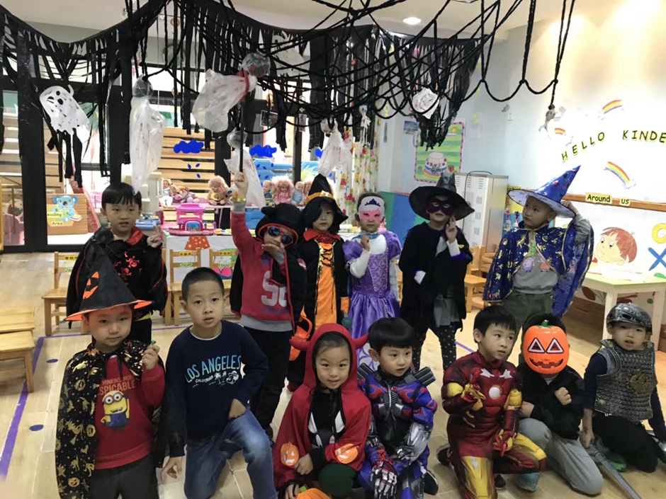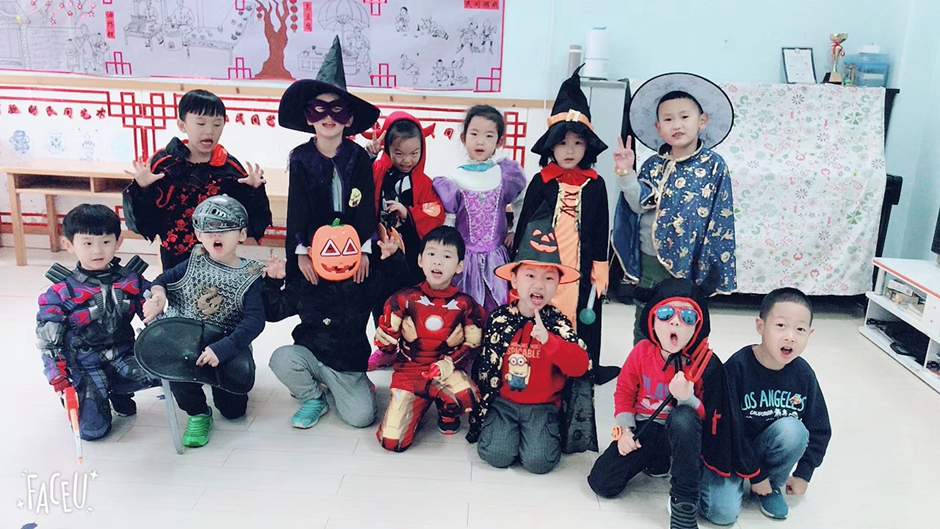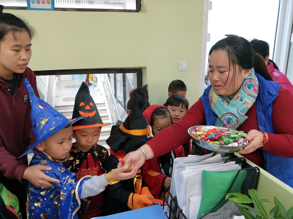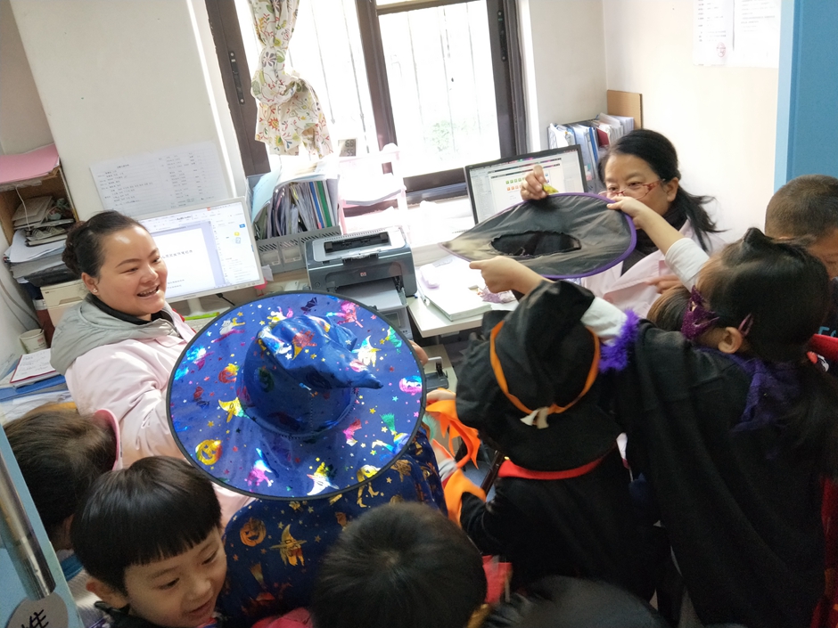 今天是万圣节,我们盛装出席,一起去向园长奶奶讨糖吃,我们的口号是:“不给糖,就捣蛋!”