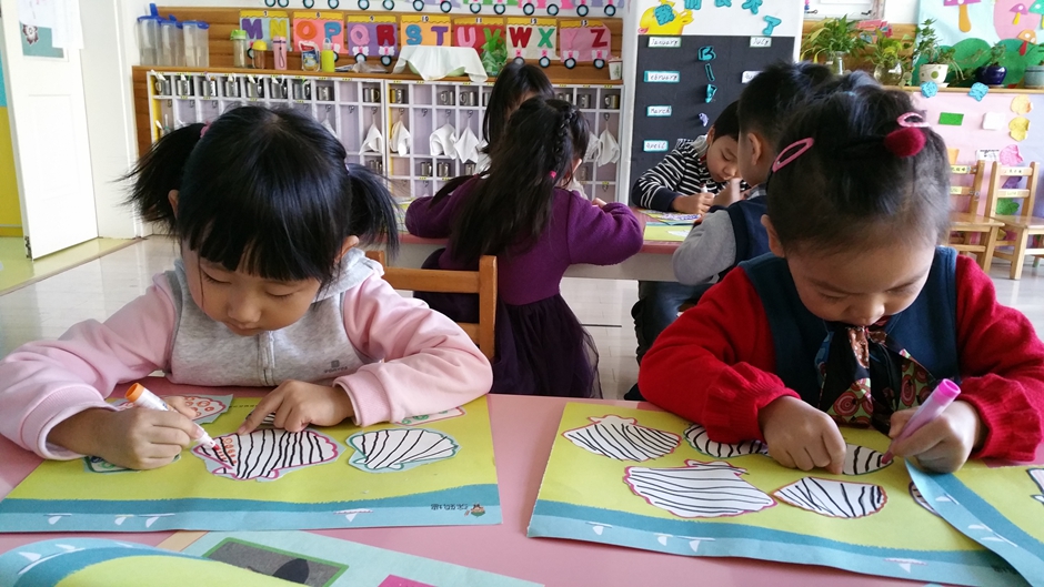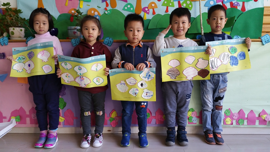 我们又给贝壳画上了美丽的花纹。
