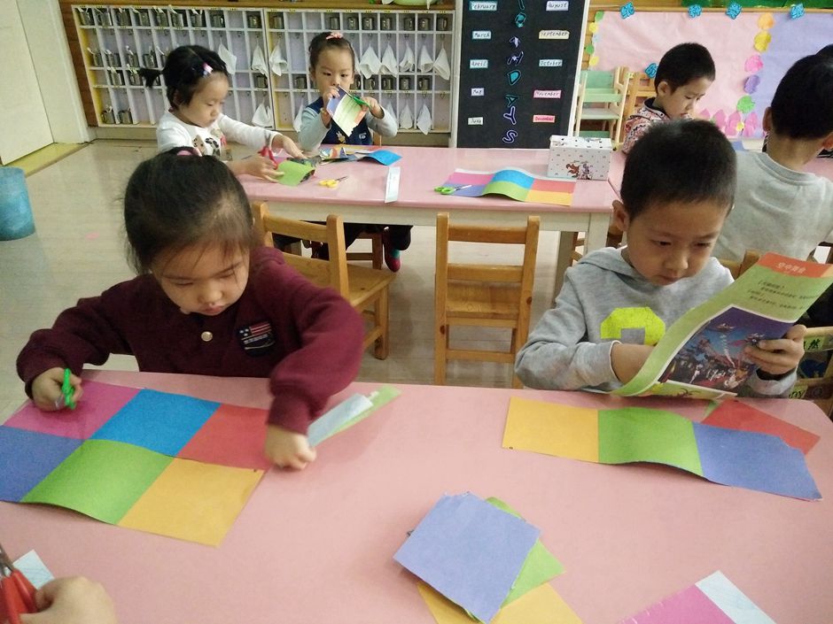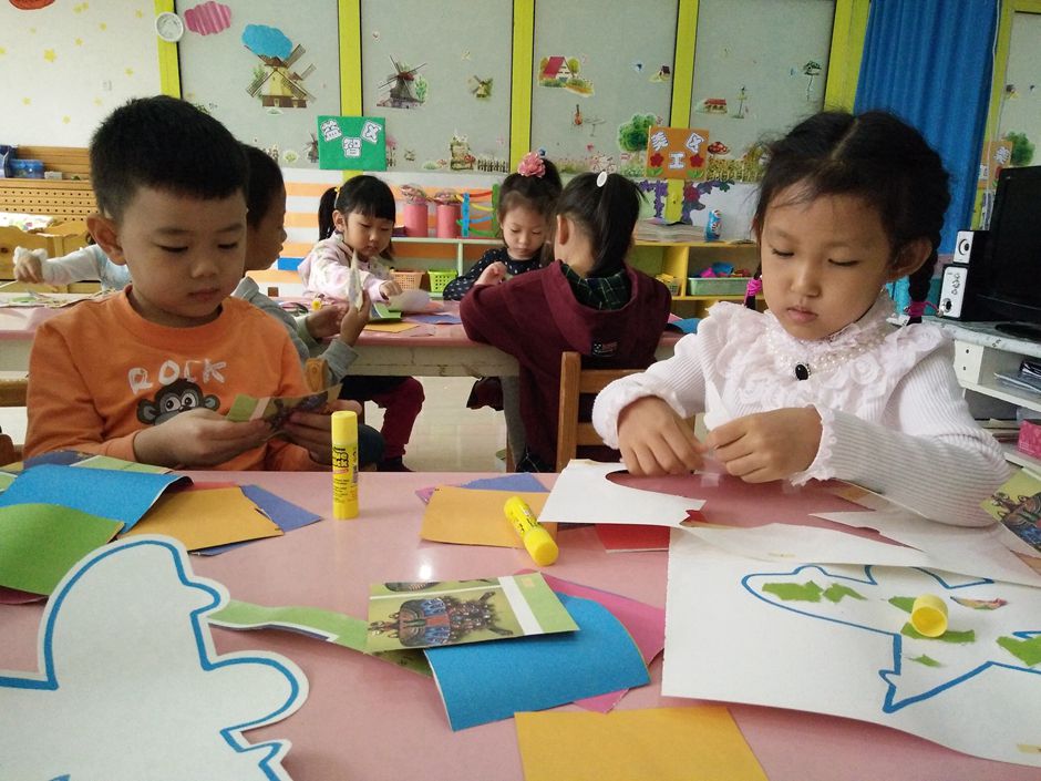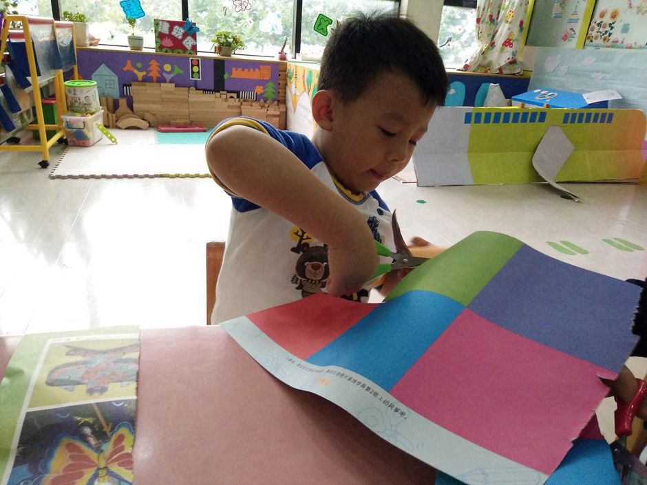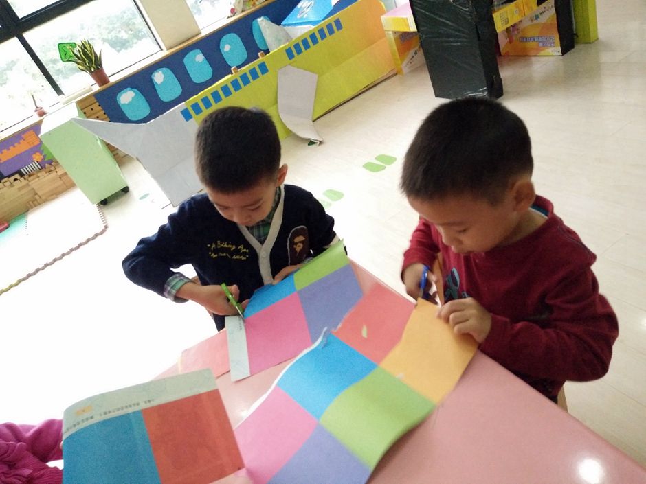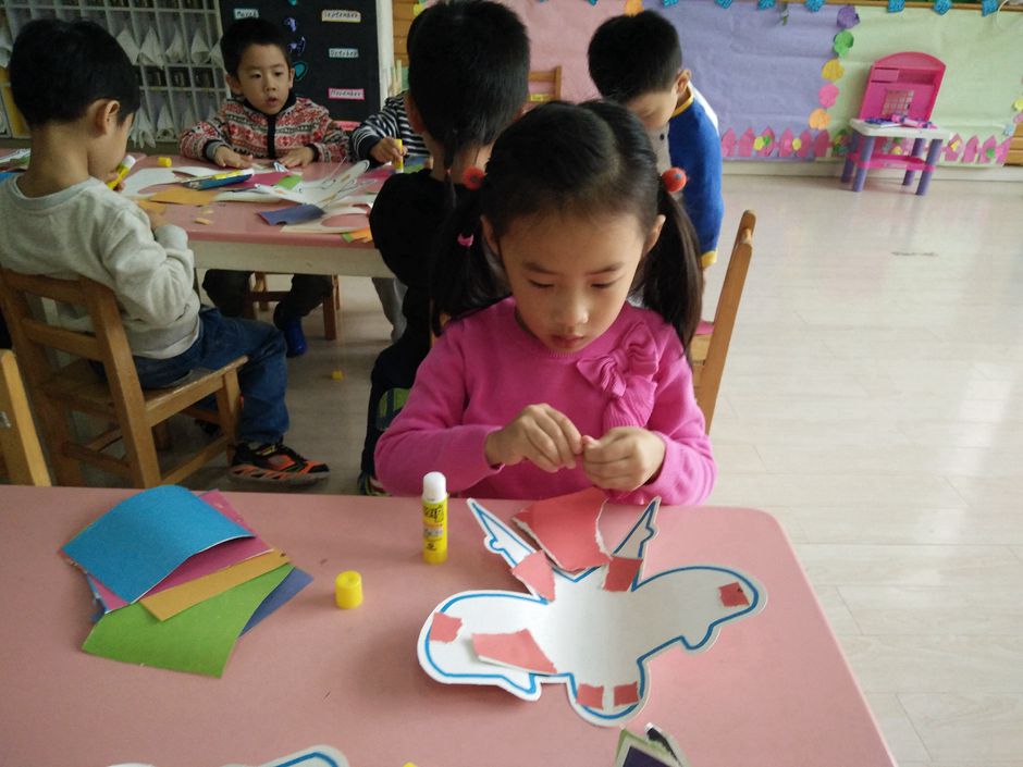 现在我们该装饰自己的风筝了,选择我喜欢的颜色撕成各种形状,我得小心撕让我的风筝美美哒,对啦,记得要两边对称哦