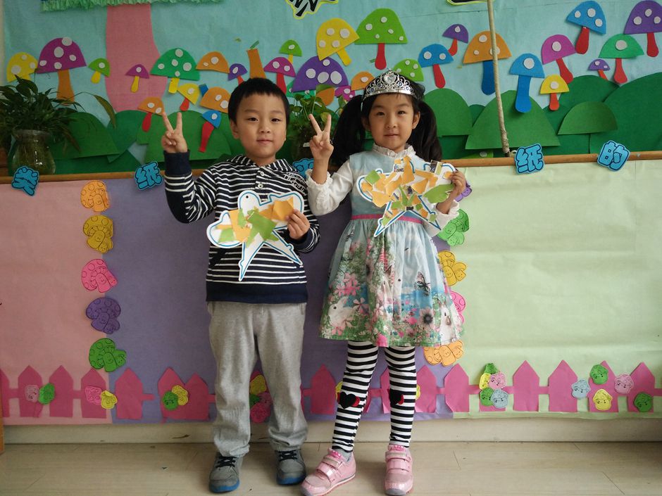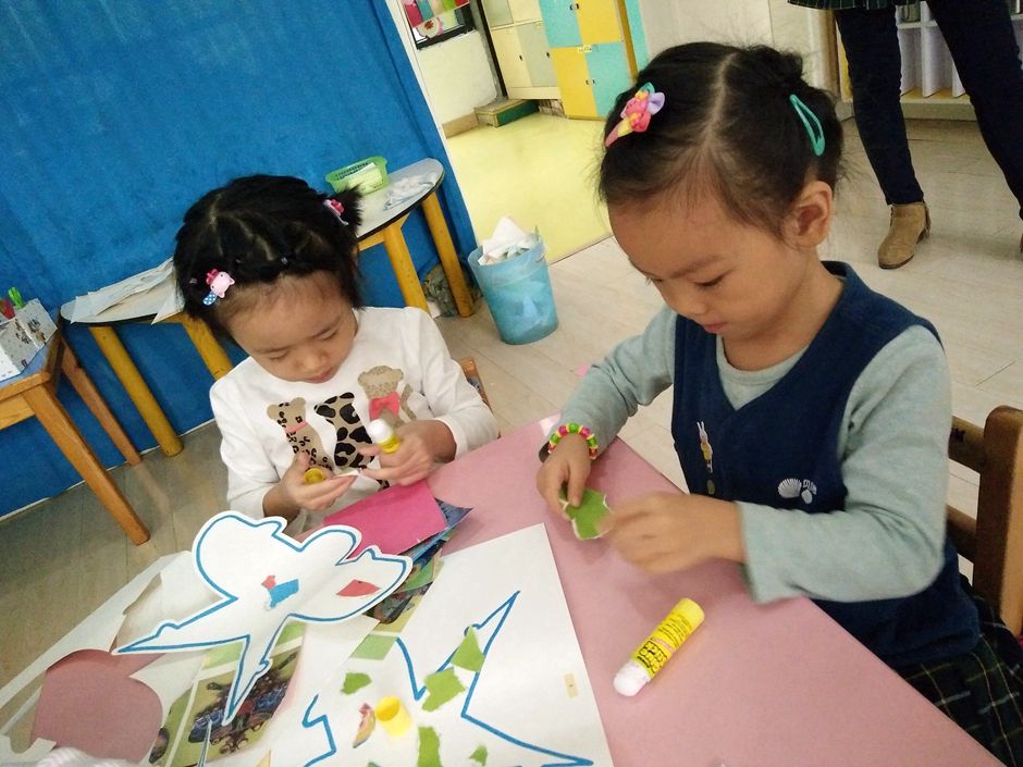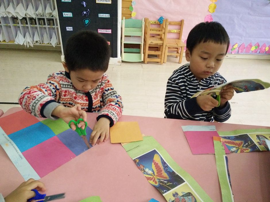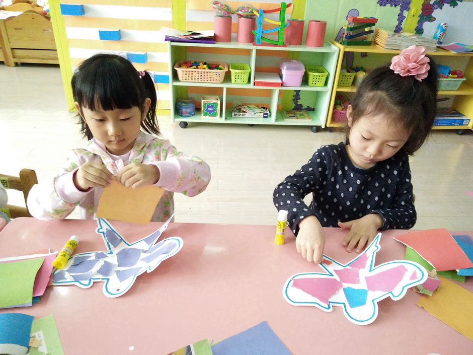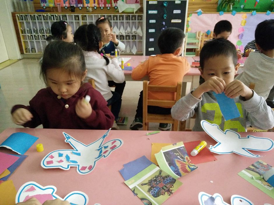现在我们该装饰自己的风筝了,选择我喜欢的颜色撕成各种形状,我得小心撕让我的风筝美美哒,对啦,记得要两边对称哦