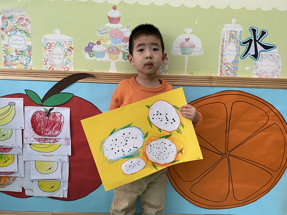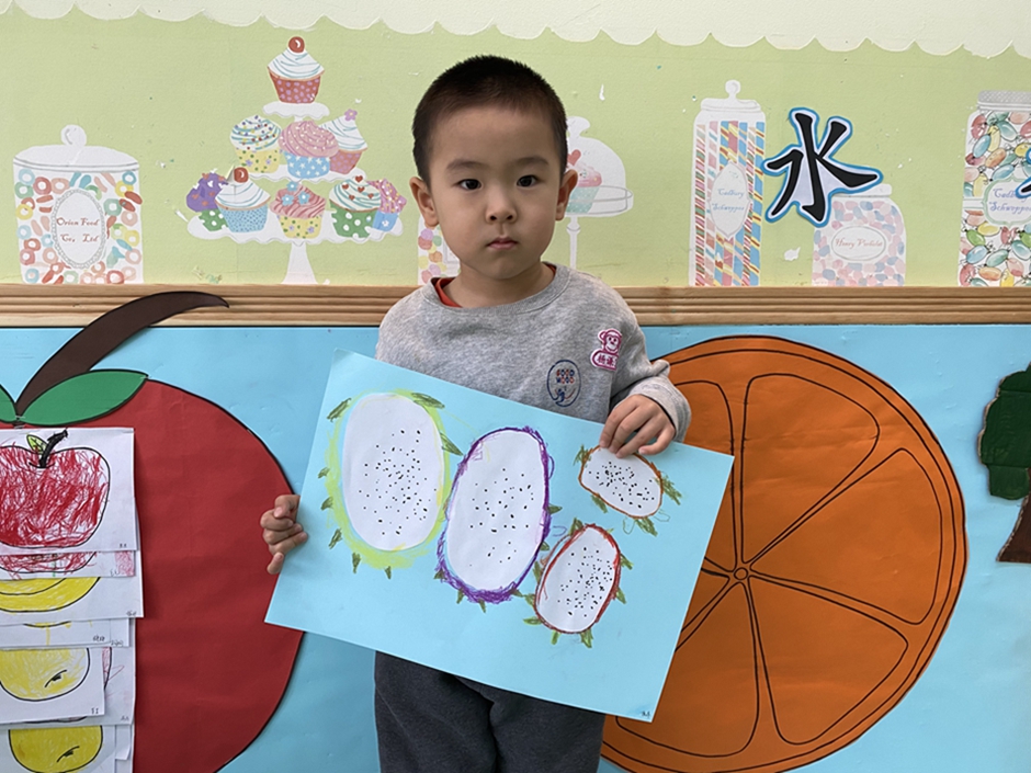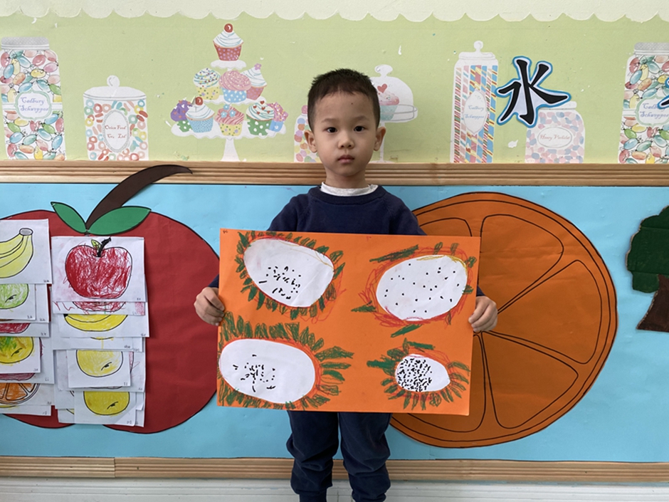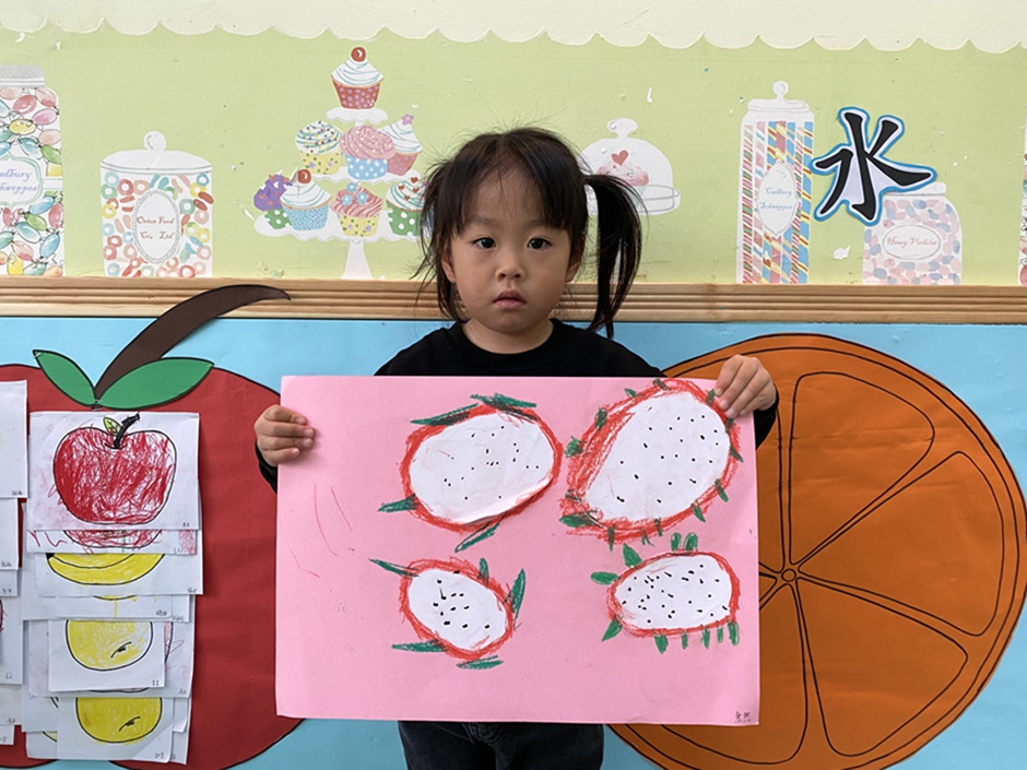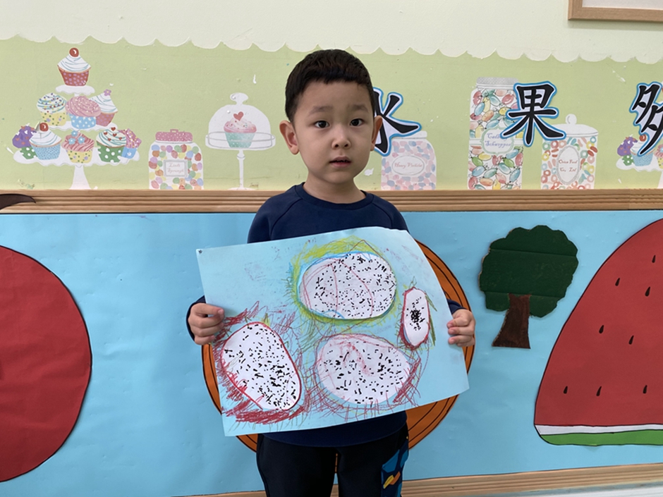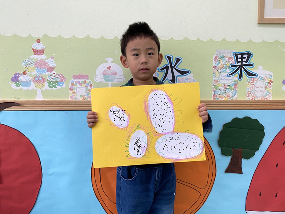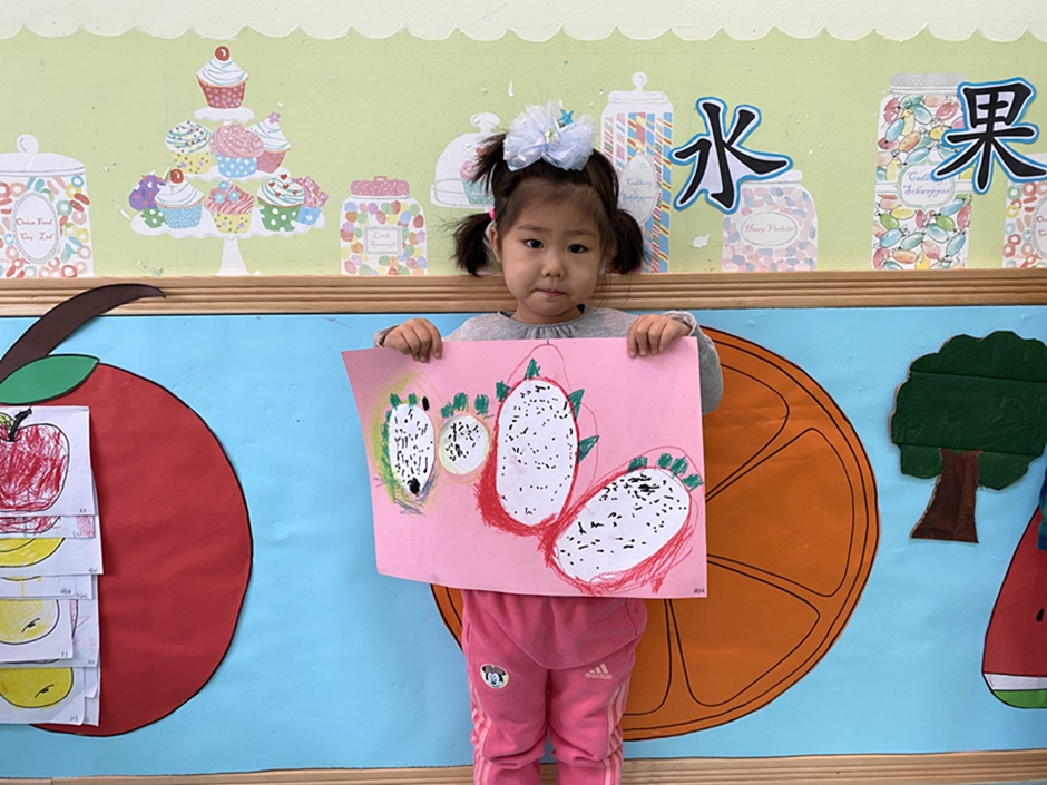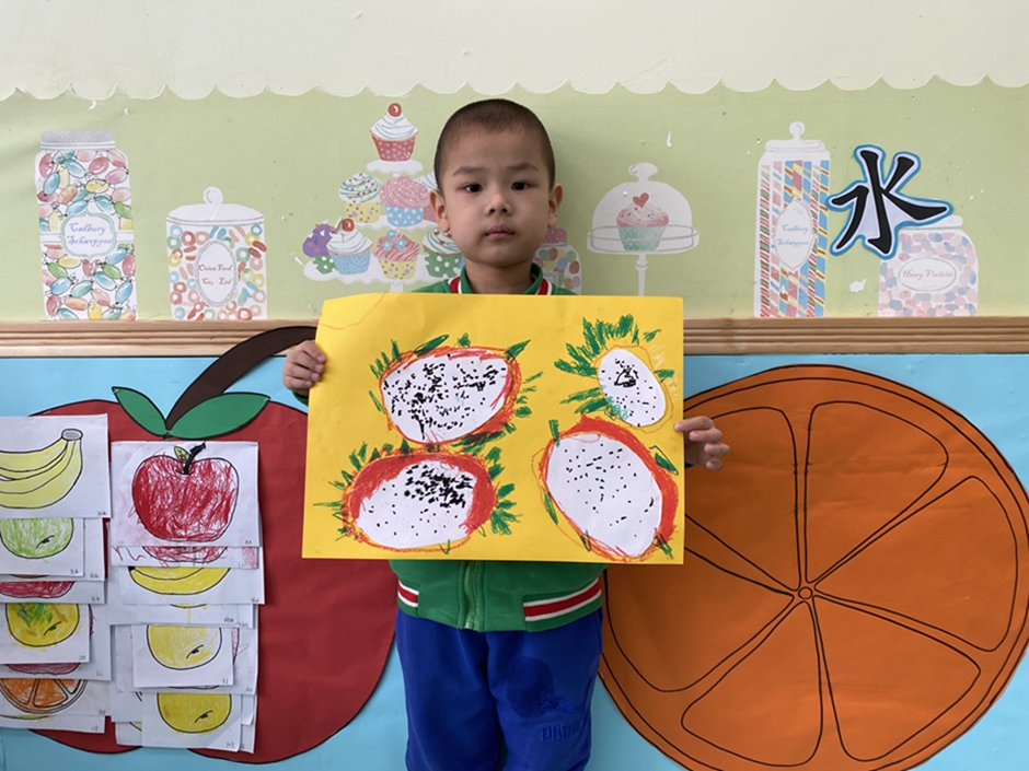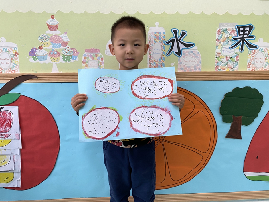 今天我们大家一起给好吃的火龙果穿上了漂亮的衣服,你们看我们的火龙果漂亮吗
