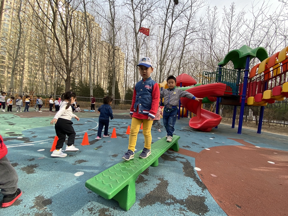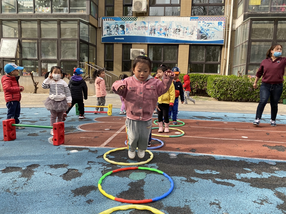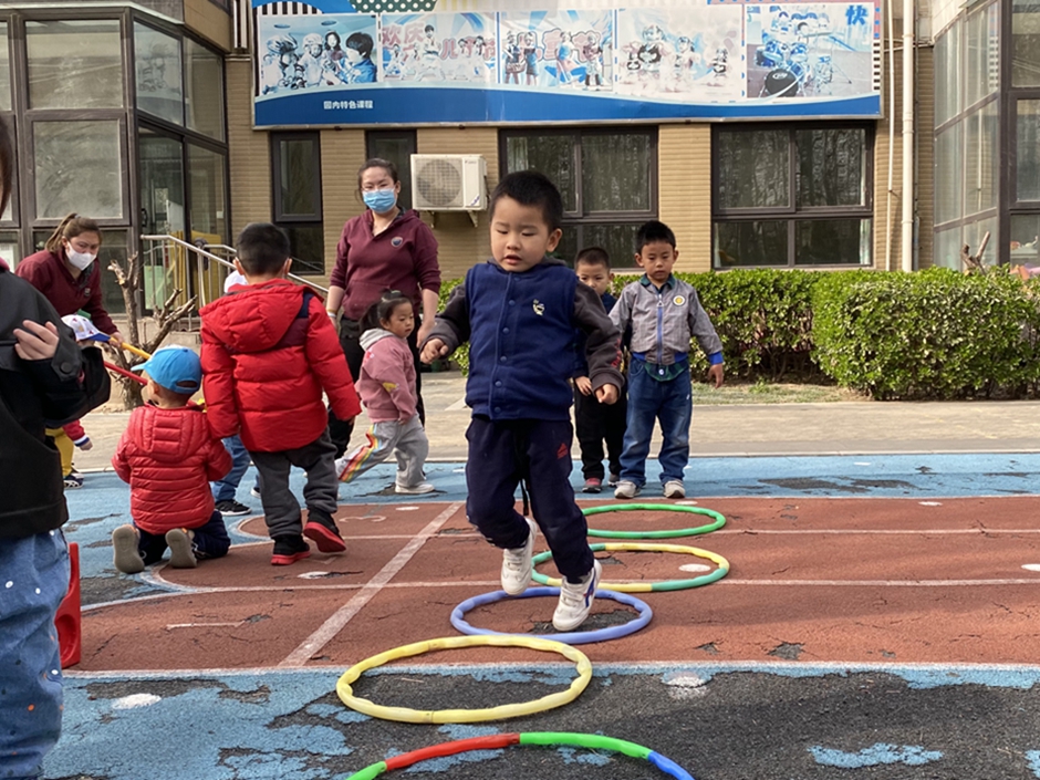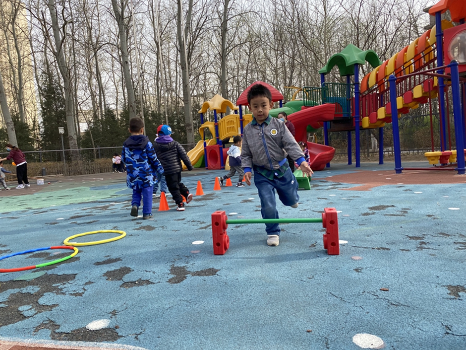 今天天气真好,我们玩了好玩的跑跳跨游戏,我们越来越喜欢体育游戏了