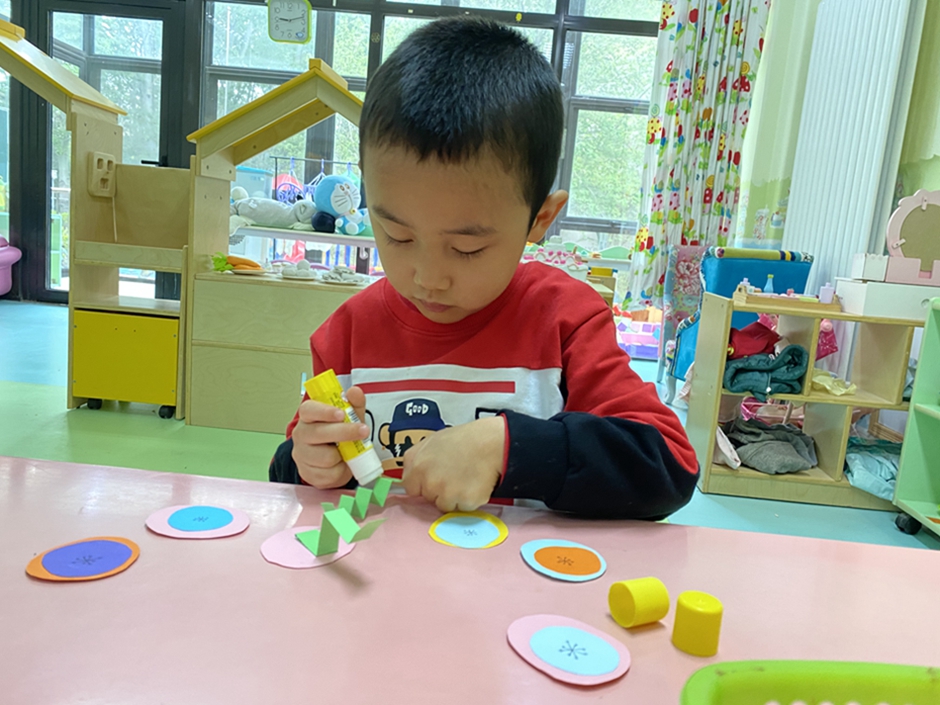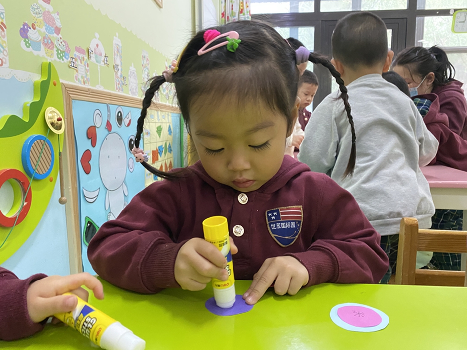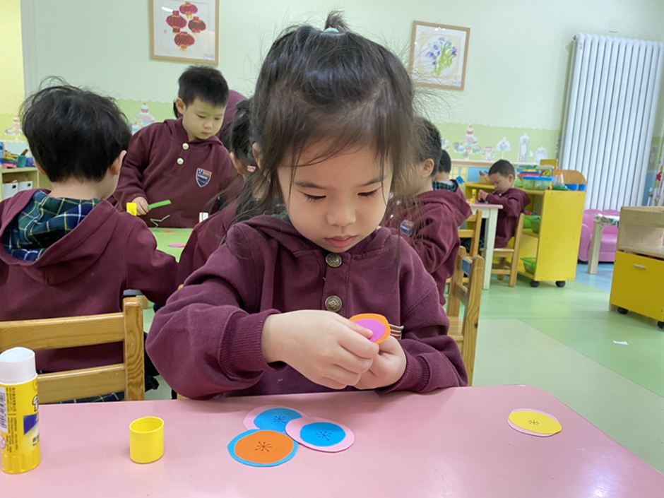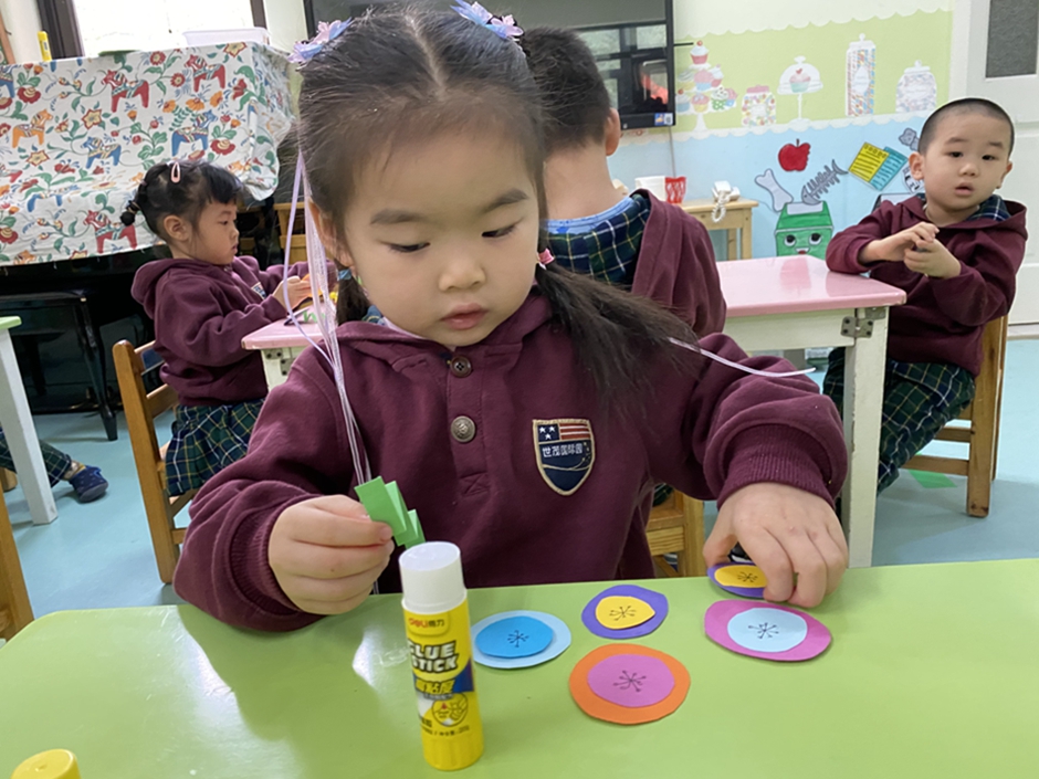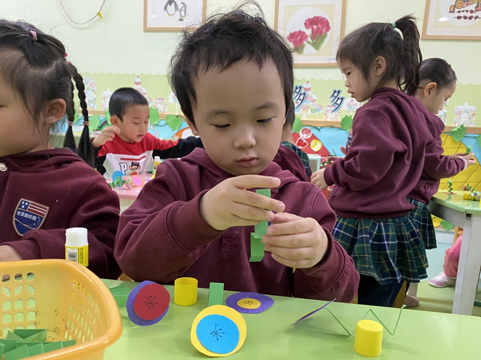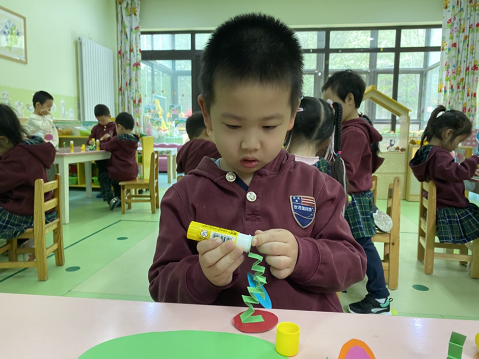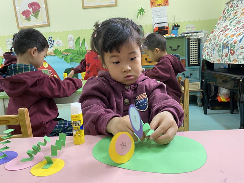 春天到了,我们一起做了五颜六色的花朵,我们的花朵都非常漂亮,真是太棒了