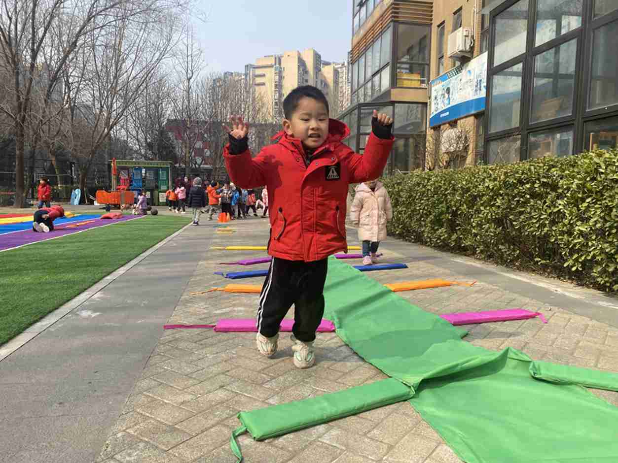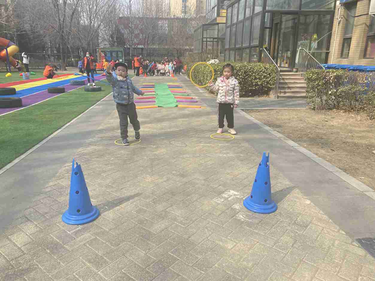 天气可真好,我们跳跃、奔跑、套圈,开心急了。