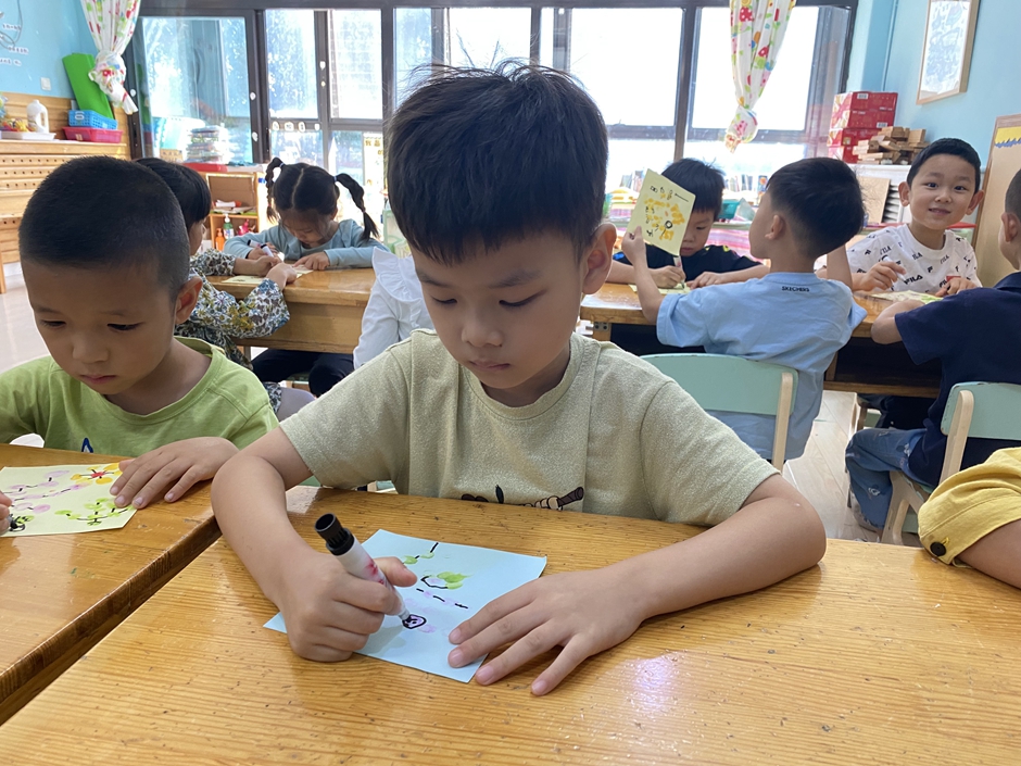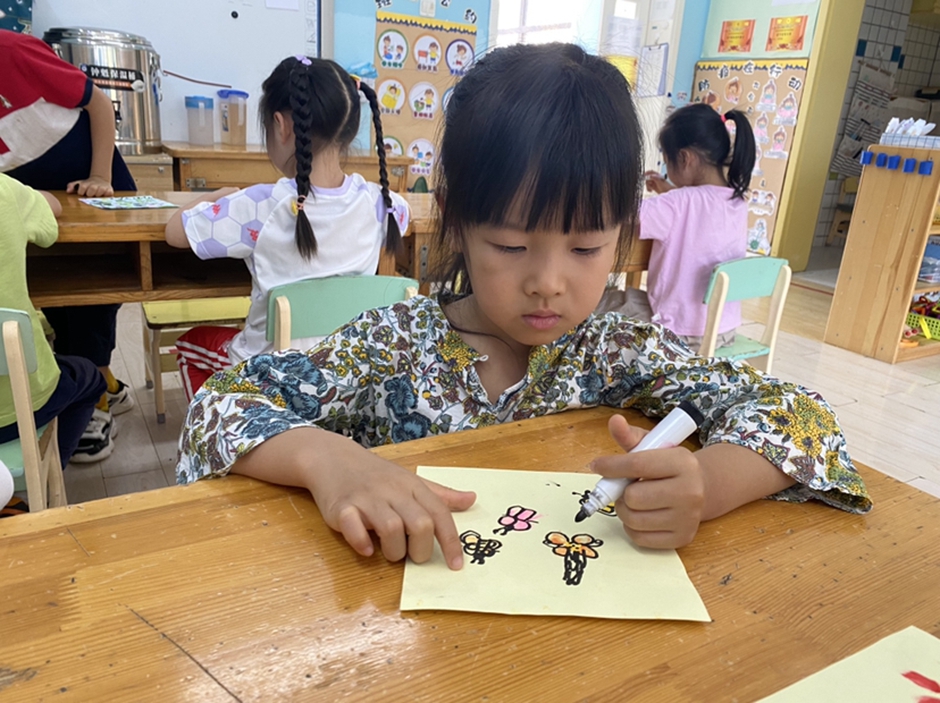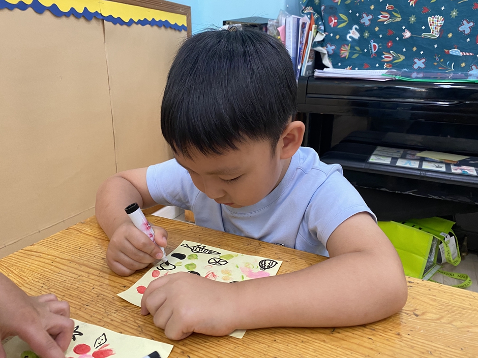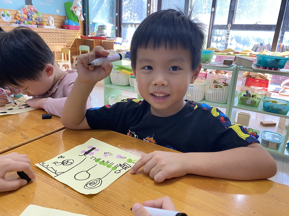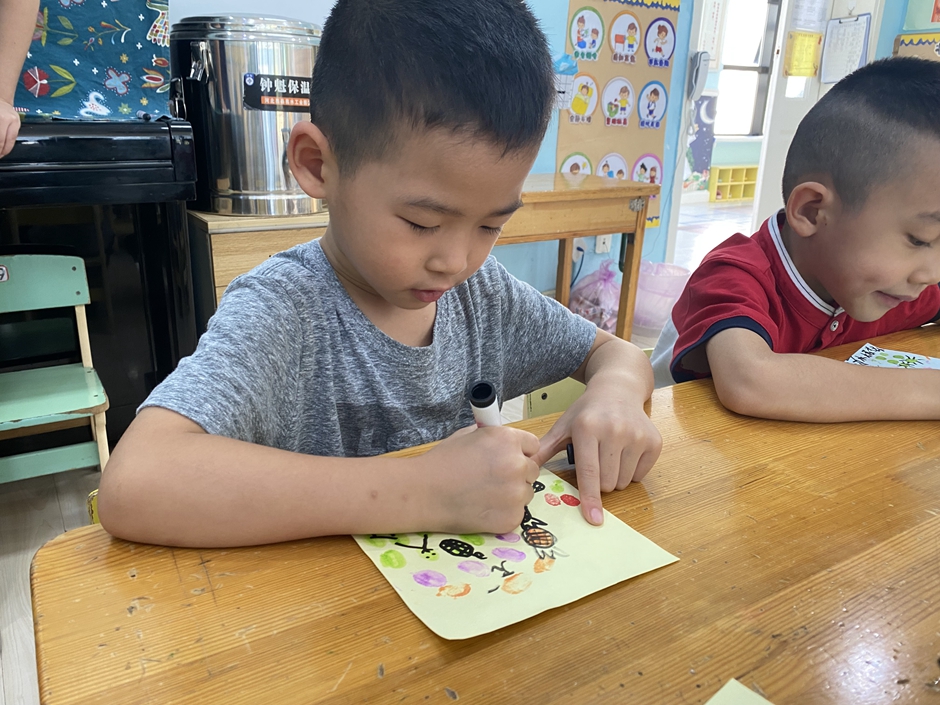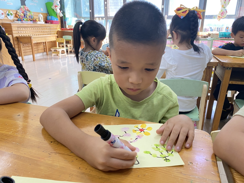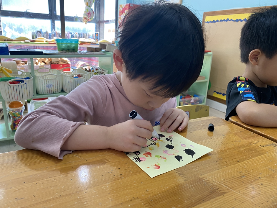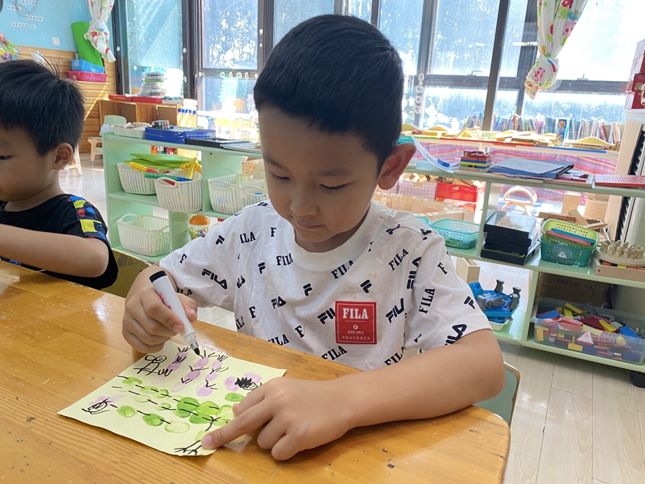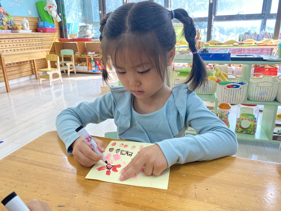我们今天用手指来作画,我们的手指印可以变成蝴蝶、小花、孔雀还有各种有趣的事物