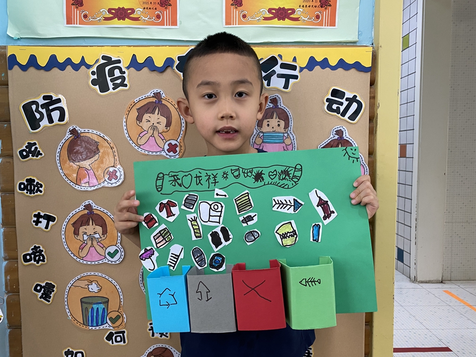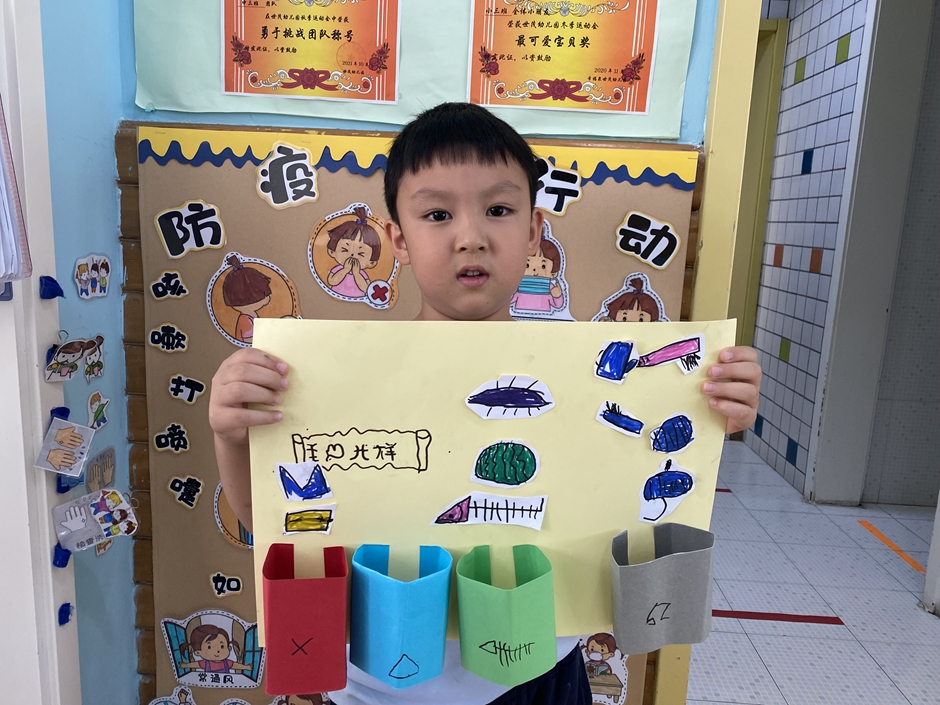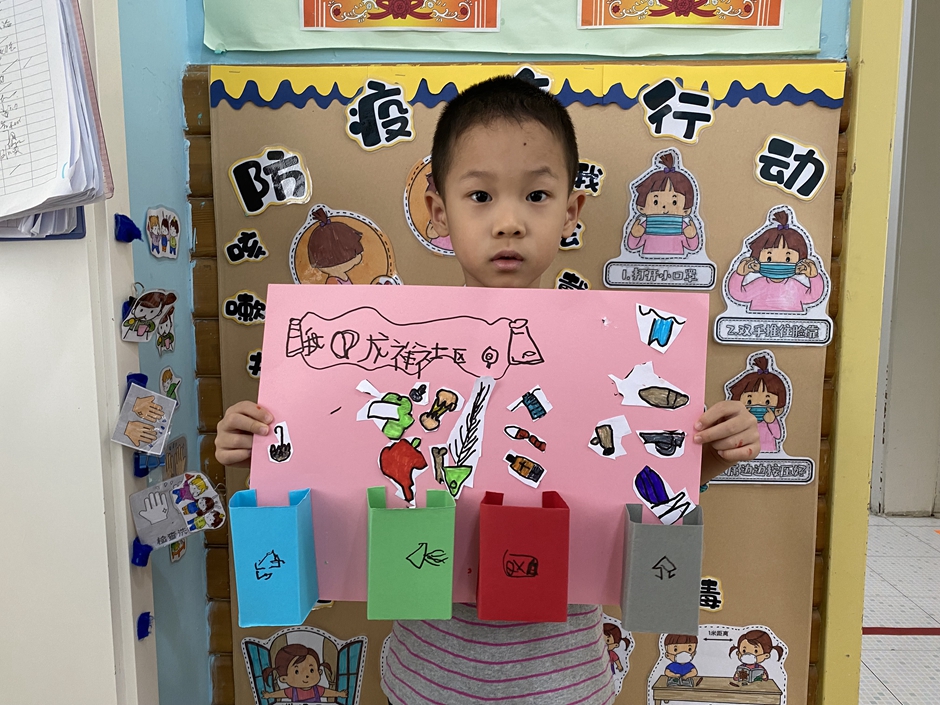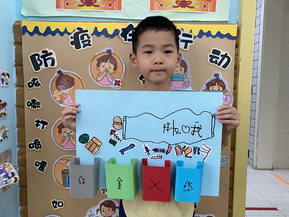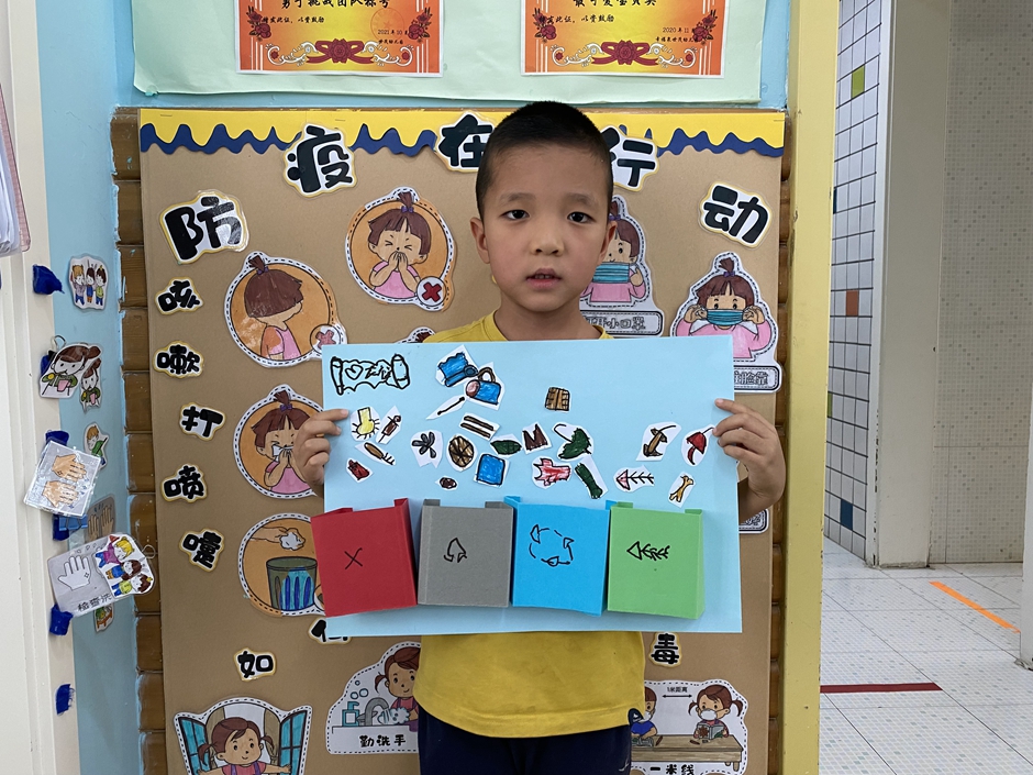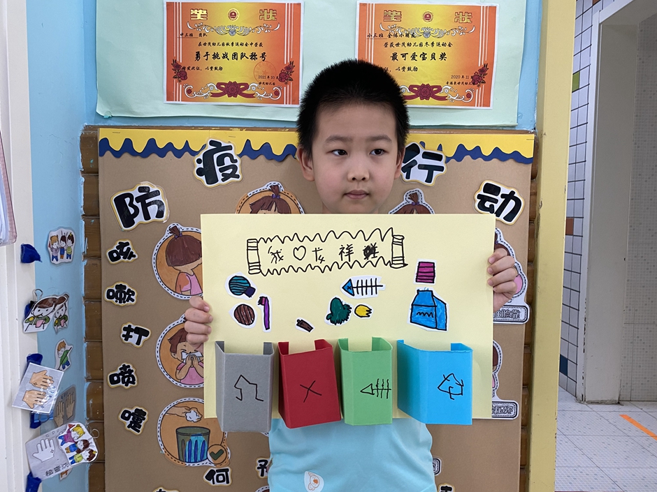 今天我们制作了垃圾分类的作品。保护环境,垃圾分类,从我做起。