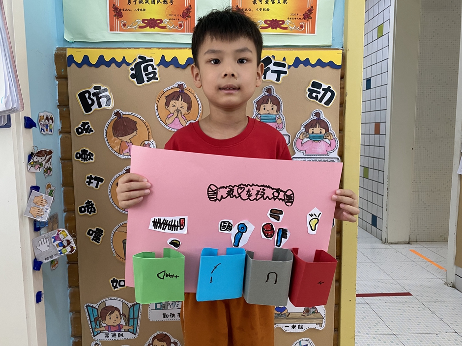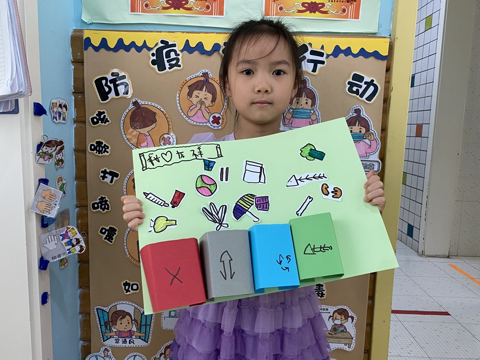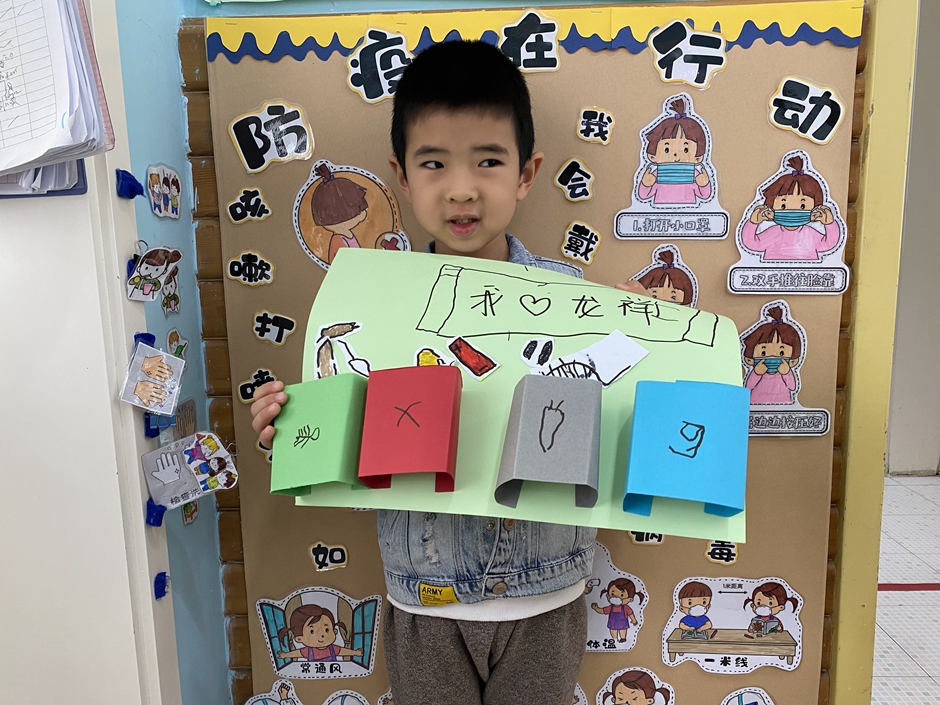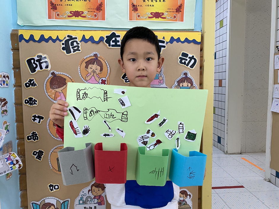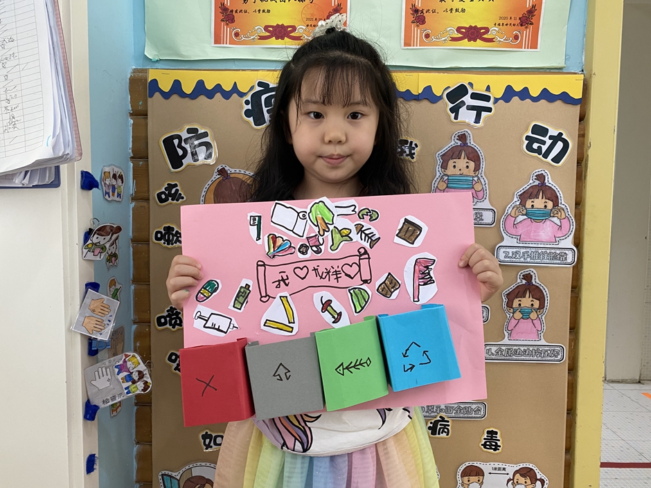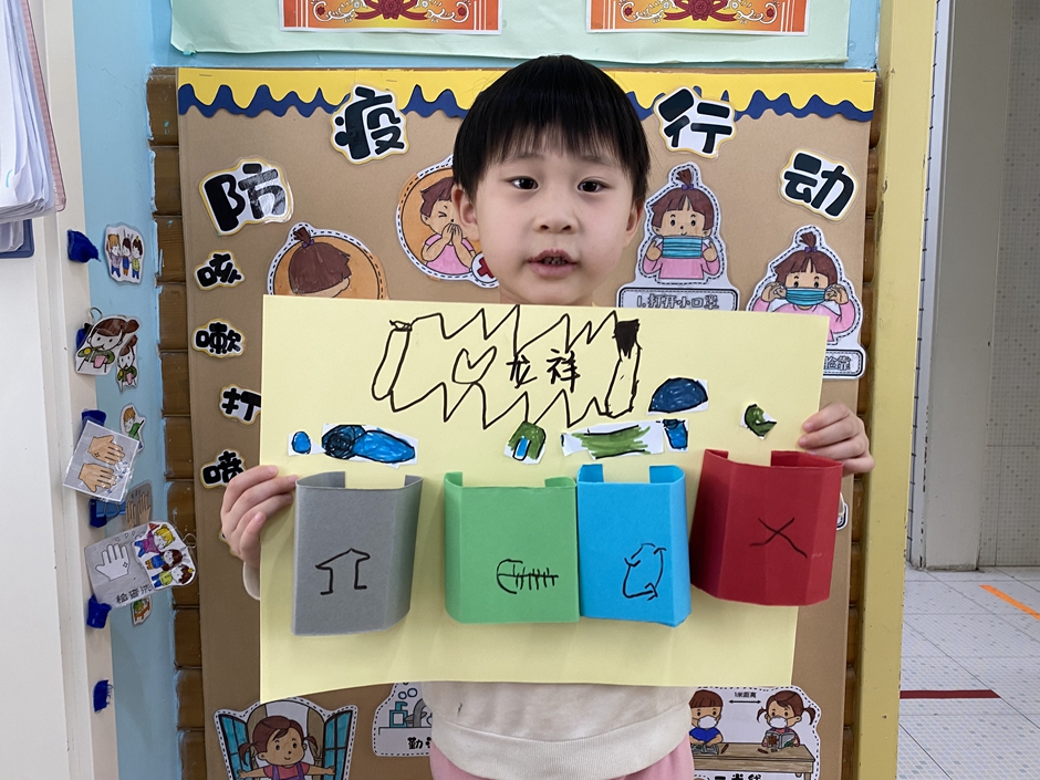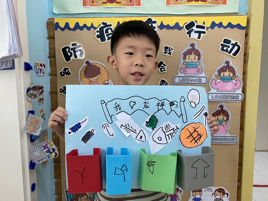今天我们制作了垃圾分类的作品。保护环境,垃圾分类,从我做起。