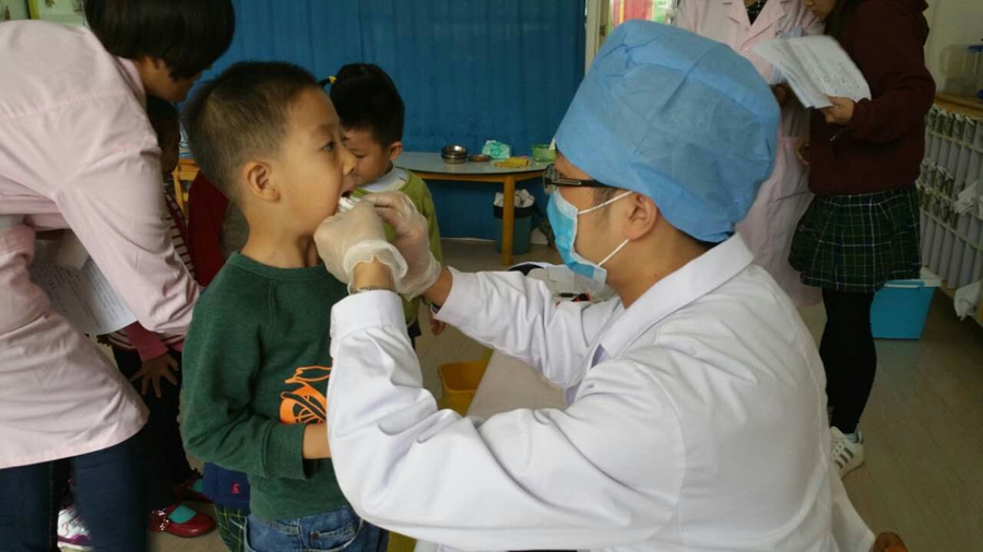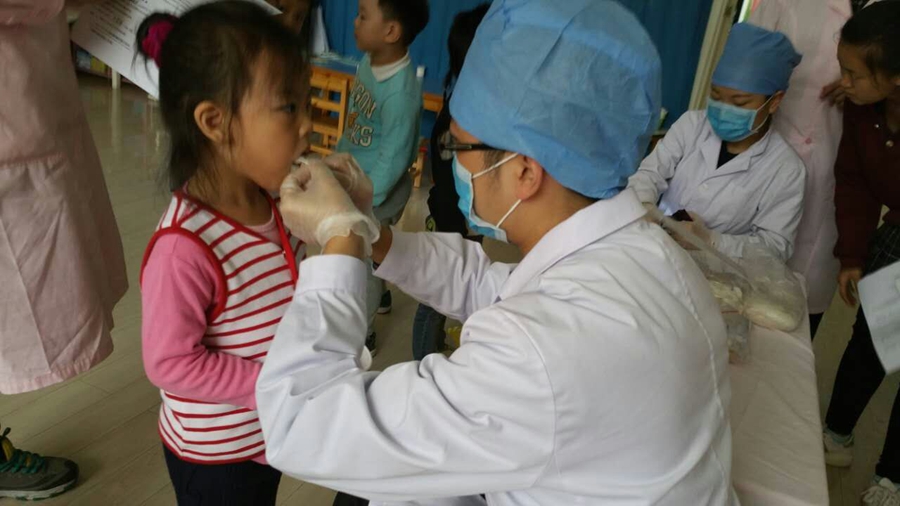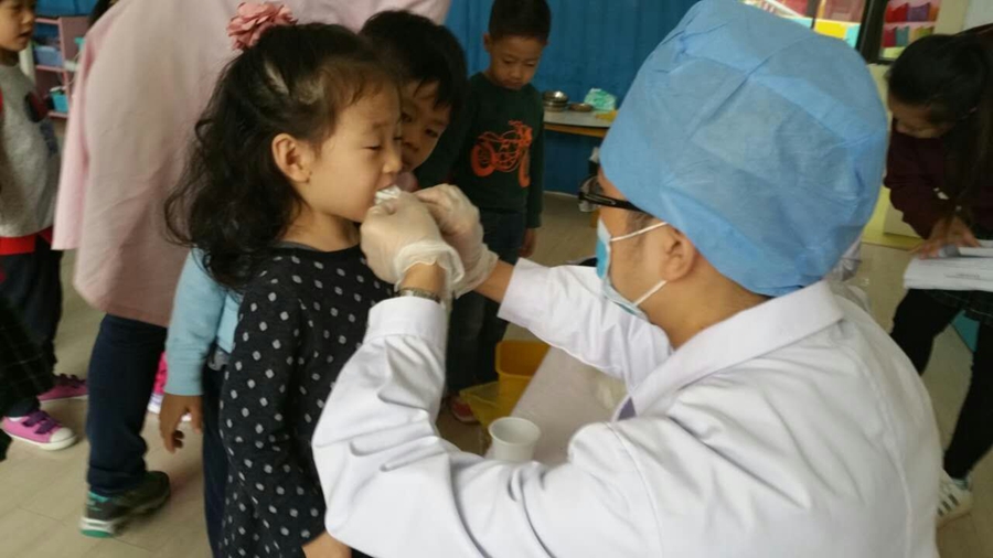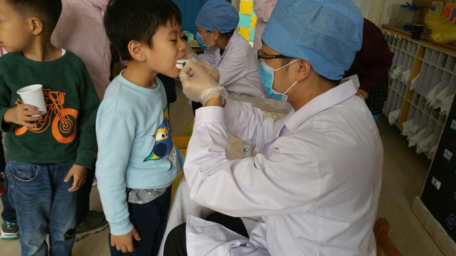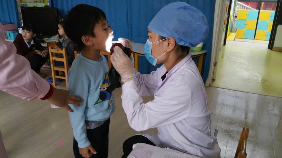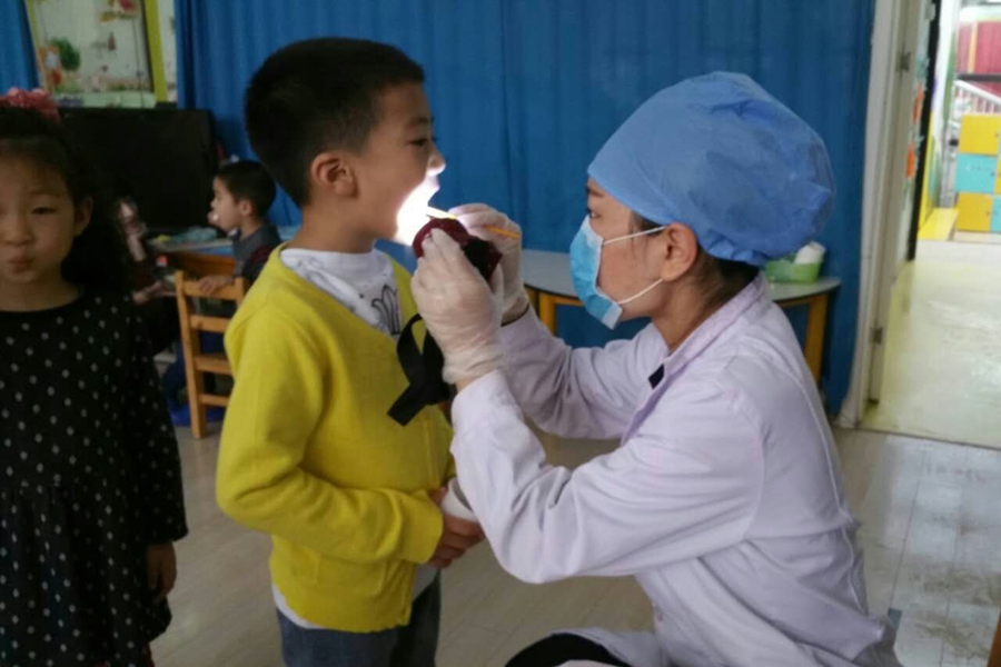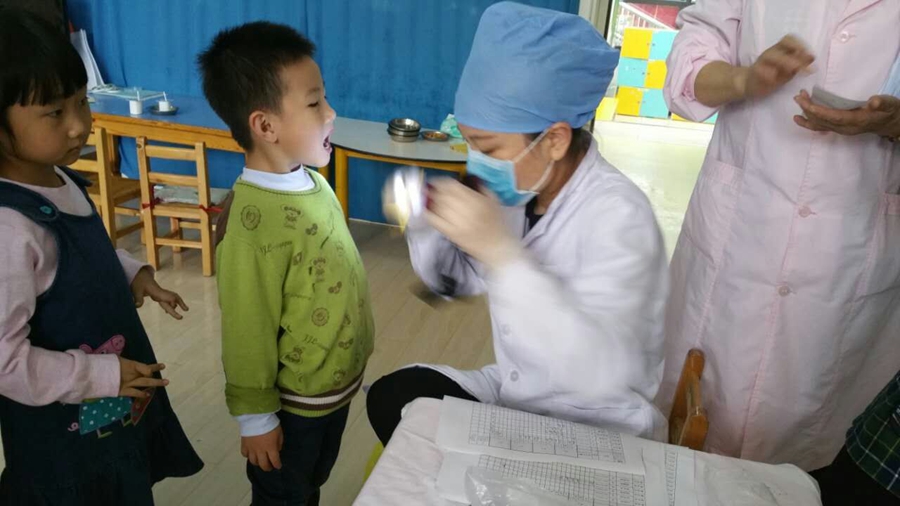 今天要为我的小牙齿做做功课了,要让它更健康,先让大夫阿姨看看吧
