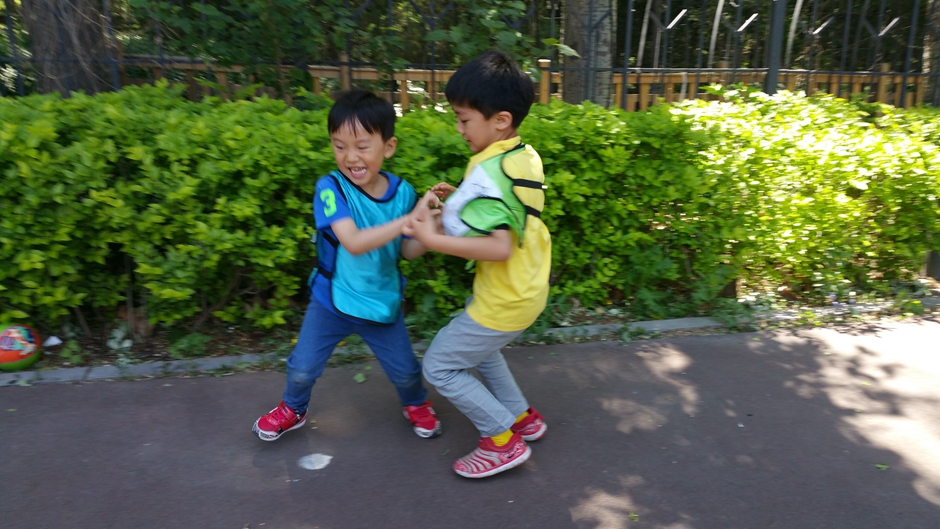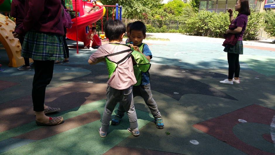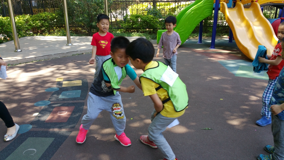 今天上午户外时间宝贝们进行了撕名牌游戏,他们为了胜利想各种办法去撕掉对方的名牌。