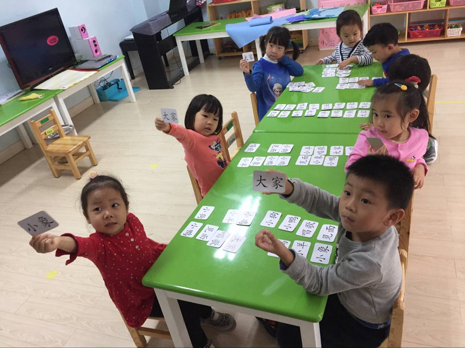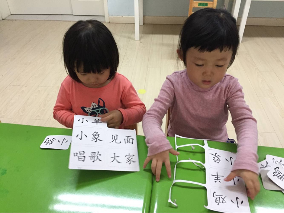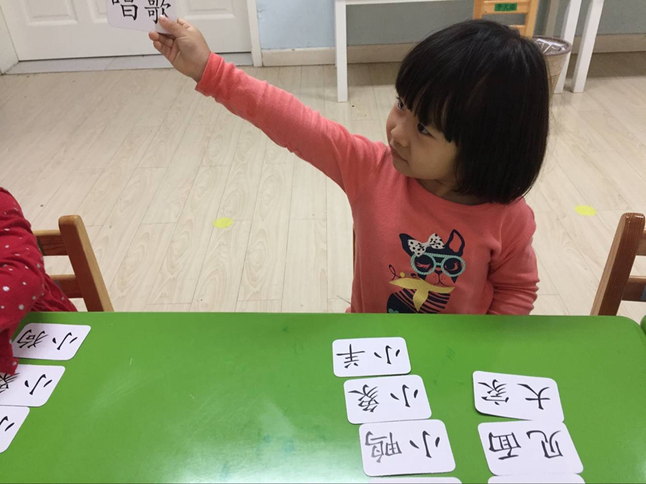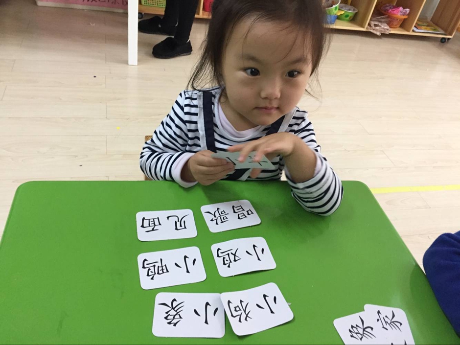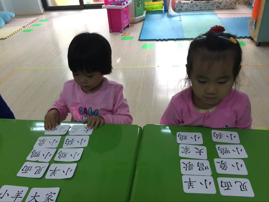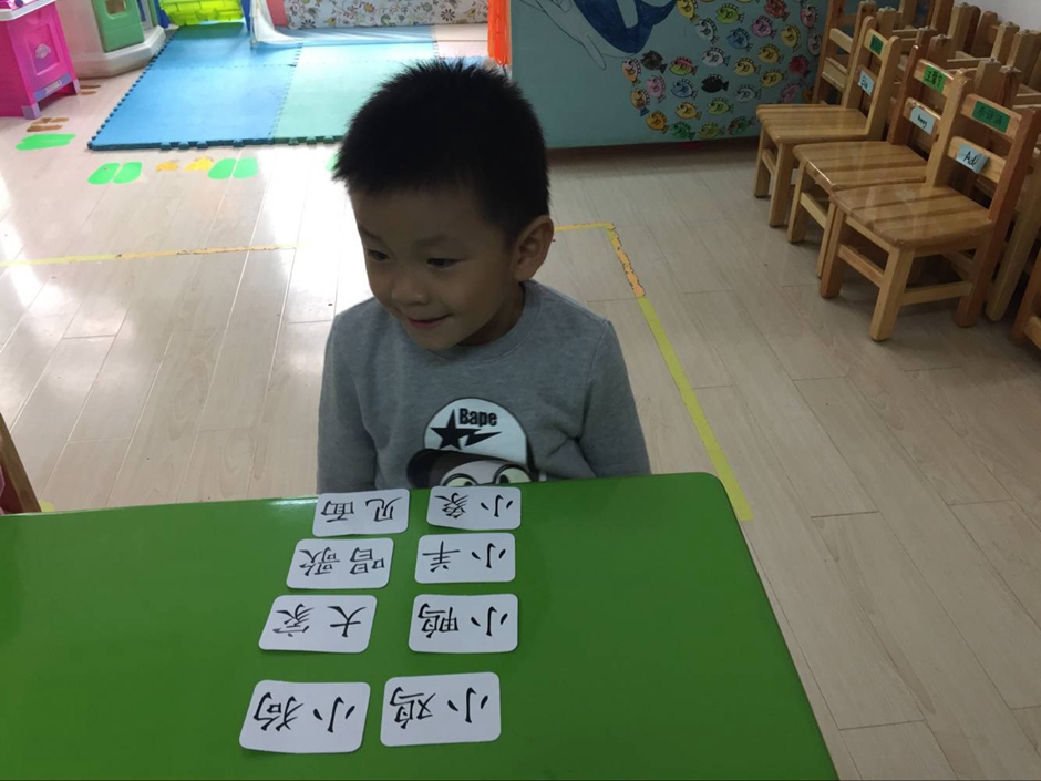 看我们的小朋友正在按照老师的要求有秩序的摆放卡片,为你们点赞!