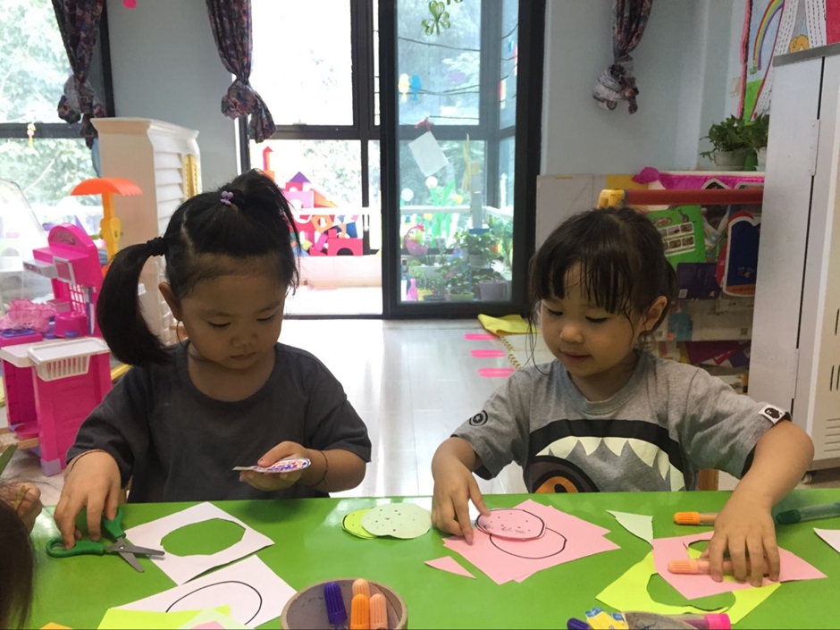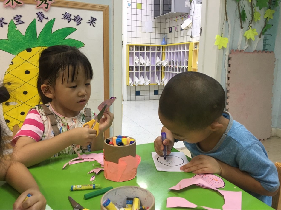 今天我们来做夹馅面包吧,好久都没做吃的了,小朋友们也是兴趣满满,让我们先把面包片的形状剪下来,在上面抹上好吃的“蓝莓酱、草莓酱”或者其他的小朋友们自己喜欢吃的。