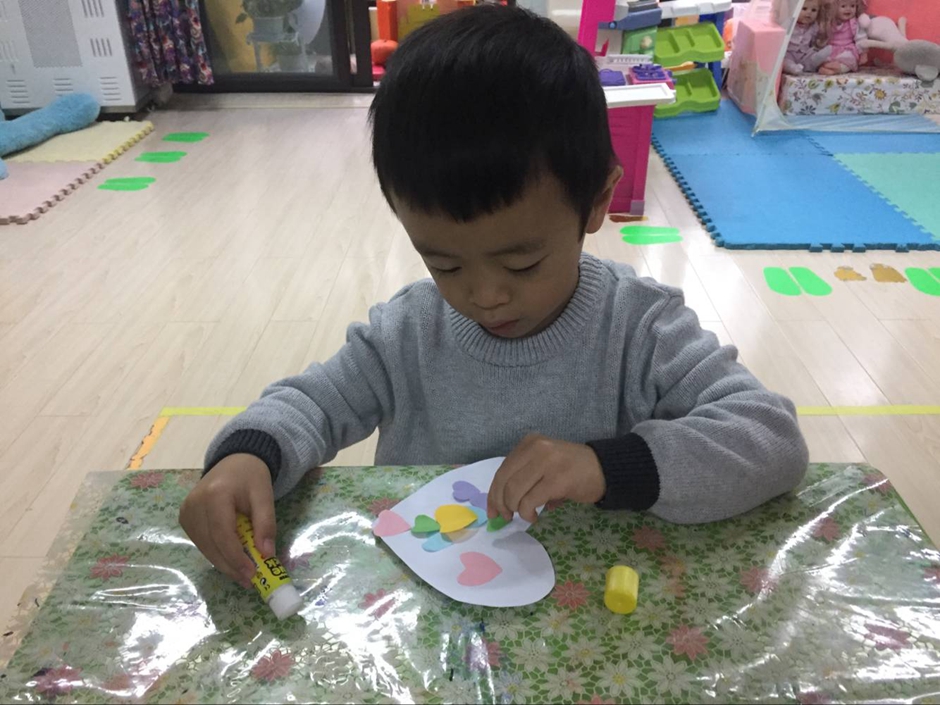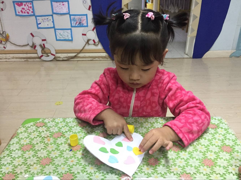 看小朋友用自己的巧手装饰的爱心贺卡,看着他们嘴角的微笑,感觉整个教室都冒着粉红泡泡,那么的温馨!