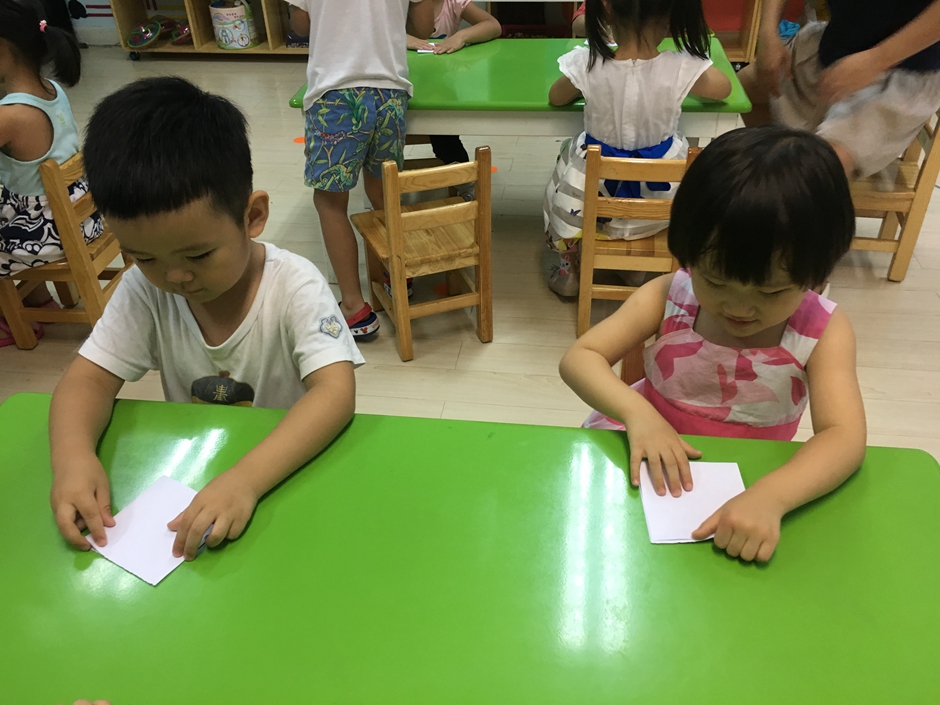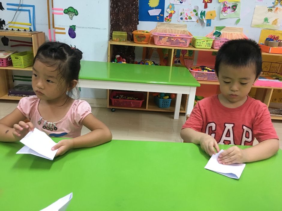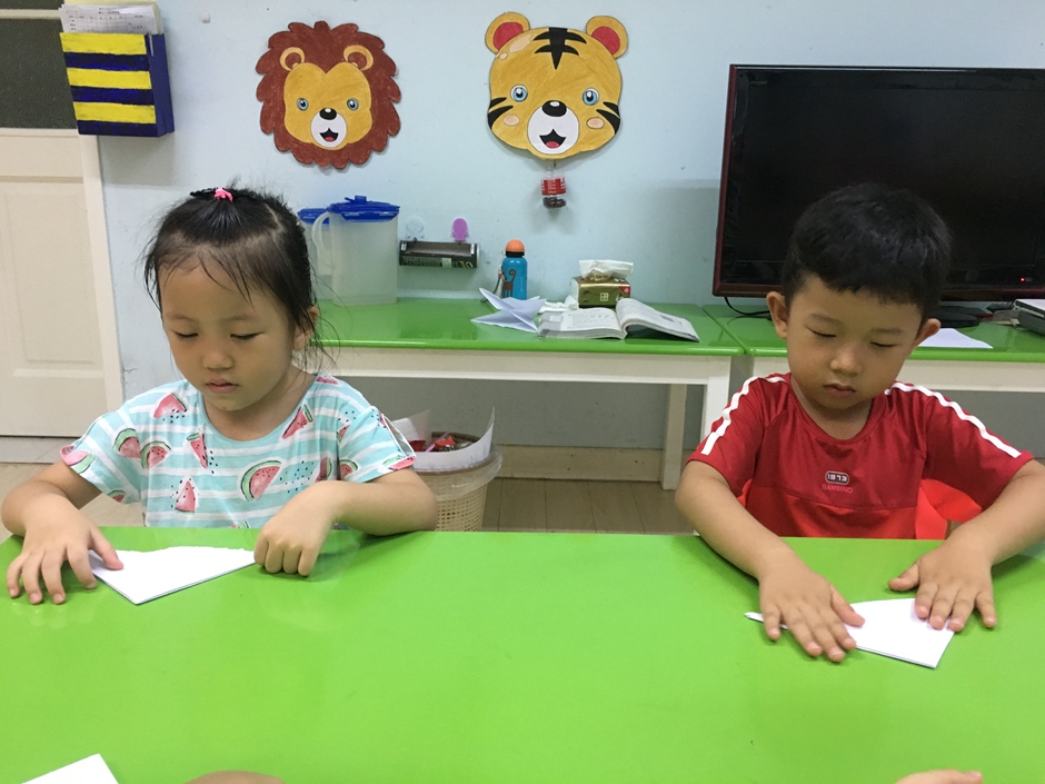 今天我们一起来折一个小动物,那就是热带鱼。小朋友们兴致很高,都在认真跟着老师说的每一步,看到一些会折的小朋友还在耐心的教给不会的小朋友,小朋友们好棒啊!