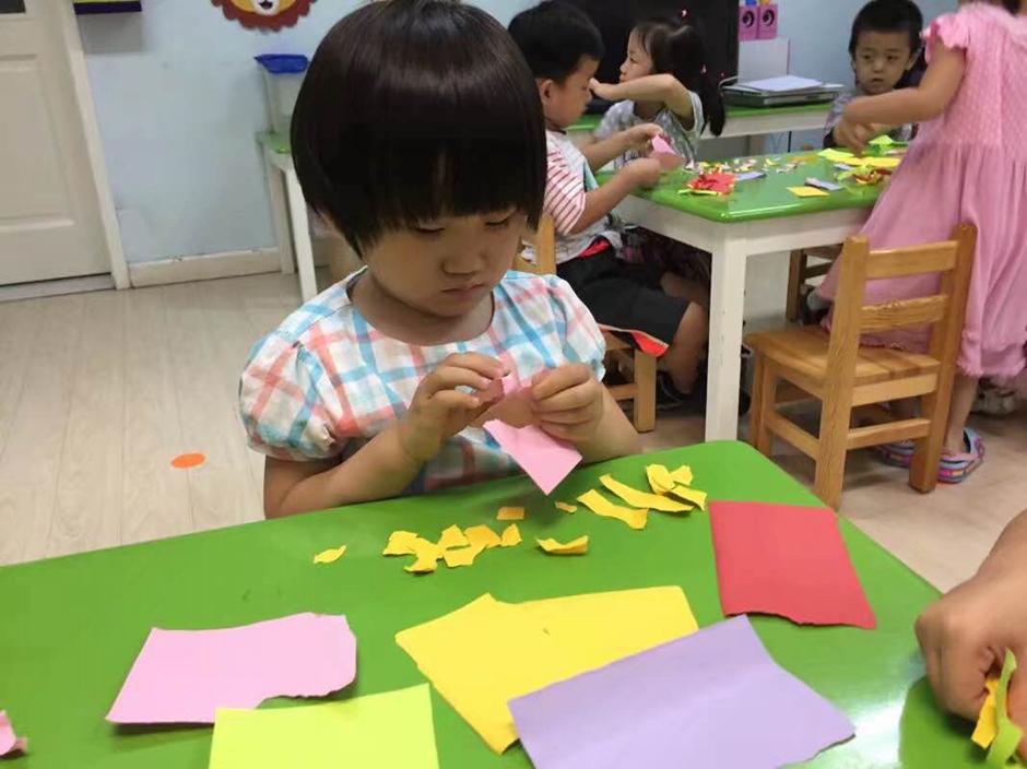小朋友们都见过过年放的礼花,特别的漂亮,所以小朋友要打算自己做礼花,小朋友们先把漂亮的纸撕成长条,作为礼花散发出的漂亮的光芒。