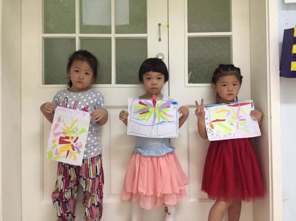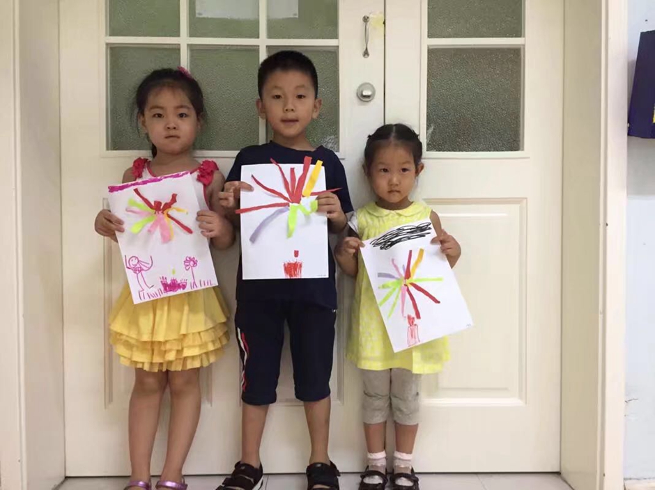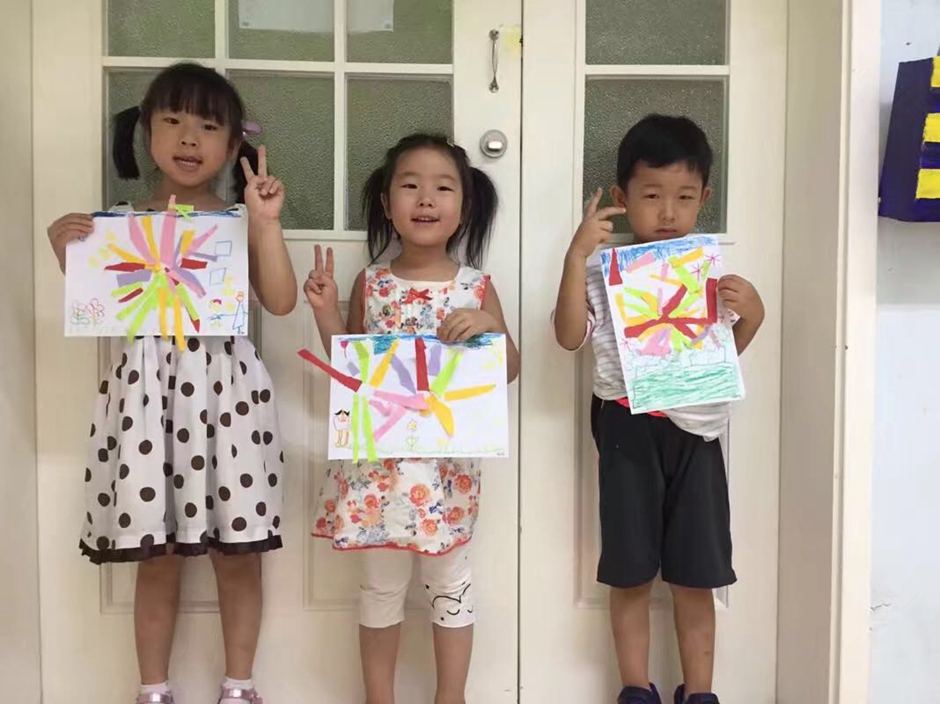 礼花做成了,你们觉得漂亮吗?每个小朋友的作品都独树一帜,也因为有小朋友的用心让它们的礼花绽放的更加灿烂。