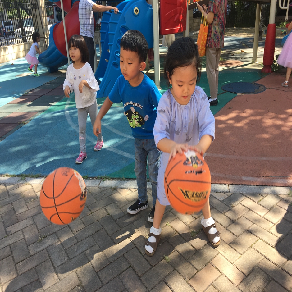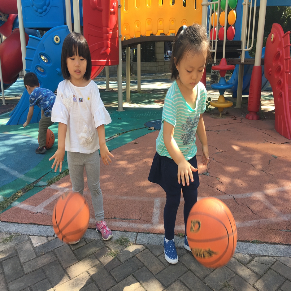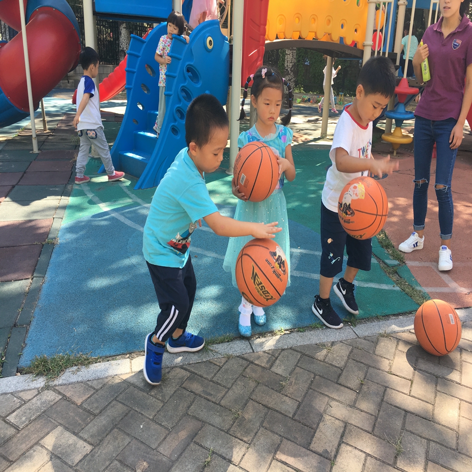 今天天气真好,小朋友们当然也要出来运动啦,今天我们要练习拍球,看我们的小朋友拍的多认真啊,有的能连续拍好几十个呢,看我们玩的多开心啊!一起来加入我们的球队吧!