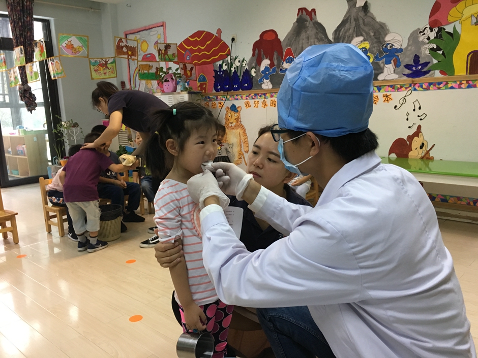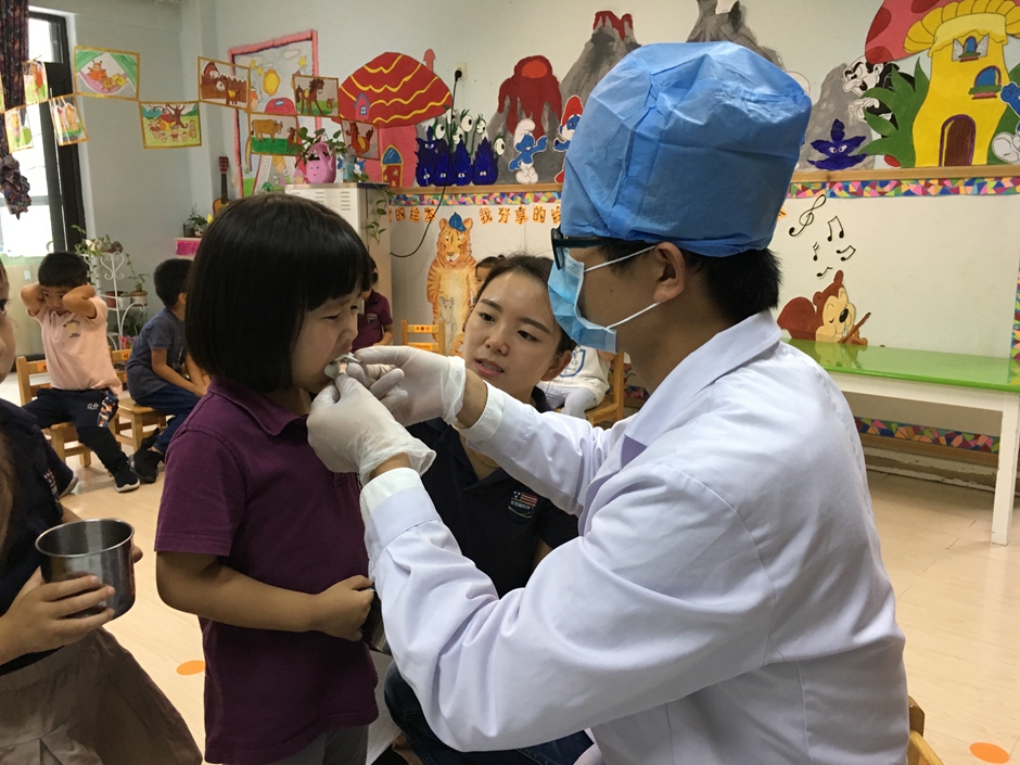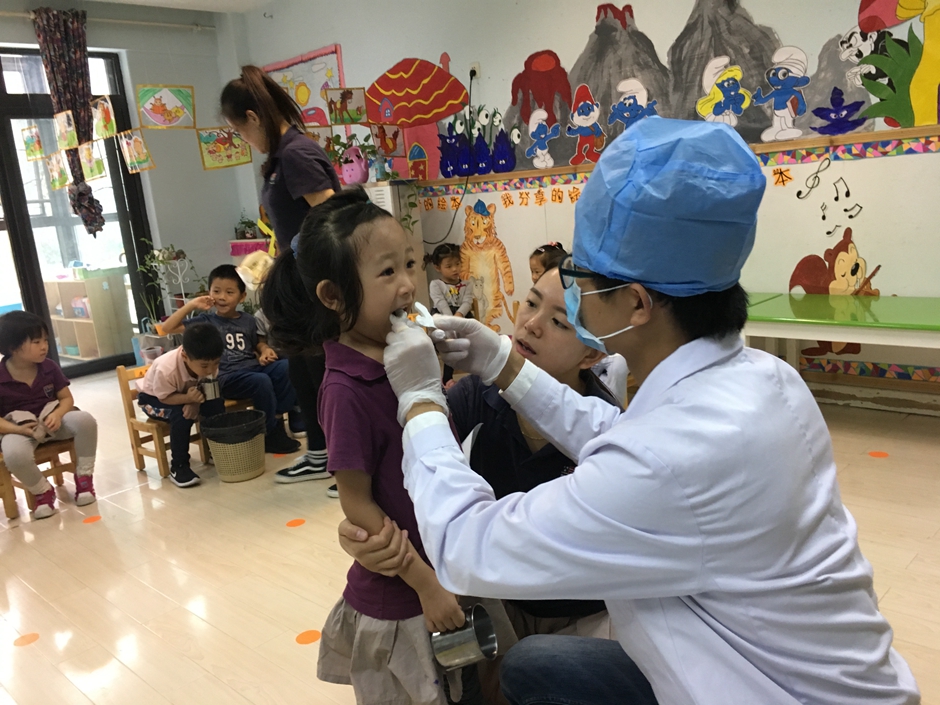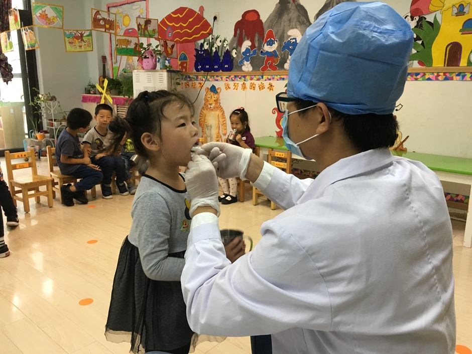 检查完牙齿,开始做涂氟,小朋友们乖乖的张大嘴巴配合叔叔,看我们的小朋友们多棒啊!
