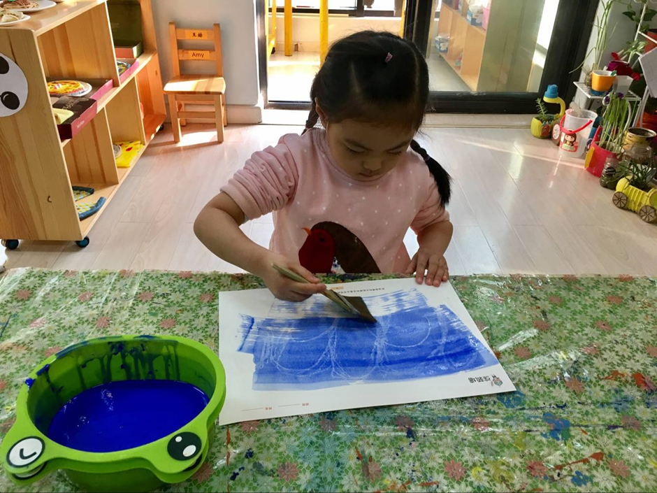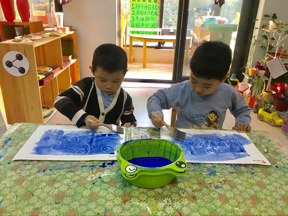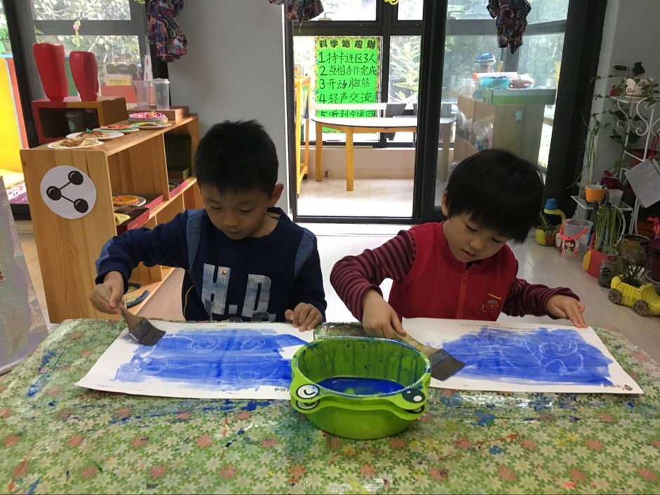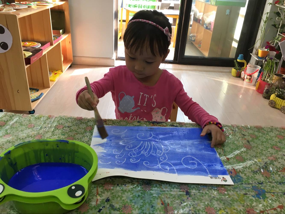 为什么说它是神奇的画呢?因为孩子们首先用白色的蜡笔在白纸上画画,可是画完了却什么也看不到啊?这可怎么办呢?见证奇迹的时刻马上就要到了,在刚刚画完的纸上刷上一层颜料,哇,奇迹发生了,一朵朵浪花就突然出现了,是不是特别神奇啊。这就是油水分离画!
