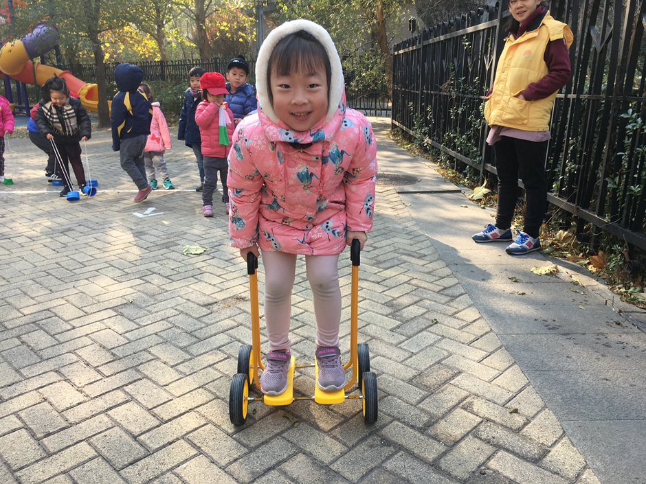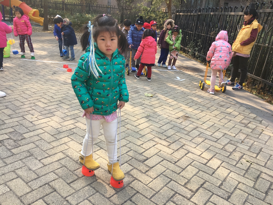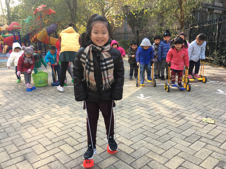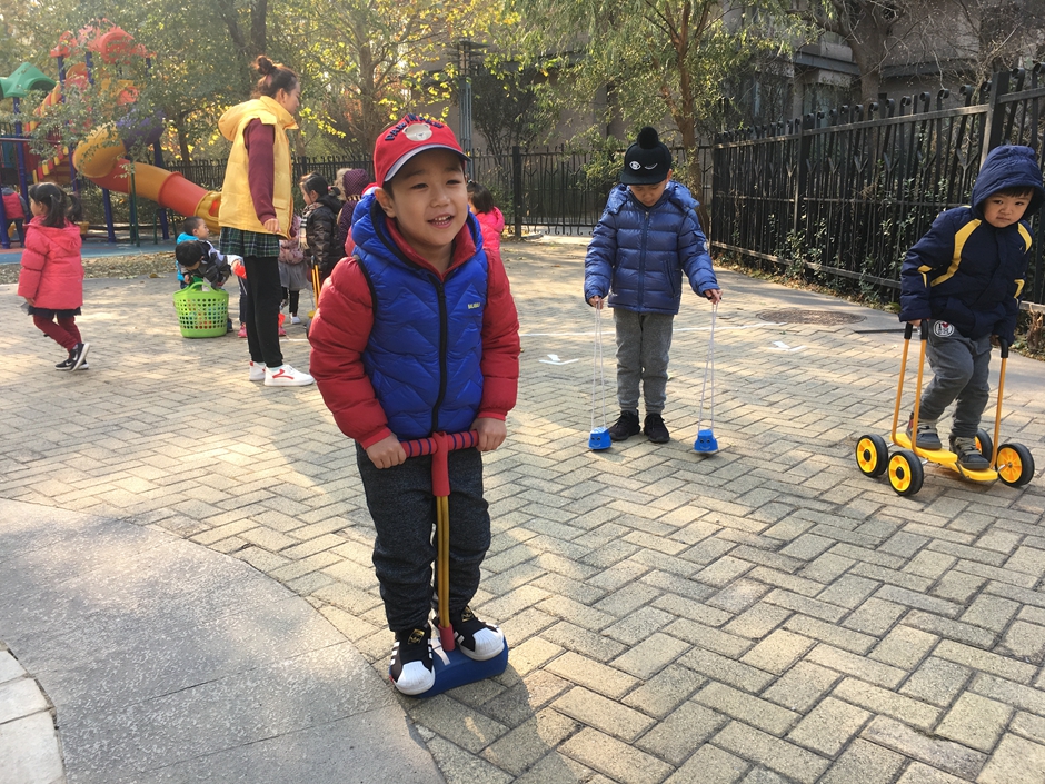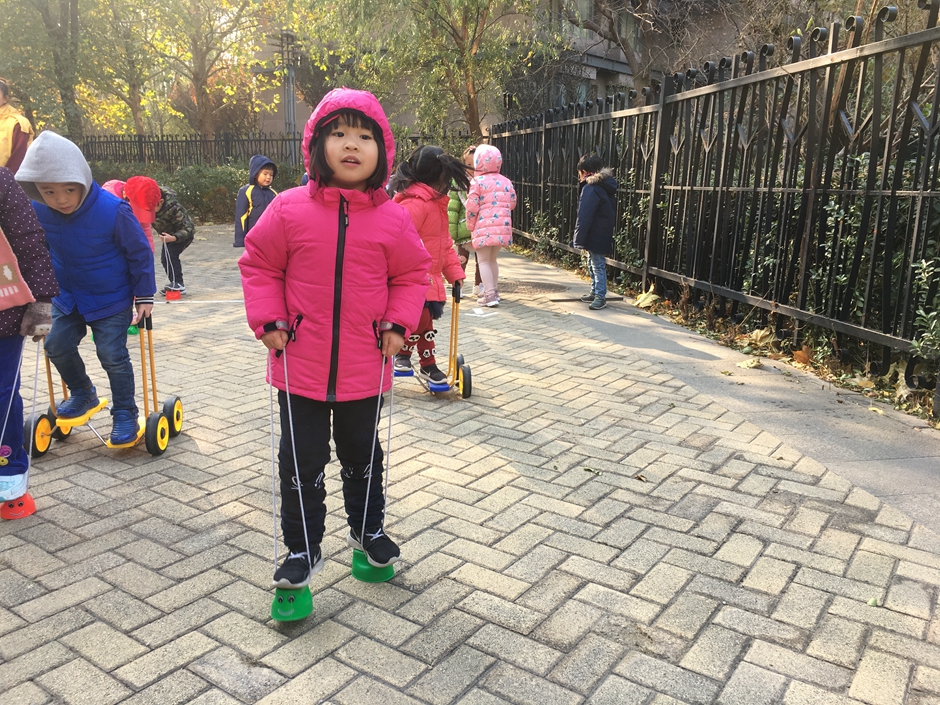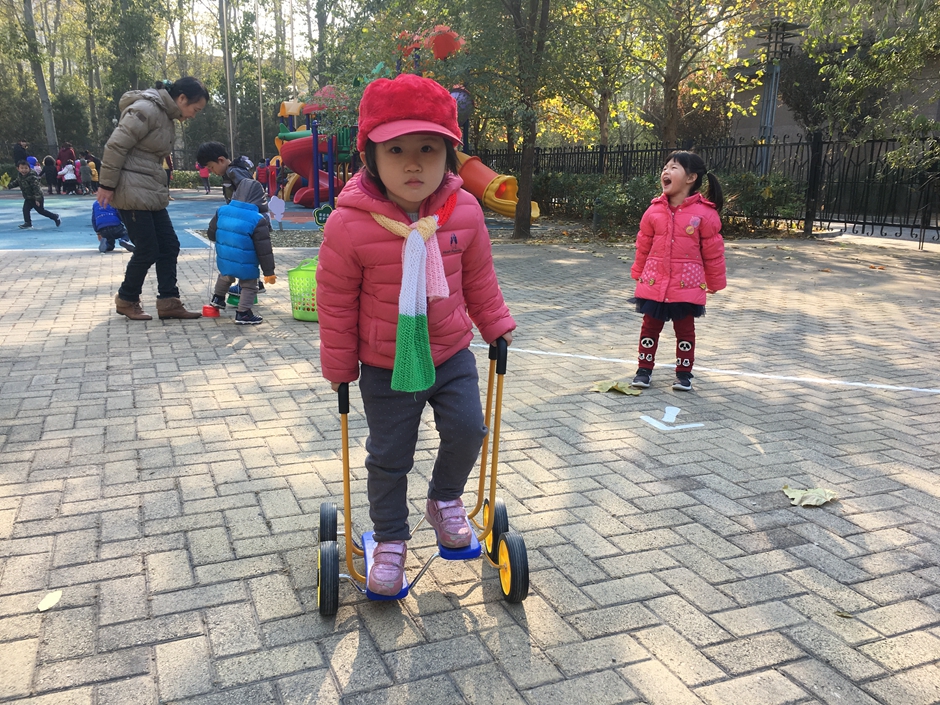 这些小朋友选择了骑脚踏车和拍球,看着小朋友们的一张张笑脸在冬日的阳光下格外温暖。