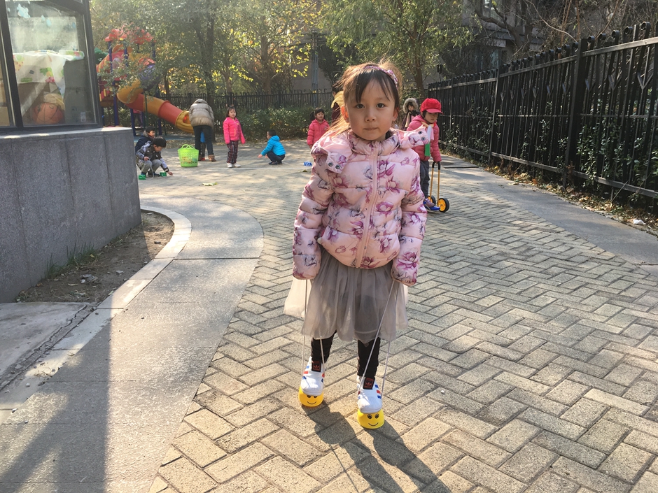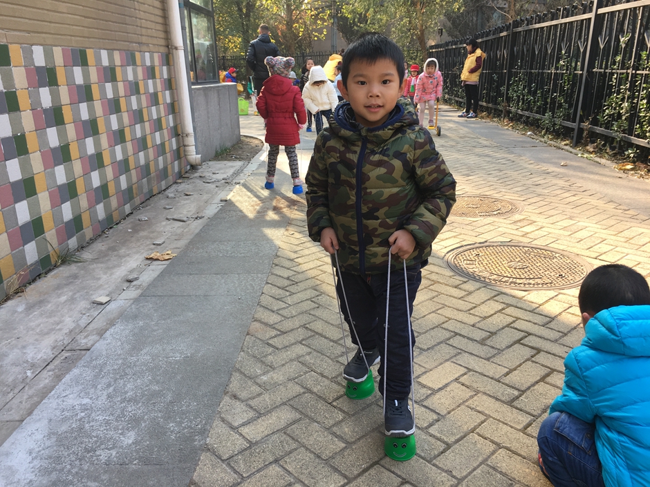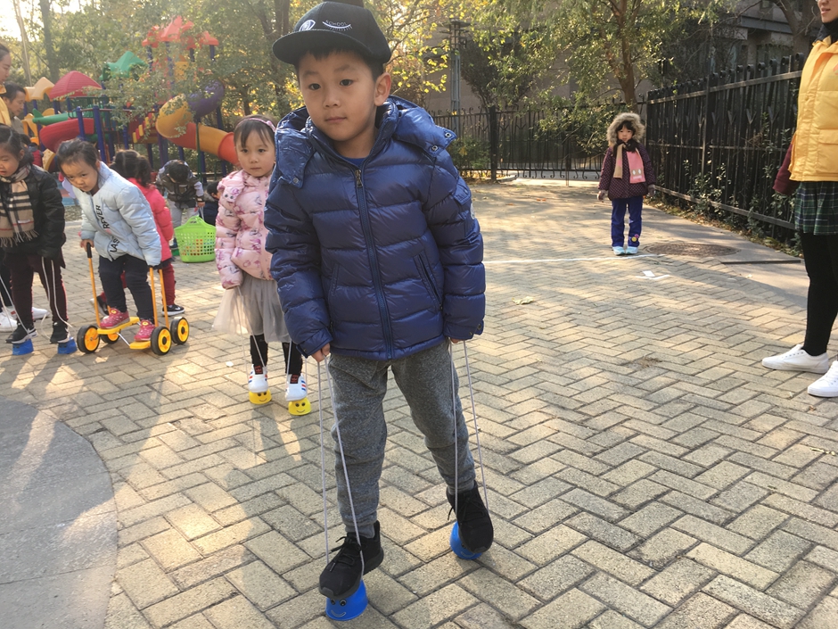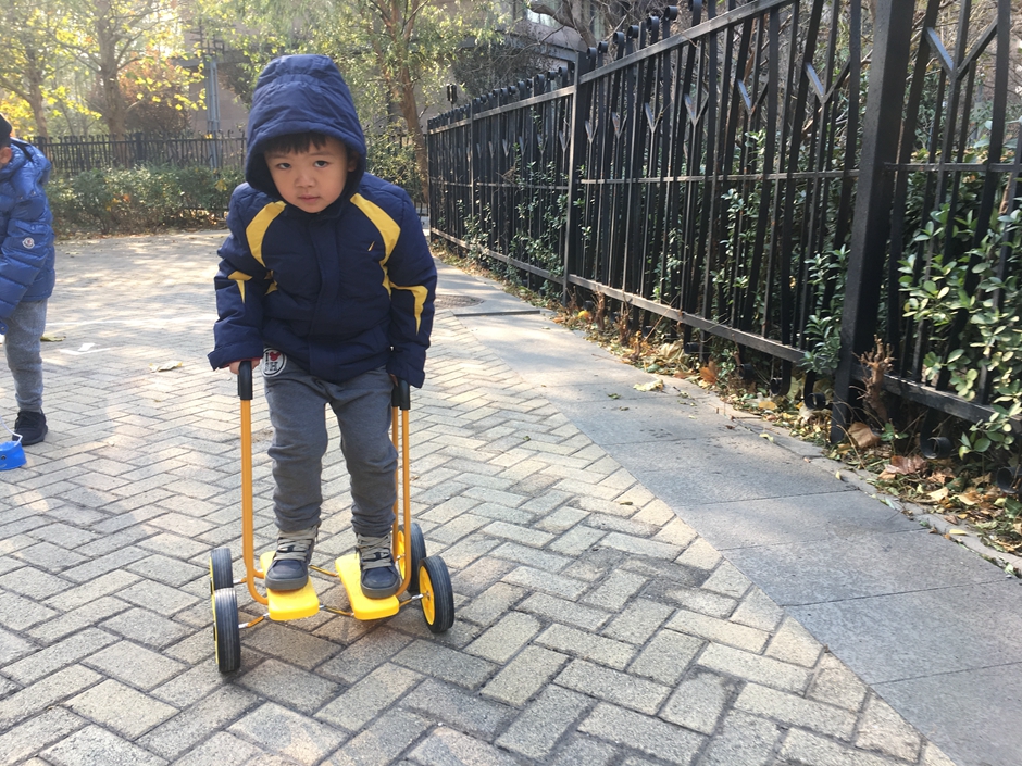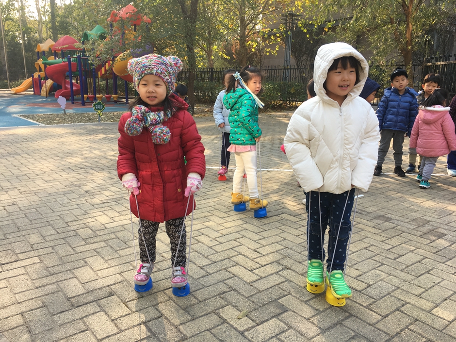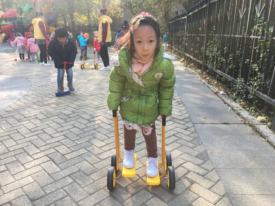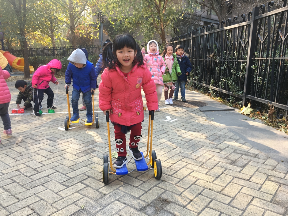 这些小朋友选择了骑脚踏车和拍球,看着小朋友们的一张张笑脸在冬日的阳光下格外温暖。