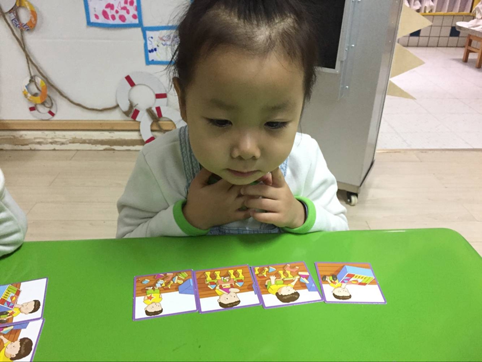 按照故事顺序摆放卡片比较难,但孩子们的努力老师看见了,加油孩子们!