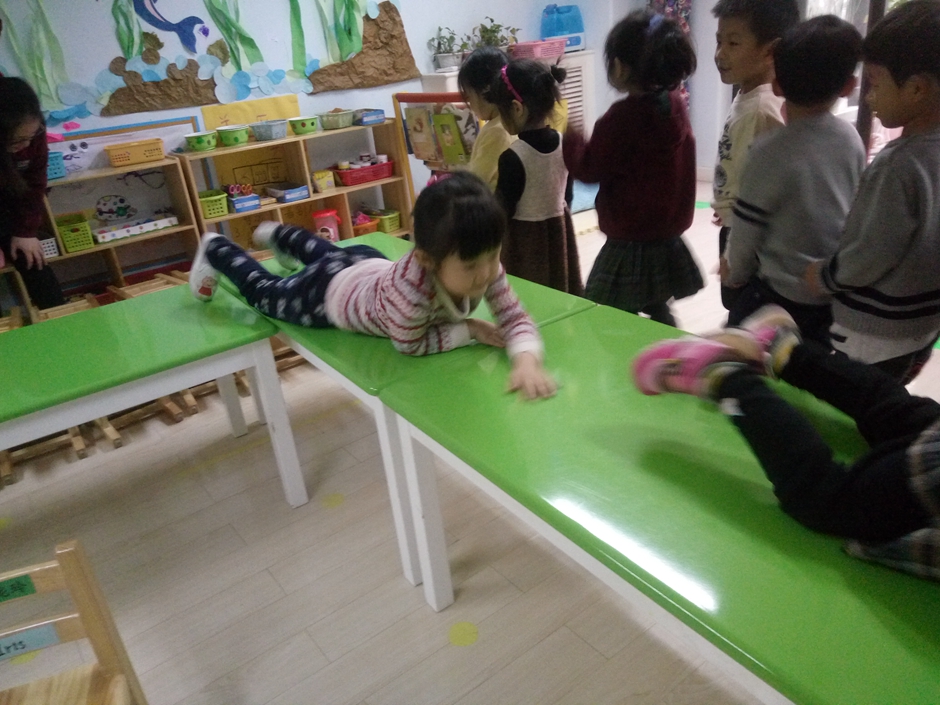 第四关:钻爬过桌子。