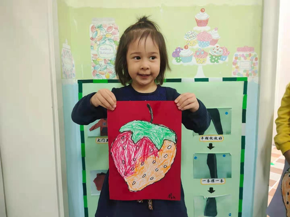 今天我们画了草莓,给他装饰了漂亮的颜色