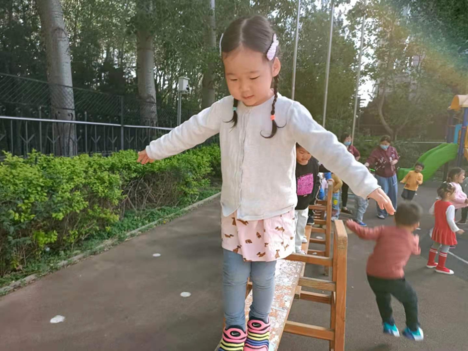 今天我们走路平衡木,玩的好累啊,我们要去喝水了