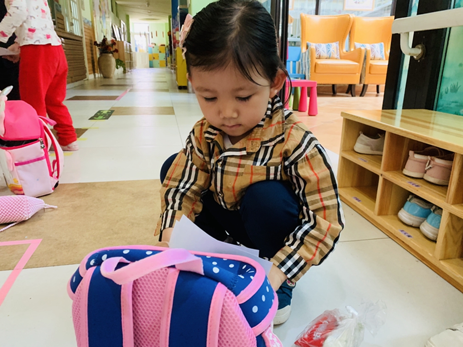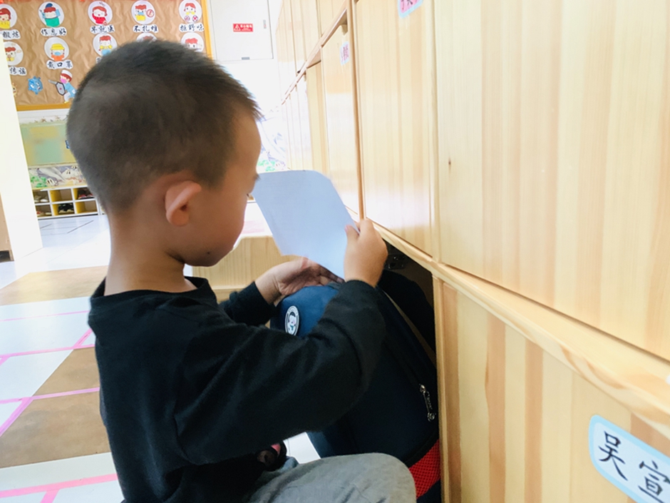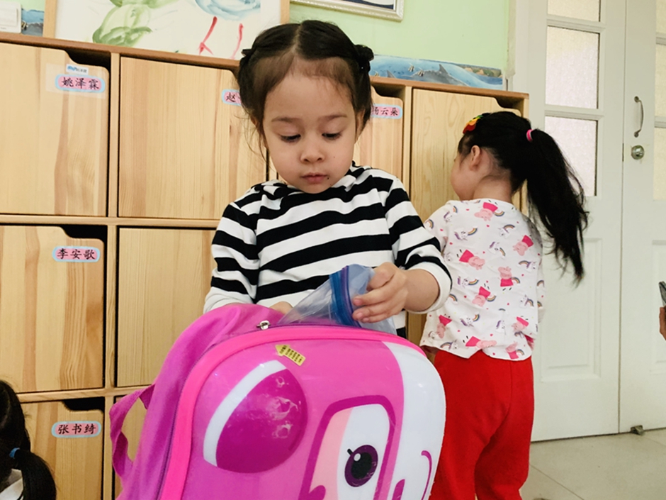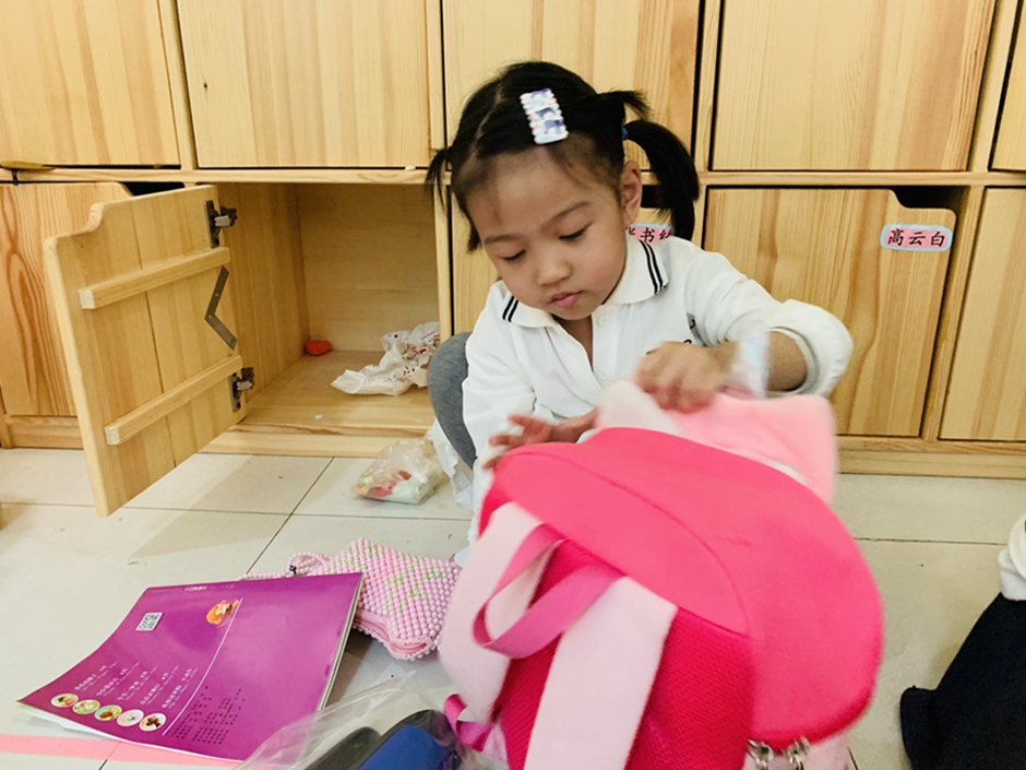 今天周五了,要收拾自己的小书包准备回家喽,看看我们收拾的多棒。
