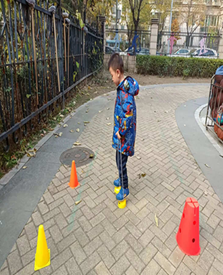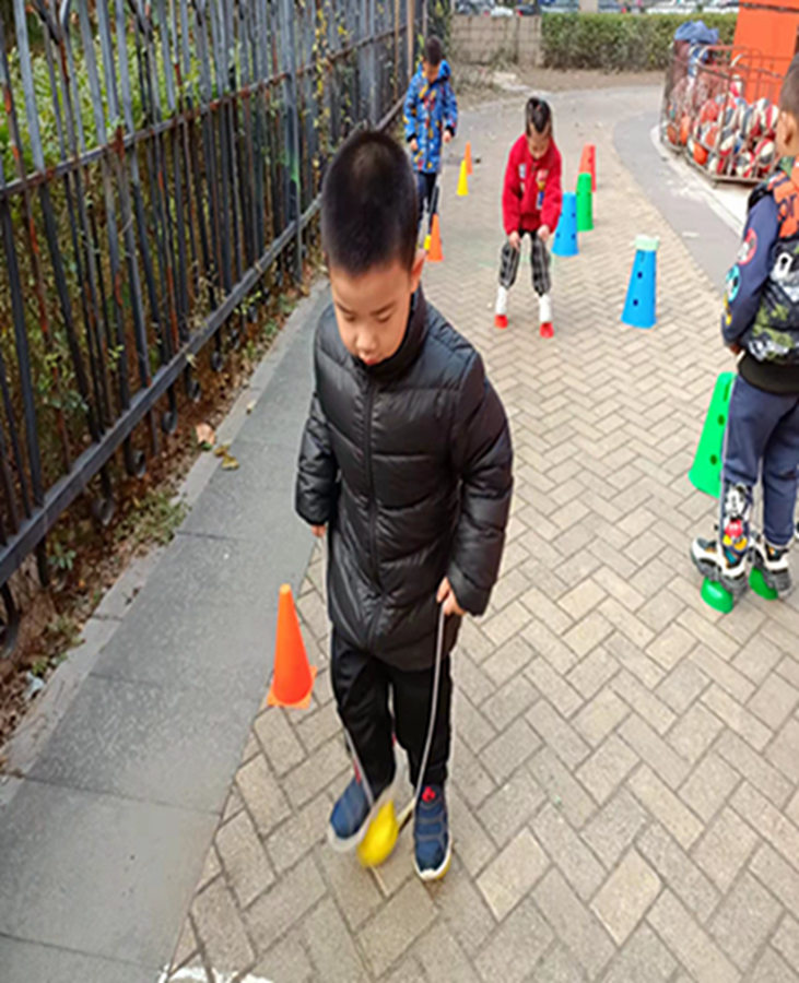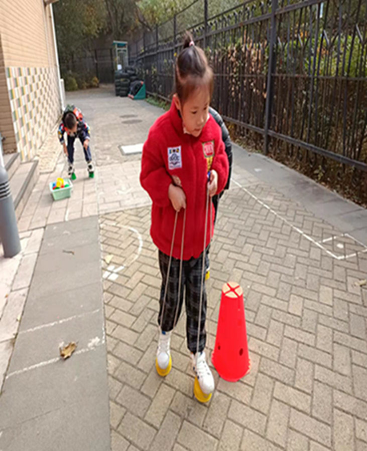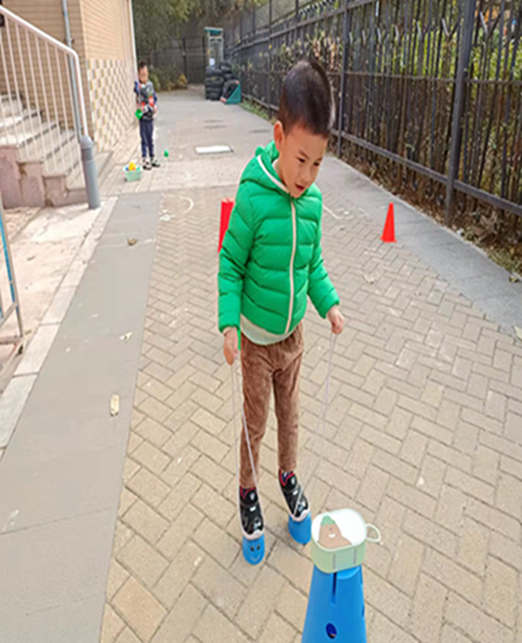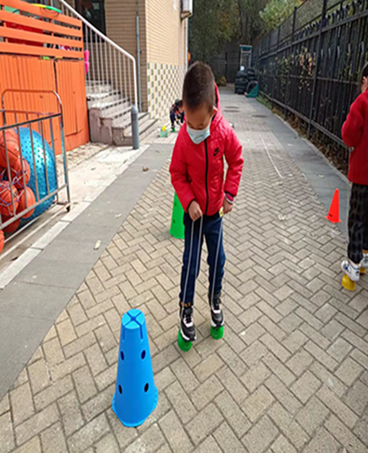 今天我们学习了踩高跷的小技巧,快来看看我们走的棒不棒
