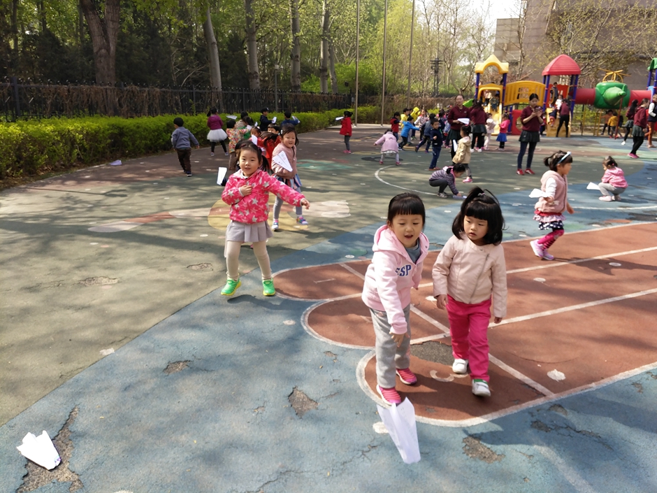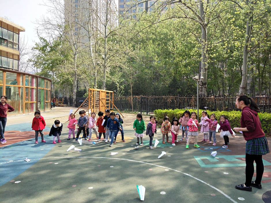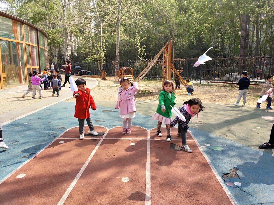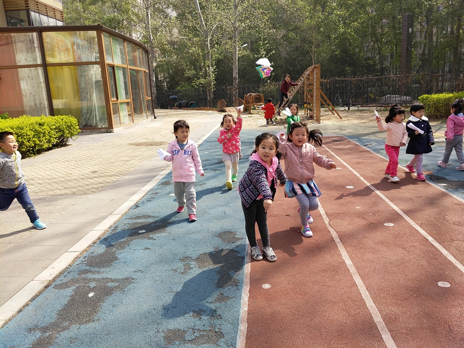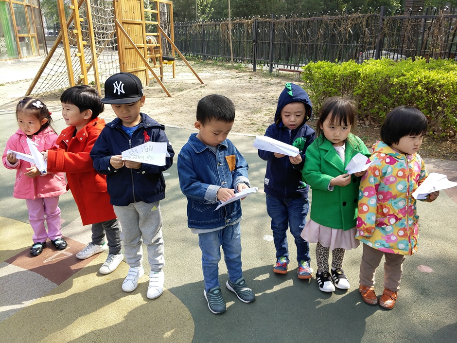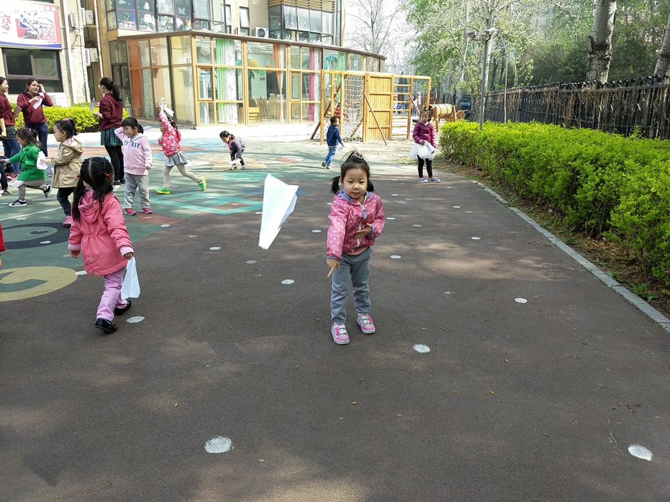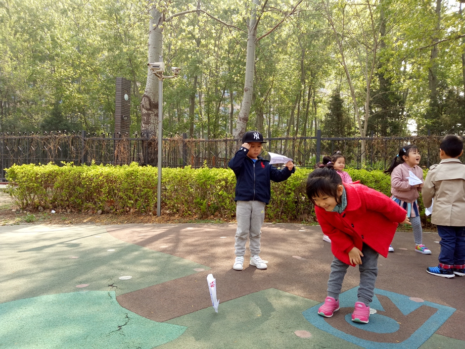 我们将纸飞机带到户外进行游戏,看看哪个小朋友能找到好办法,让纸飞机飞的更远!