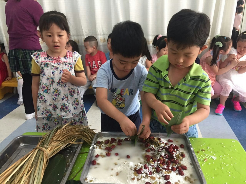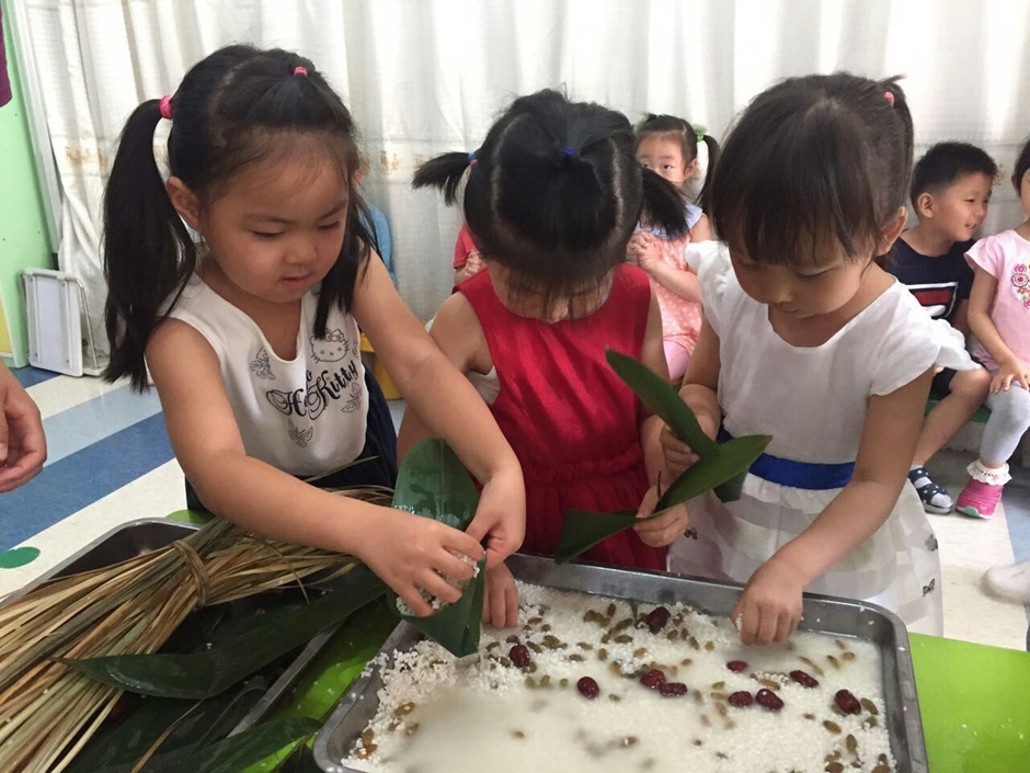 今天园里组织了包粽子的活动,孩子们听到后都跃跃欲试。