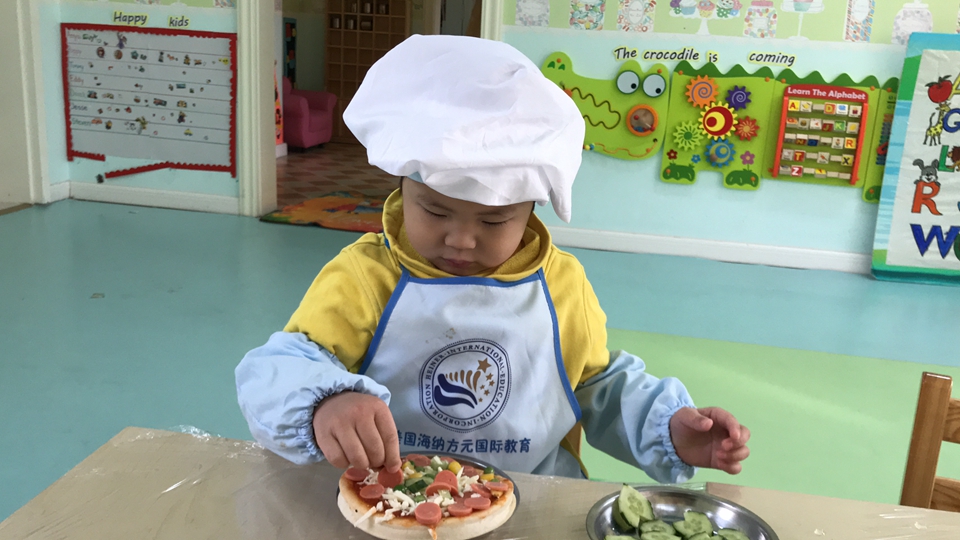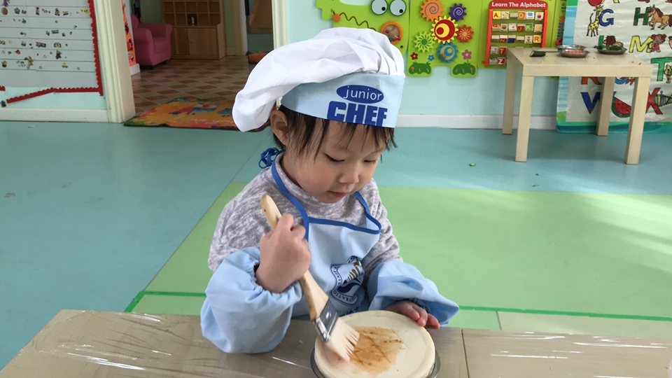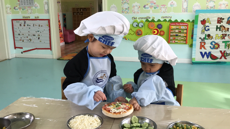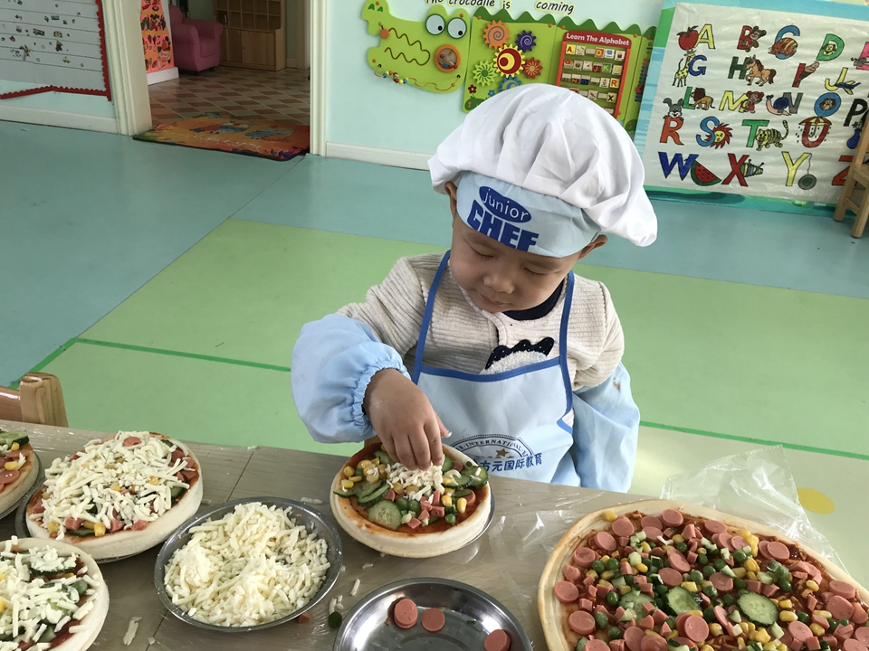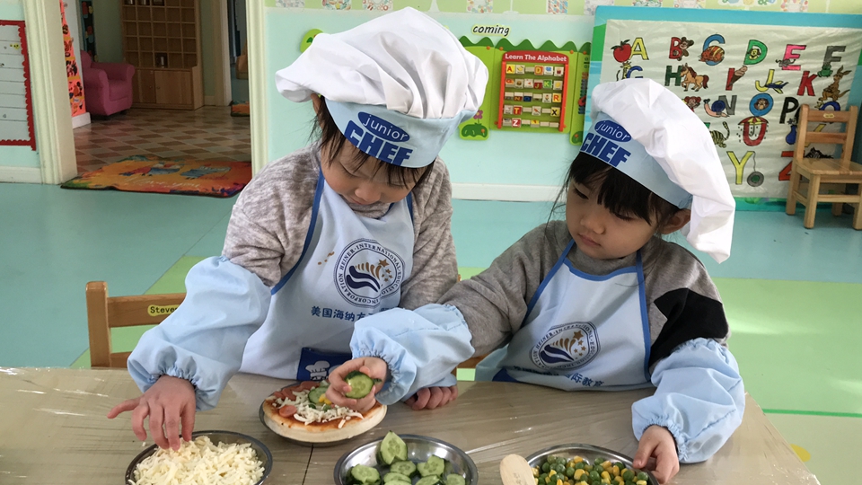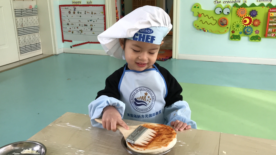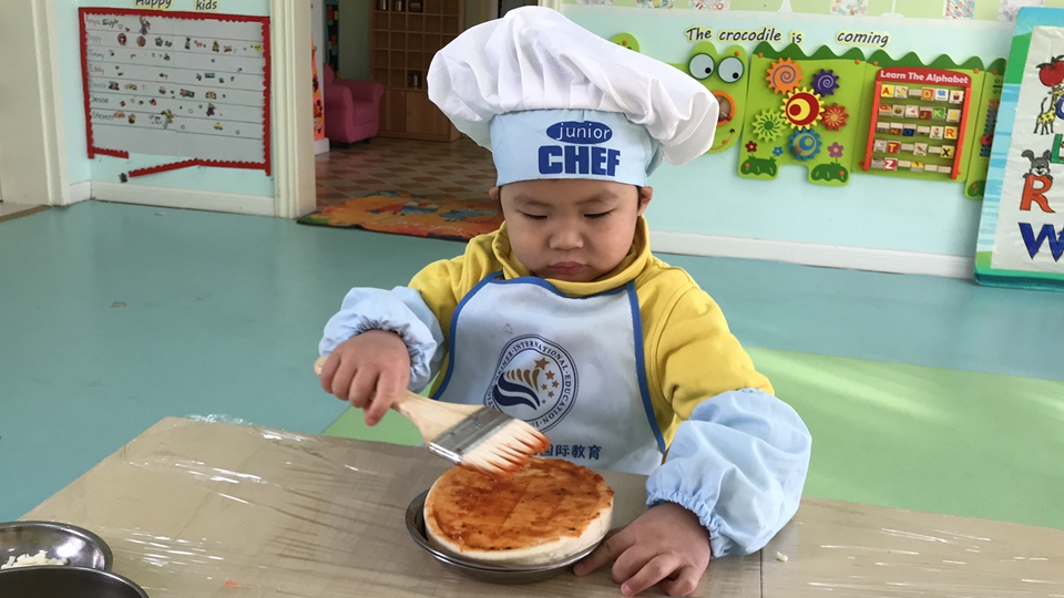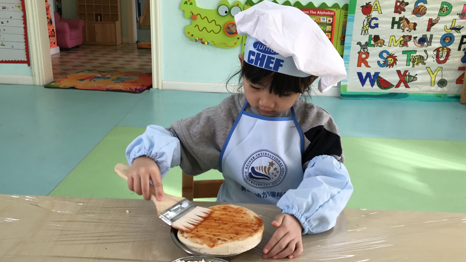 Cooking class is always a wonderful experience for the students. They get to make their little pizzas.