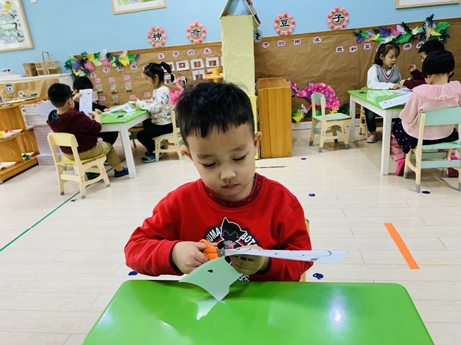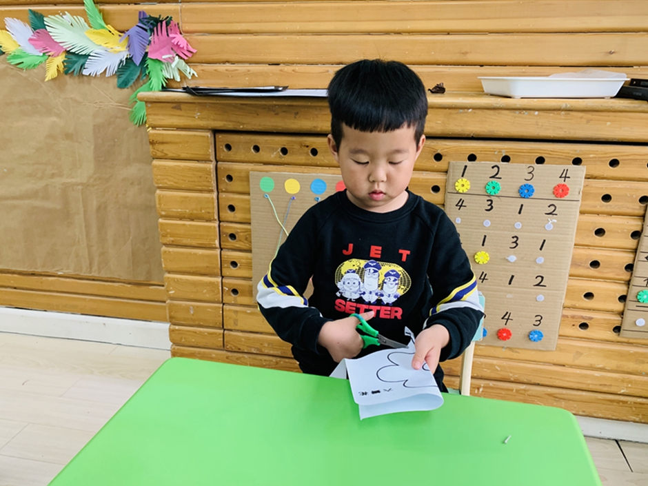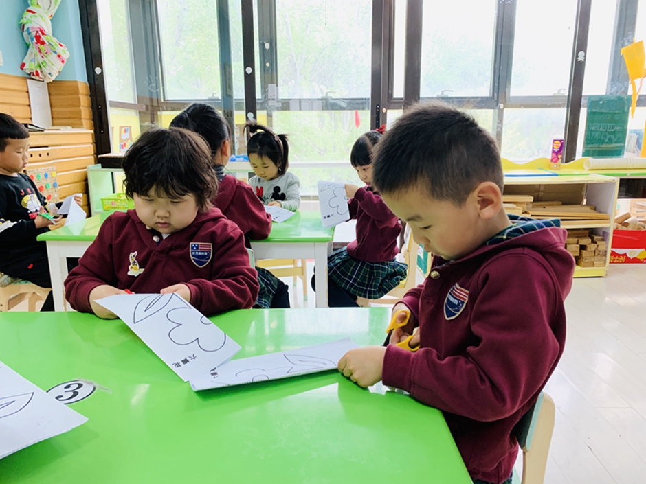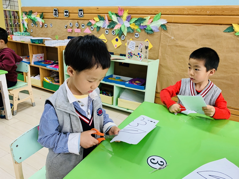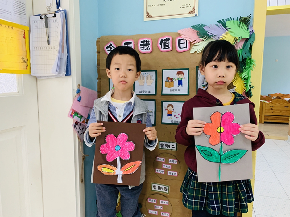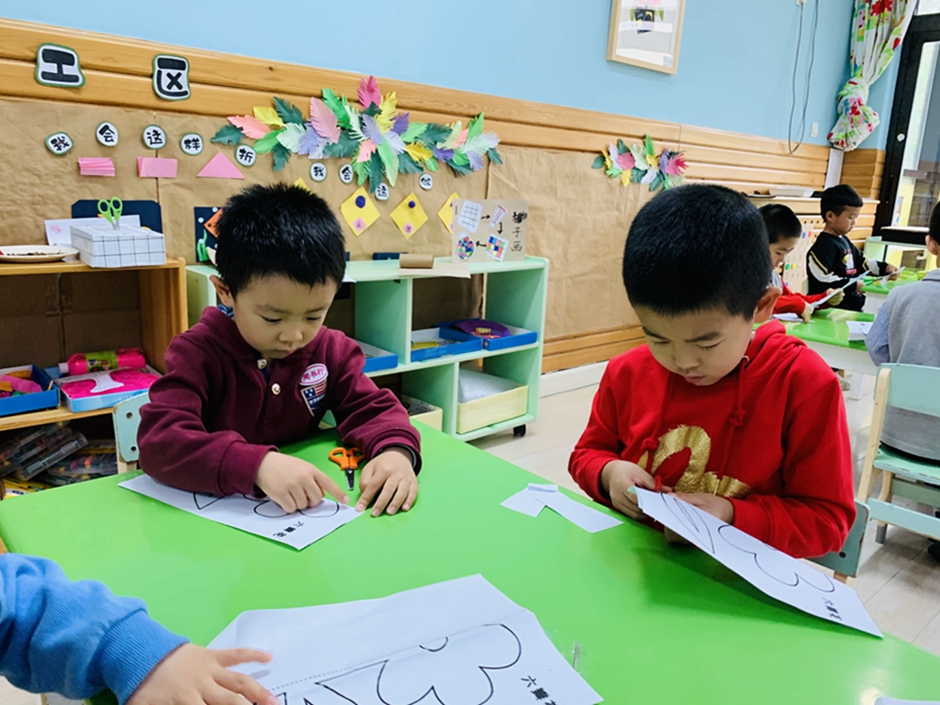 今天带小朋友们,使用剪刀对称剪,自己动手把小花剪下来,活动前老师讲解了使用剪刀的方法,以及安全使用剪刀。小朋友自己动手剪下来粘贴在卡纸上涂颜色,漂亮的小花就完成了。