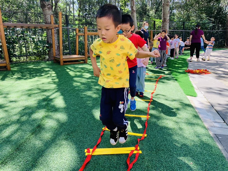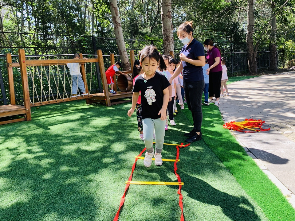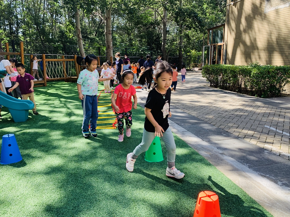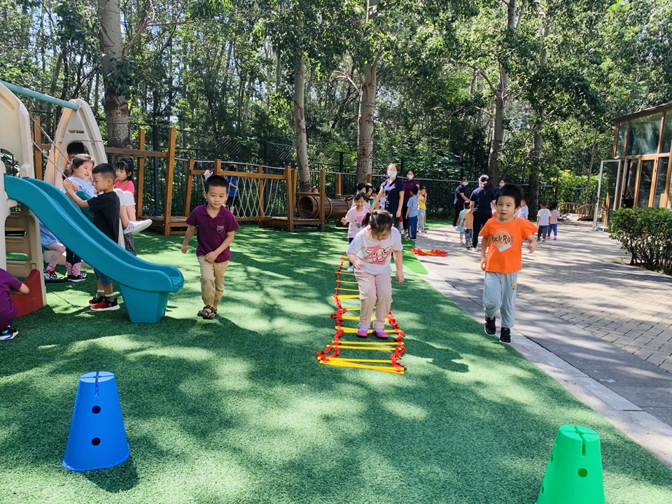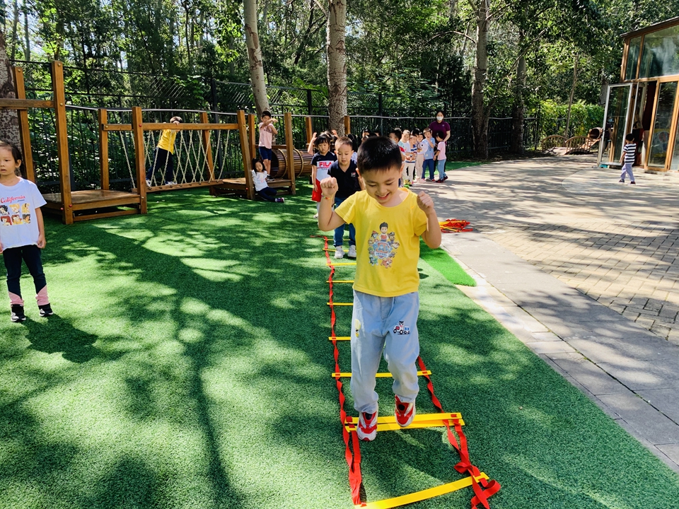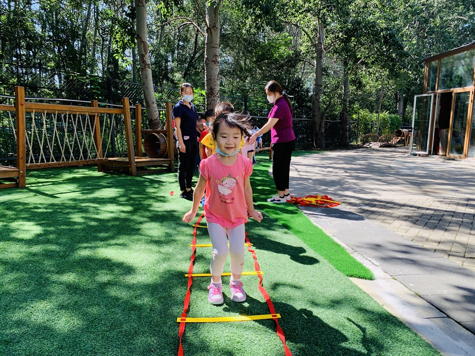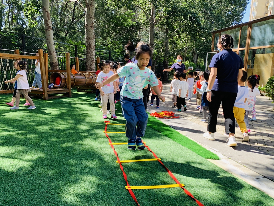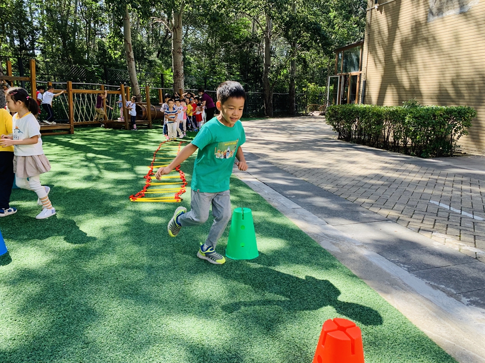 户外小朋友来到操场,我们自己动手整理器械,摆好,在老师的讲解下,我们遵守规则,双脚跳,和小朋友合作过山洞,一起锻炼小朋友的合作意识。