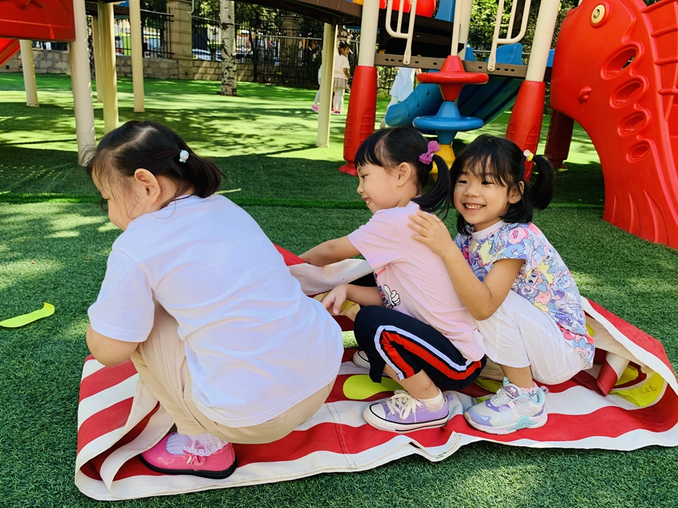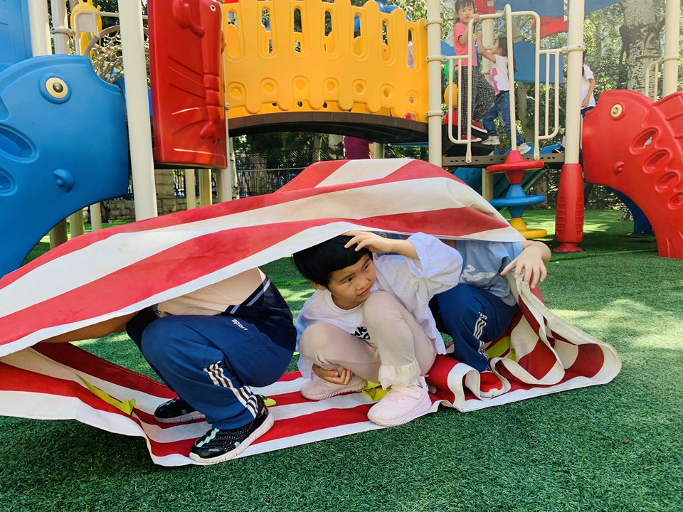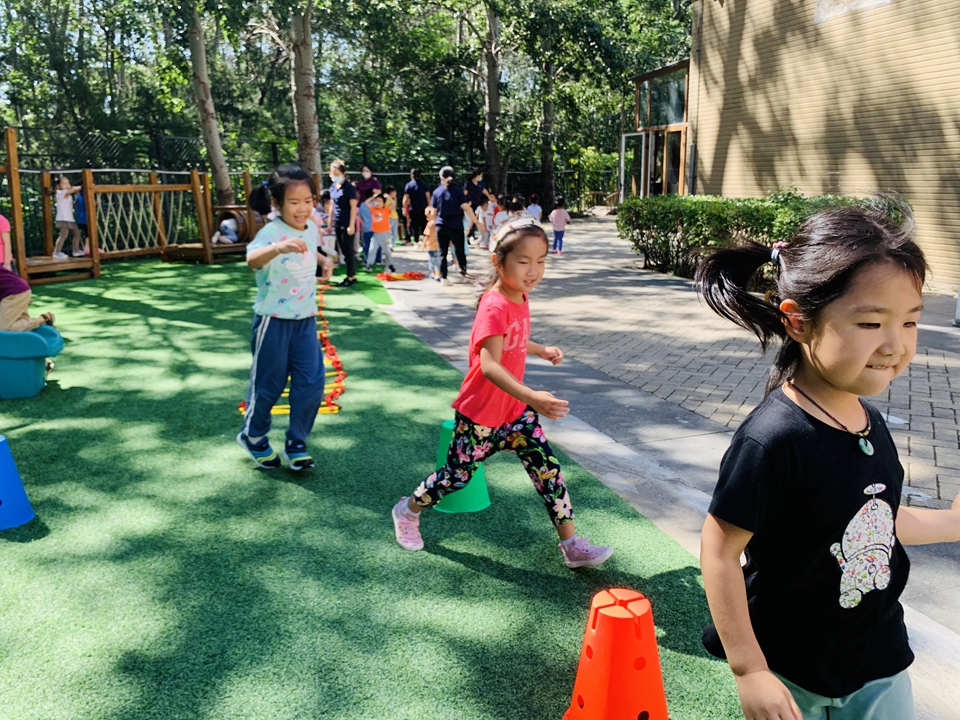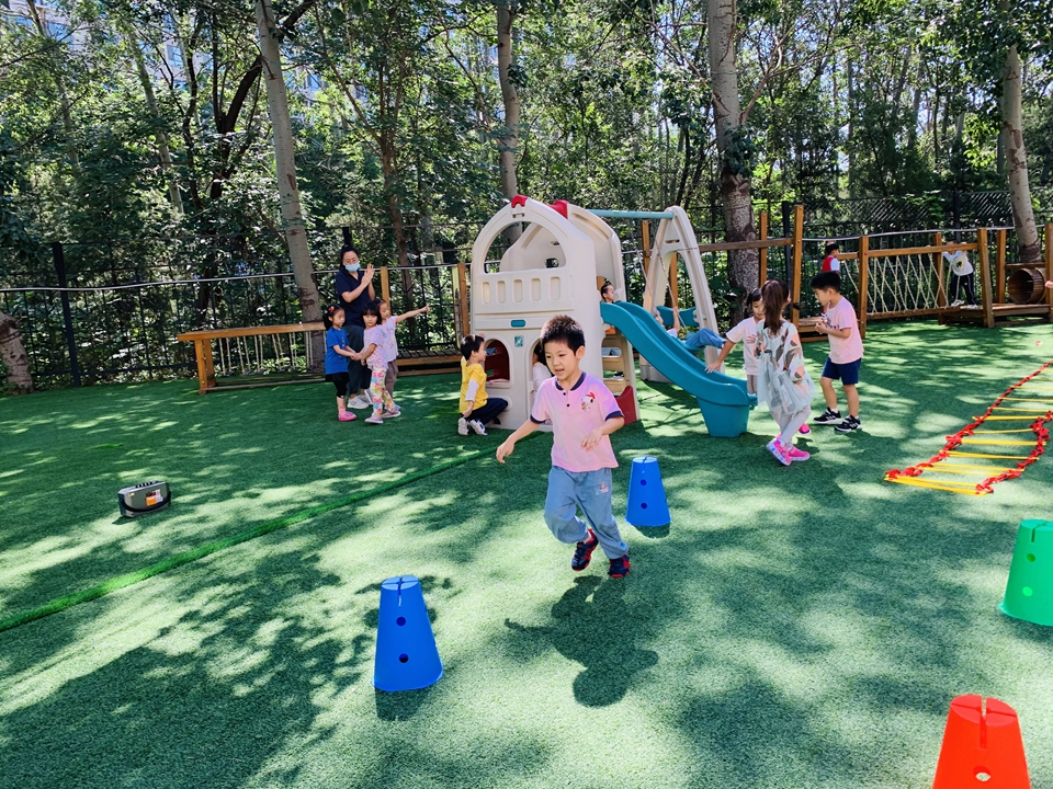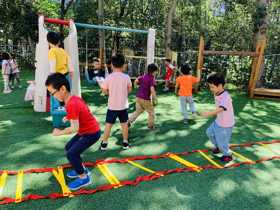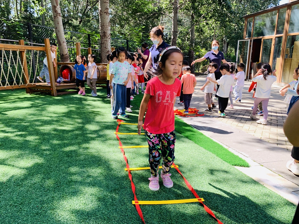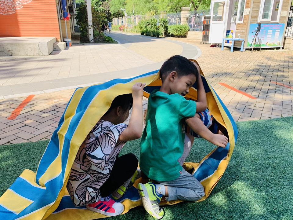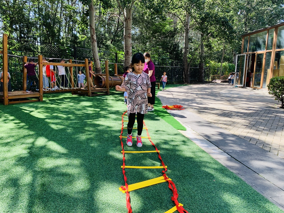 户外小朋友来到操场,我们自己动手整理器械,摆好,在老师的讲解下,我们遵守规则,双脚跳,和小朋友合作过山洞,一起锻炼小朋友的合作意识。