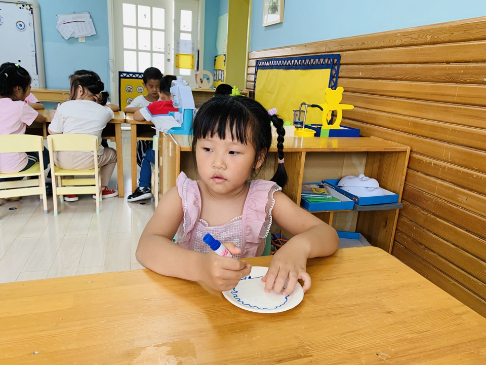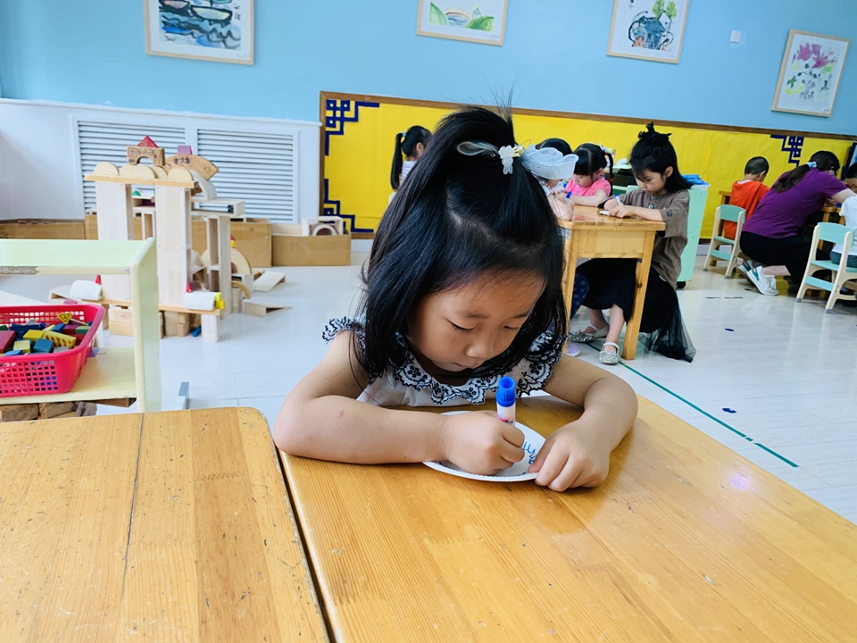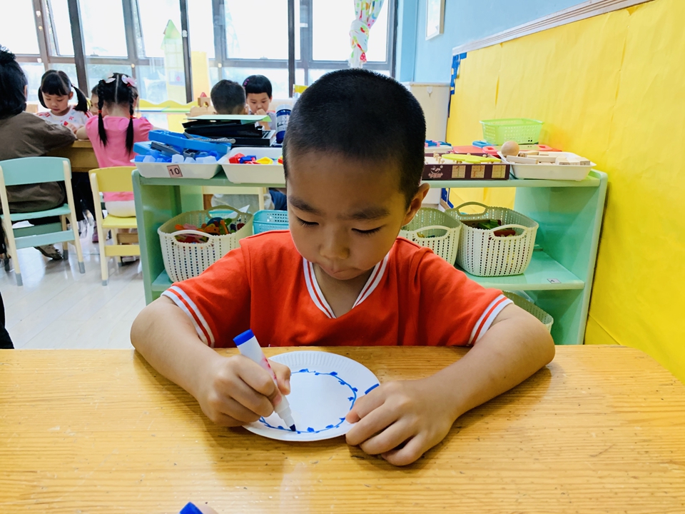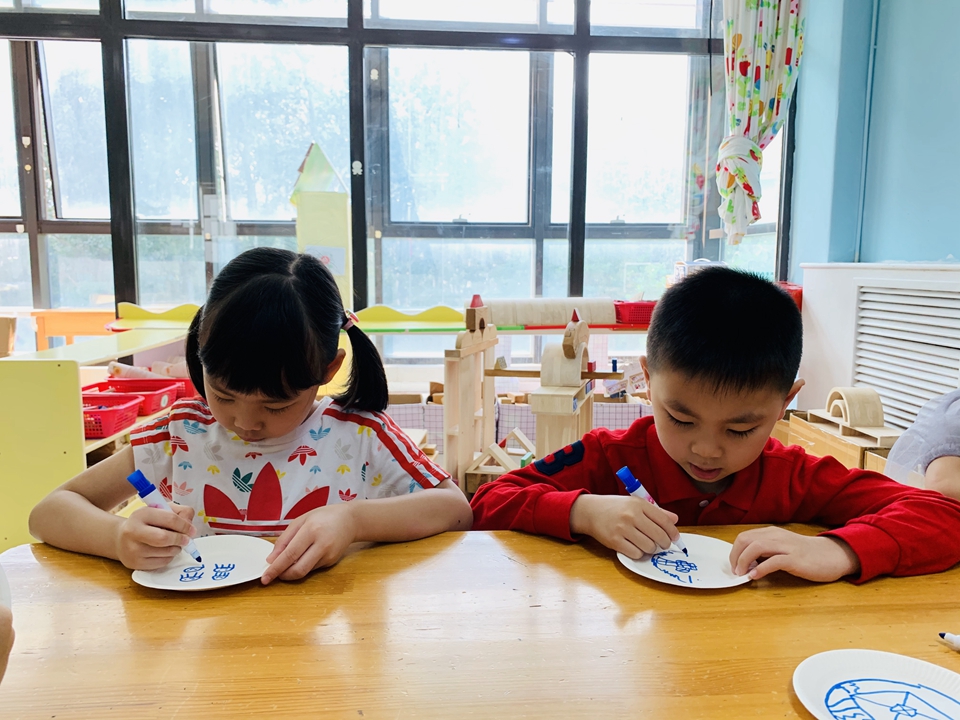 这学期我们美工区以青花瓷为主,带小朋友们了解了青花瓷是由白色的底和蓝色的花纹组成,今天小朋友们自己动手设计青花瓷。