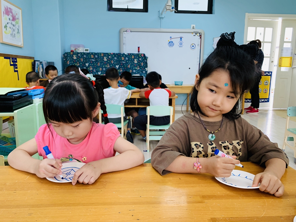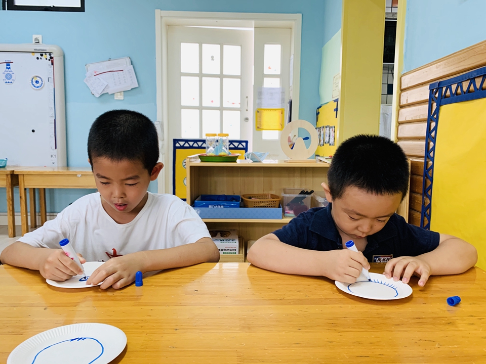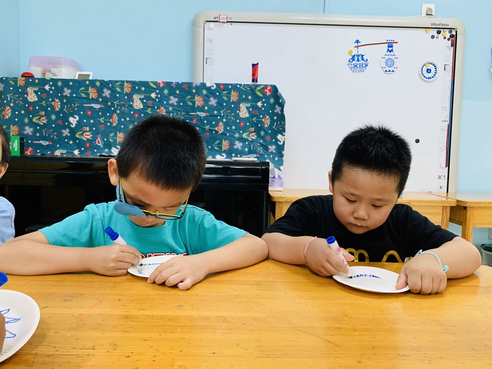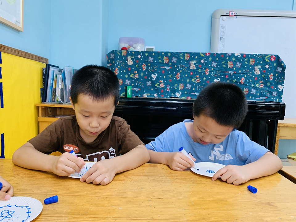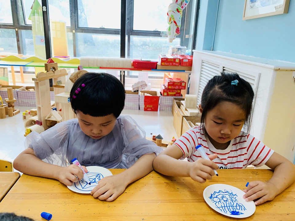 这学期我们美工区以青花瓷为主,带小朋友们了解了青花瓷是由白色的底和蓝色的花纹组成,今天小朋友们自己动手设计青花瓷。
