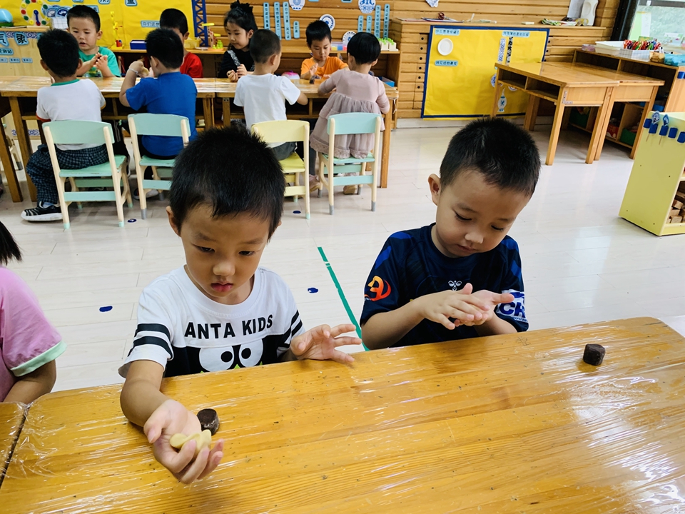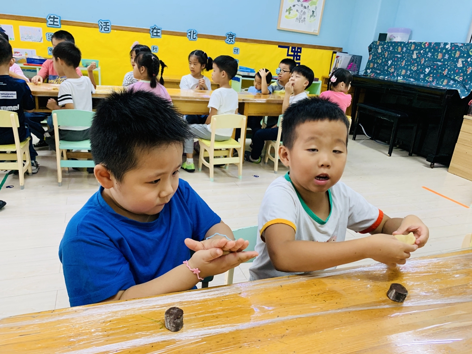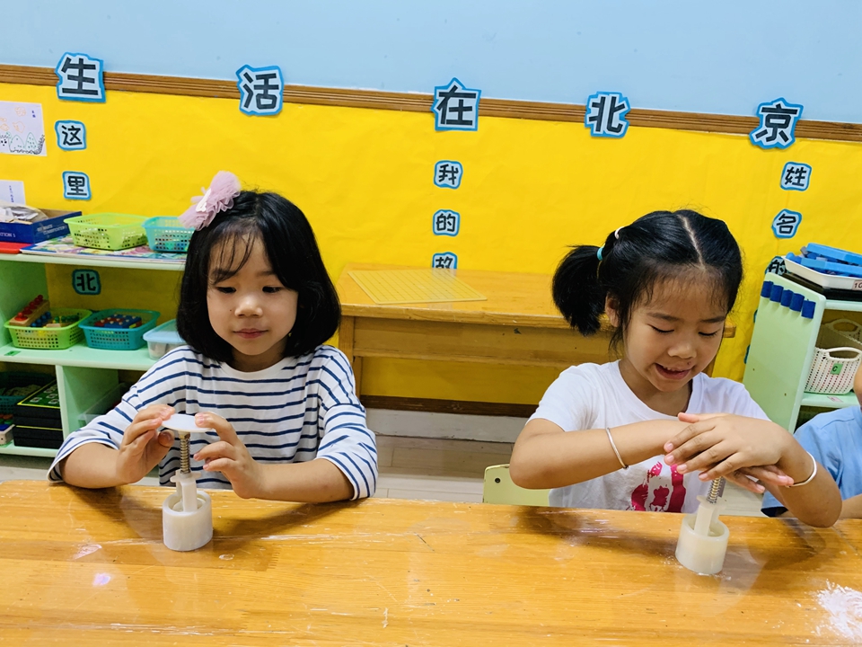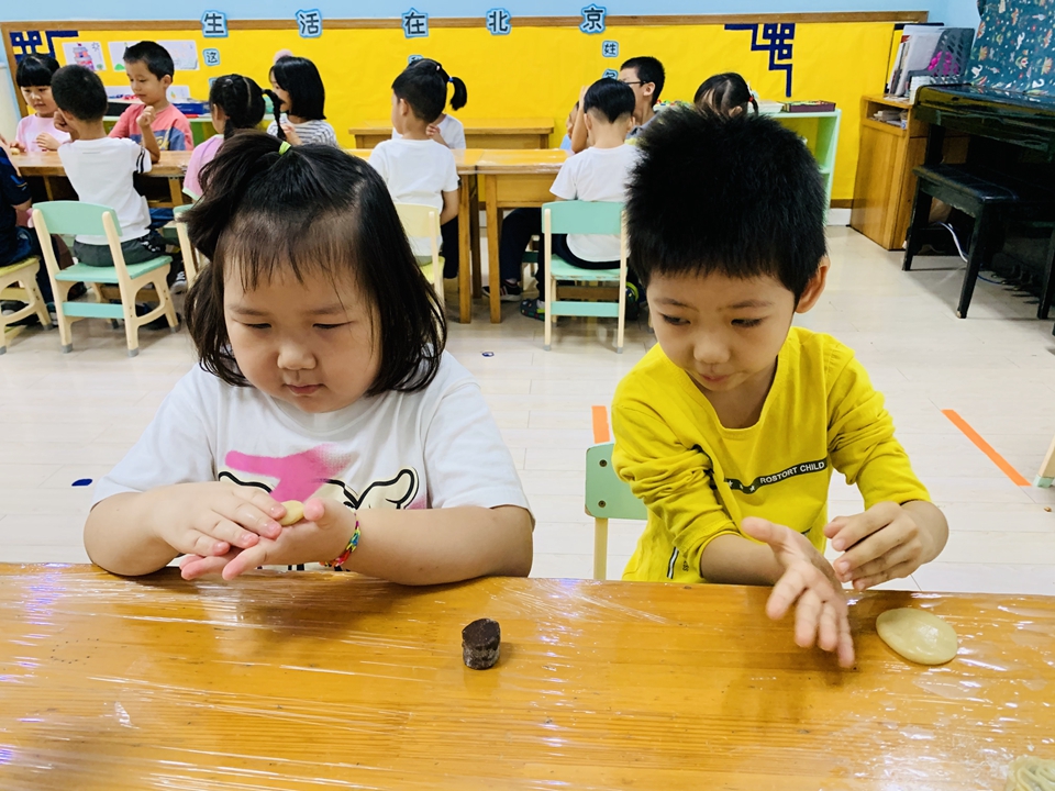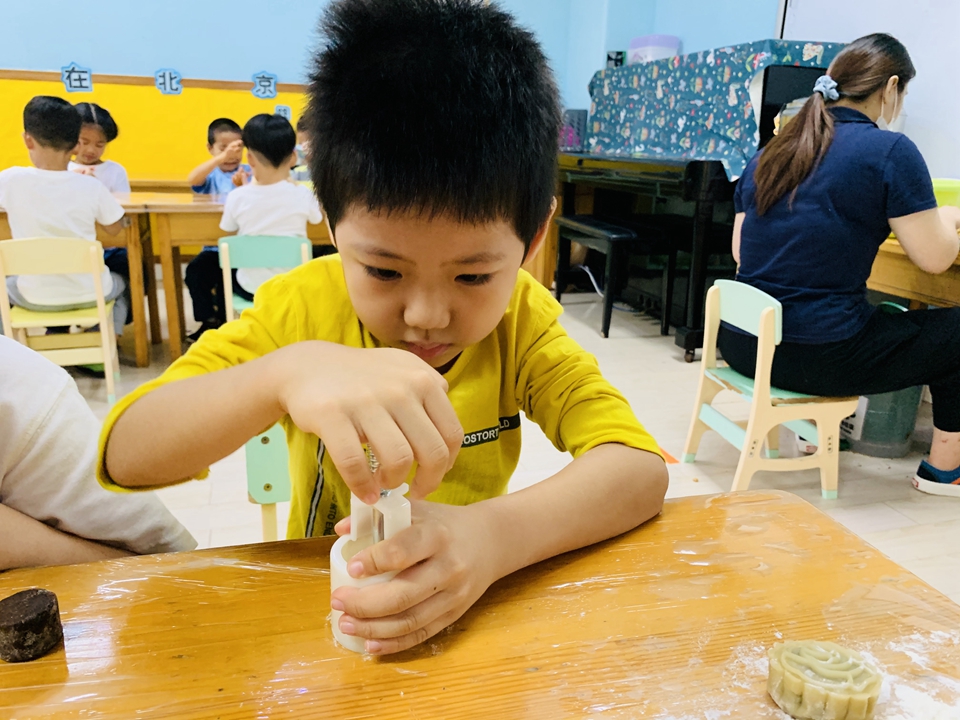 中秋节即将来临,带小朋友们了解了中秋节的由来,今天带小朋友认识了做月饼的面团和月饼馅,小朋友们自己动手制作月饼,认识模具。